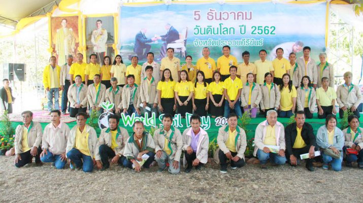 วันที่ 16 ธันวาคม 2562 ที่สถานีพัฒนาที่ดินประจวบคีรีขันธ์ บ้านทุ่งโก ต.บ่อนอก อ.เมือง จ.ประจวบคีรีขันธ์ นายเฉลิมชัย ศรีอ่อน รัฐมนตรีว่าการกระทรวงเกษตรและสหกรณ์ เป็นประธานในพิธีเปิดงานวันดินโลก ปี 2562 จังหวัดประจวบคีรีขันธ์ “ปกป้องอนาคต ลดการชะล้างดิน” โดยมี นายภิรมย์ นิลทยา รองผู้ว่าราชการจังหวัดประจวบคีรีขันธ์ กล่าวรายงานในฐานะตัวแทนส่วนราชการในพื้นที่ และมี นายสถาพร ใจอารีย์ รองอธิบดีกรมพัฒนาที่ดิน กล่าวรายงานวัตถุประสงค์การจัดงาน นอกจากนี้มี นายพิศาล พงศาพิชณ์ รองปลัดกระทรวงเกษตรและสหกรณ์ นายปราโมทย์ ยาใจ ผู้ตรวจราชการกระทรวงเกษตรและสหกรณ์ อธิบดีกรมตรวจบัญชีสหกรณ์ อธิบดีกรมฝนหลวงและการบินเกษตร อธิบดีกรมหม่อนไหม อธิบดีกรมประมง ตลอดจนหัวหน้าส่วนราชการสังกัดกระทรวงเกษตรฯทั้งจากส่วนกลางและส่วนภูมิภาค หัวหน้าส่วนราชการในจังหวัด ข้าราชการ ตัวแทนหน่วยงาน ภาคเอกชน ทหาร ตำรวจ องค์กรปกครองส่วนท้องถิ่น สถาบันการศึกษา กำนัน ผู้ใหญ่บ้าน เครือข่ายหมอดินอาสา กลุ่มเกษตรกร และประชาชนทั่วไป เข้าร่วม โดยนายเฉลิมชัย ศรีอ่อน ได้กล่าวถวายราชสดุดีพิธีน้อมรำลึกในพระมหากรุณาธิคุณพระบาทสมเด็จพระบรมชนกาธิเบศร มหาภูมิพลอดุลยเดชมหาราช บรมนาถบพิตร ซึ่งหลังพิธีกล่าวเปิดงานเสร็จ ได้มีการมอบรางวัลดีเด่นการใช้ประโยชน์จากหญ้าแฝก มอบประกาศแปลงต้นแบบการจัดการดินเพื่อปกป้องและใช้ประโยชน์ที่ดินอย่างยั่งยืน มอบประกาศเกษตรกรต้นแบบการขับเคลื่อนเกษตรอินทรีย์ มอบบัตรดินดีกับเกษตรกร มอบแหล่งน้ำเพื่อการอนุรักษ์ดินและน้ำ จากนั้น รัฐมนตรีว่าการกระทรวงเกษตรและสหกรณ์ พร้อมคณะได้ร่วมพบปะทักทายหมอดินอาสาและเยี่ยมชมนิทรรศการในงานวันดินโลก จังหวัดประจวบฯ