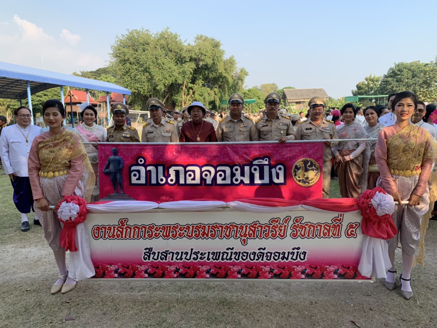 นายเกียรติศักดิ์ ตรงศิริ รอง ผวจ.ราชบุรี ได้รับมอบหมายจาก ผวจ.ราชบุรี เป็นประธานเปิดงานสักการะบูชาเสด็จพ่อ ร 5 และงานสืบสานประเพณีของดีอำเภอจอมบึง ครั้งที่ 16 โดยมีกิจกรรมขบวนแห่อัญเชิญองค์จำลองเสด็จพ่อ ร 5 จากโรงเรียนคุรุราษฎร์รังสฤษฐ์ ผ่านตลาด ไปหน้าที่ว่าการอำเภอ ของหัวหน้าส่วนราชการ กาชาด องค์กรปกครองท้องถิ่น กำนัน ผู้ใหญ่บ้าน ชุมชน กลุ่มพลังมวลชน และได้รับความร่วมมือจากกลุ่มชาติพันธุ์จาก อ.ปากท่อ อาทิ ชุดรำไทยทรงดำ บ้านหัวเขาจีน ม 1 ตำบลห้วยยางโทน/ชุดรำไท-ยวน ม 1 ต.บ่อกระดาน อ.บ้านโป่ง อาทิ ชุดรำจากตำบลสวนกล้วย /รำอวยพร /โฉมงามระบำแขก