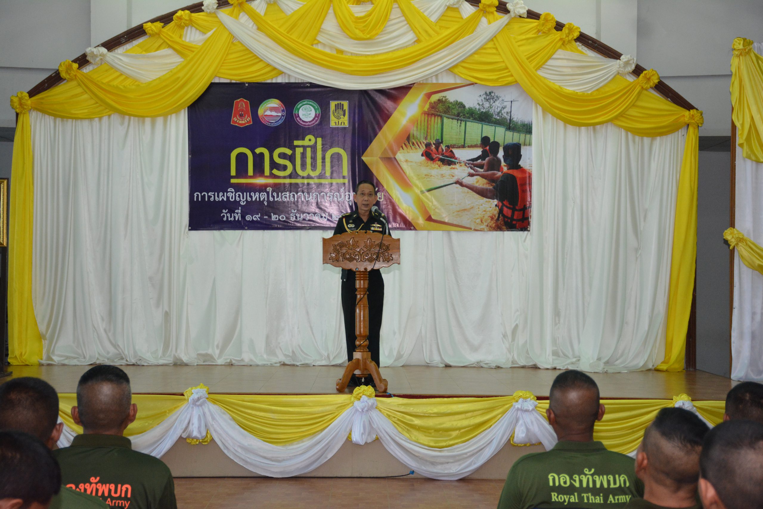 ณ สโมสรเทพสตรี ค่ายเทพสตรีศรีสุนทร ตำบลกะปาง อำเภอทุ่งสง จังหวัดนครศรีธรรมราช พลตรี ภาสกร ทวีตา ผู้บัญชาการมณฑลทหารบกที่ 43 มอบหมายให้ พันเอก เอกพล ถาวรยุติธรรม รองเสนาธิการมณฑลทหารบกที่ 43 เป็นประธานในพิธีเปิดการฝึกฯ ทั้งนี้มณฑลทหารบกที่ 43 โดยศูนย์บรรเทาสาธารณภัยมณฑลทหารบกที่ 43 จัดให้มีการฝึกการเผชิญเหตุในสถานการณ์อุทกภัย เพื่อเตรียมความพร้อมด้านกำลังพล และยุทโธปกรณ์ รองรับการช่วยเหลือประชาชนในสถานการณ์อุทกภัยที่อาจเกิดขึ้นในพื้นที่รับผิดชอบของหน่วย พร้อมสนองตอบงานช่วยเหลือประชาชนตามนโยบาย กองทัพบก (ศูนย์บรรเทาสาธารณภัยกองทัพบก)และ กองทัพภาคที่ 4 (ศูนย์บรรเทาสาธารณภัยกองทัพภาคที่ 4 ด้วยในปัจจุบันพื้นที่ภาคใต้อยู่ในช่วงฤดูมรสุม ซึ่งมีกิจกรรมการฝึกประกอบด้วยหลักการป้องกันและบรรเทาสาธารณภัยตามแผน ป้องกันและบรรเทาสาธารณภัยแห่งชาติ, การกู้ชีพและการช่วยเหลือผู้ประสบภัยตามหลักการ FMC,การใช้เชือกกู้ภัย, การใช้อุปกรณ์ทางน้ำ, การใช้เรือเข้าให้การช่วยเหลือผู้ประสบภัย, เทคนิคการกู้ภัยทางน้ำ พร้อมซ้อมแผนเผชิญเหตุทางน้ำในสถานการณ์สมมติ
