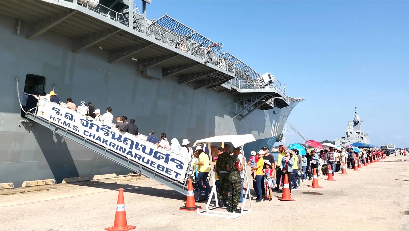 เรือหลวงจักรีนฤเบศร 911 เข้าเทียบท่าเรือประจวบ ซ้อมปฎิการกู้ภัย เปิดให้ประชาชนชมศักยภาพ ทะลุ กว่า 25,000 คนแล้ว ถือเป็นการสัมผัสประสบการณ์ครั้งยิ่งใหญ่ของพี่น้องชาวบางสะพาน และประชาชนทุกภาคส่วน ที่จะได้สัมผัสอย่างใกล้ชิดกับ “เรือหลวงจักรีนฤเบศร” ซึ่งจะเข้ามาจอดเทียบท่าเรือน้ำลึกบางสะพาน ณ ท่าเรือประจวบในเครือสหวิริยา ในระหว่าง วันที่ 22-23 ธันวาคม 2562 พร้อมเปิดให้เข้าชมตั้งแต่ เวลา 09.30 – 16.00 น. การมาครั้งนี้ได้รับเกียรติจาก พลเรือตรี วรวุธ พฤกษารุ่งเรือง ผู้บัญชาการกองเรือบรรทุกเฮลิคอปเตอร์ กองเรือยุทธการ และ นาวาเอก จรัญ วทัญญู ผบ.เรือ พร้อมด้วยกำลังพลกว่า 600 นาย จะนำเรือหลวงจักรีนฤเบศรเข้าจอดเทียบท่าเรือประจวบ อำเภอบางสะพาน เพื่อให้กำลังพลได้ขึ้นบกพักผ่อนภายหลังการฝึกในทะเล ซึ่งจะมีการแวะเยี่ยมชมอำเภอบางสะพาน และเปิดโอกาสให้ประชาชน และนักเรียน ในพื้นที่ขึ้นเยี่ยมชมเรือ ข้อมูลประกอบเป็นความรู้ก่อนเข้าเยี่ยมชม “เรือหลวงจักรีนฤเบศร” เป็นชื่อที่กองทัพเรือได้รับพระราชทาน จากพระบาทสมเด็จพระเจ้าอยู่หัว ภูมิพลอดุลยเดช ในรัชกาลที่ 9 สร้างขึ้นด้วยวงเงินประมาณ 7,100 ล้านบาท จากประเทศสเปน โดยเป็นเรือบรรทุกเฮลิคอปเตอร์ขนาดใหญ่และเครื่องบินขึ้นลงในแนวดิ่ง ลำแรกและลำเดียวในเอเชียตะวันออกเฉียงใต้ โดยสร้างขึ้นระวางประจำการสังกัดกองเรือบรรทุกเฮลิคอปเตอร์ เมื่อวันที่ 20 มีนาคม 2540 และนับเป็นความภาคภูมิใจของคนไทยตั้งแต่นั้นมา