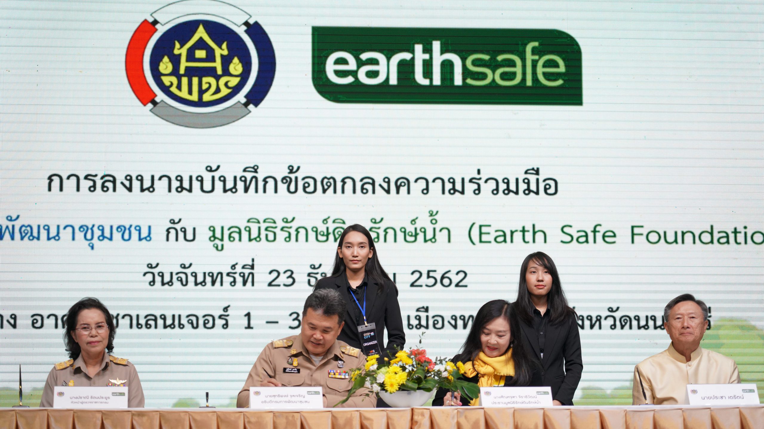 กระทรวงมหาดไทย โดยกรมการพัฒนาชุมชน และ มูลนิธิรักษ์ดินรักษ์น้ำ (Earth Safe Foundation) ลงนามบันทึกข้อตกลงความร่วมมือเพื่อขับเคลื่อน “โครงการสืบสานศาสตร์พระราชาน้อมนำหลักปรัชญาเศรษฐกิจพอเพียงสู่วิถีชีวิต”การสร้างความร่วมมือดังกล่าว เพื่อพัฒนาครัวเรือน/ชุมชน ให้มีคุณภาพชีวิตที่ดี และมีความเข้มแข็งพึ่งพาตนเองได้อย่างยั่งยืน โดยดำเนินงานร่วมกันภายใต้หลักปรัชญาของเศรษฐกิจพอเพียง ตลอดจนส่งเสริมชุมชนยั่งยืนให้เกิดผลอย่างเป็นรูปธรรม และเป็นตัวอย่างความสำเร็จต้นแบบให้กับชุมชนและสังคม โดยมีเป้าหมายต้นแบบการพัฒนาจำนวน 228 หมู่บ้าน