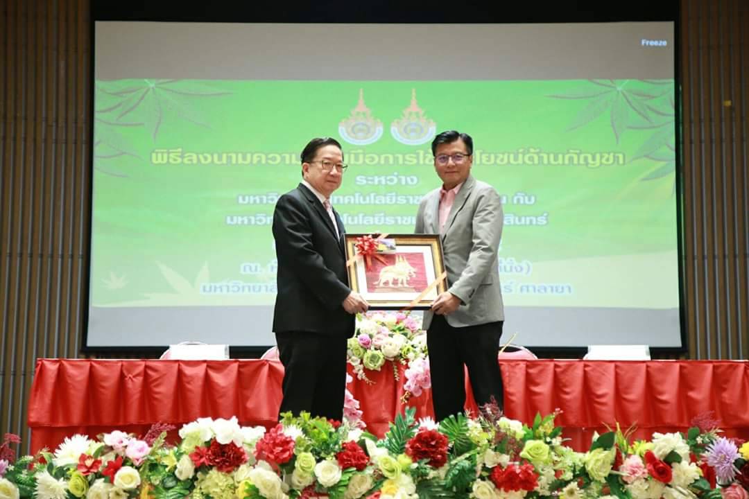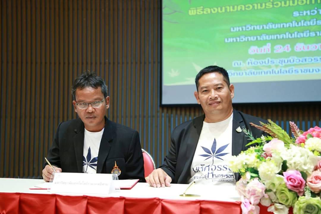 โดยมี ผศ.ศิวะ วสุนธราภิวัฒก์ อธิการบดี มทร.รัตนโกสินทร์ และ ดร.โฆษิต ศรีภูธร รองอธิการบดี มทร.อีสาน ประจำวิทยาเขตสกลนคร เป็นผู้ร่วมลงนาม จากนั้นเป็นการอบรมสัมมนาให้ความรู้ ด้านกฎหมายเกี่ยวกับกัญชาแก่ อสม. ในจังหวัดพื้นที่นครปฐม เพื่อให้มีการถ่ายทอดแลกเปลี่ยนองค์ความรู้ข้อคิดเห็นข้อเสนอแนะและนำเสนอประโยชน์และกฎหมายเกี่ยวกับกัญชาได้อย่างถูกต้อง รวมถึงความก้าวหน้าทางด้านการวิจัยและการใช้ประโยชน์จากกัญชาในระดับต่อไป ทั้งนี้ได้รับเกียรติจาก ร้อยตรีพงศธร ศิริสาคร รองผู้ว่าราชการจังหวัดนครปฐม เป็นประธานในพิธีดังกล่าว ณ หอประชุมบัวสวรรค์ 1,500ที่นั่ง มทร.รัตนโกสินทร์ พื้นที่ศาลายา