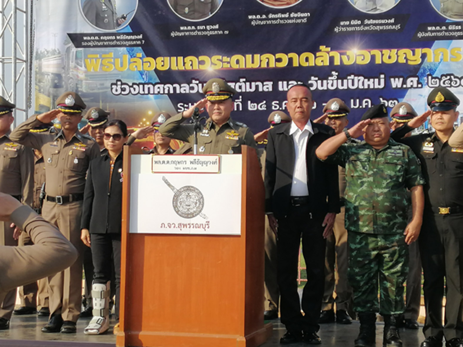 สุพรรณบุรี ตำรวจปล่อยแถวระดมกวาดล้างรณรงค์ขับขี่ปลอดภัยเทศกาลปีใหม่