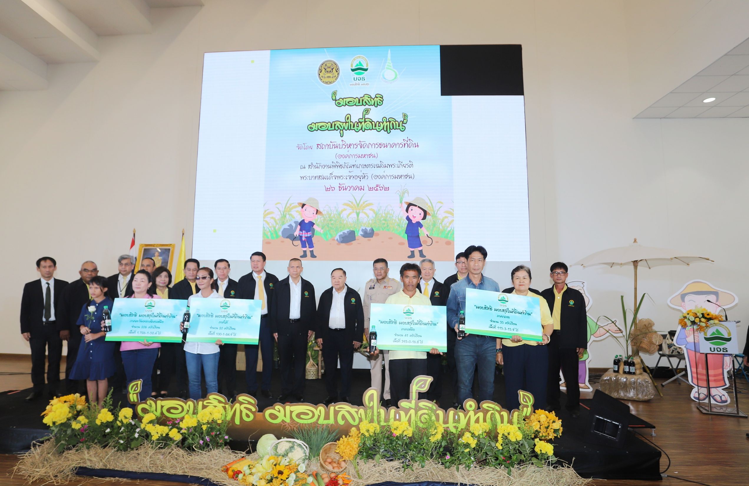 วันนี้ (26 ธ.ค.62 )เวลา 10.00 น. ที่ ห้องประชุม อาคารอำนวยการ ชั้น 2 สำนักงานพิพิธภัณฑ์เกษตรเฉลิมพระเกียรติพระบาทสมเด็จพระเจ้าอยู่หัว(องค์การมหาชน) ตำบลคลองหนึ่ง อำเภอคลองหลวง จังหวัดปทุมธานี พลเอก ประวิตร วงษ์สุวรรณ รองนายกรัฐมนตรี ผู้กำกับดูแล สถาบันบริหารจัดการธนาคารที่ดิน (องค์การมหาชน) หรือ บจธ. เป็นประธานพิธี “มอบสิทธิ มอบสุขในที่ดินทำกิน” ให้เกษตรกรและผู้ยากจน ทั่วประเทศ จำนวน 324 ครัวเรือน จำนวน 2,378 ไร่ โดยมี ผศ.ดร.จิตติ มงคลชัยอรัญญา กรรมการบริหาร บจธ. นายกุลพัชร ภูมิใจอวด รองผู้อำนวยการ ปฏิบัติหน้าที่แทนผู้อำนวยการ บจธ. พล.ต.ท.อำพล บัวรับพร ผู้บัญชาการตำรวจภูธรภาค 1 ดร.พินิจ บุญเลิศ ผู้ว่าราชการจังหวัดปทุมธานี พล.ต.ต.ชยุต มารยาทตร์ ผบก.ภ.จว.ปทุมธานี และเกษตรกรให้การต้อนรับ สถาบันบริหารจัดการธนาคารที่ดิน(องค์การมหาชน) โดยรัฐบาลเล็งเห็นความสำคัญของปัญหาความเหลื่อมล้ำในที่ดินทำกินของเกษตรกรและผู้ยากจน บจธ. เป็นหน่วยงานที่เข้ามาทำหน้าที่กระจายการถือคลองที่ดินอย่างเป็นธรรมและยั่งยืน โดยสามารถดำเนินการได้หลากหลายวิธีการและไม่มีความซ้ำซ้อนกับวิธีการที่หน่วยงานอื่นๆ ที่ดำเนินการอยู่แล้ว ทั้งนี้ มุ่งหวังว่า บจธ. จะพัฒนาเป็นธนาคารที่ดินหรือองค์กรที่มีวัตถุประสงค์ทำนองเดียวกันในอนาคตอันใกล้
