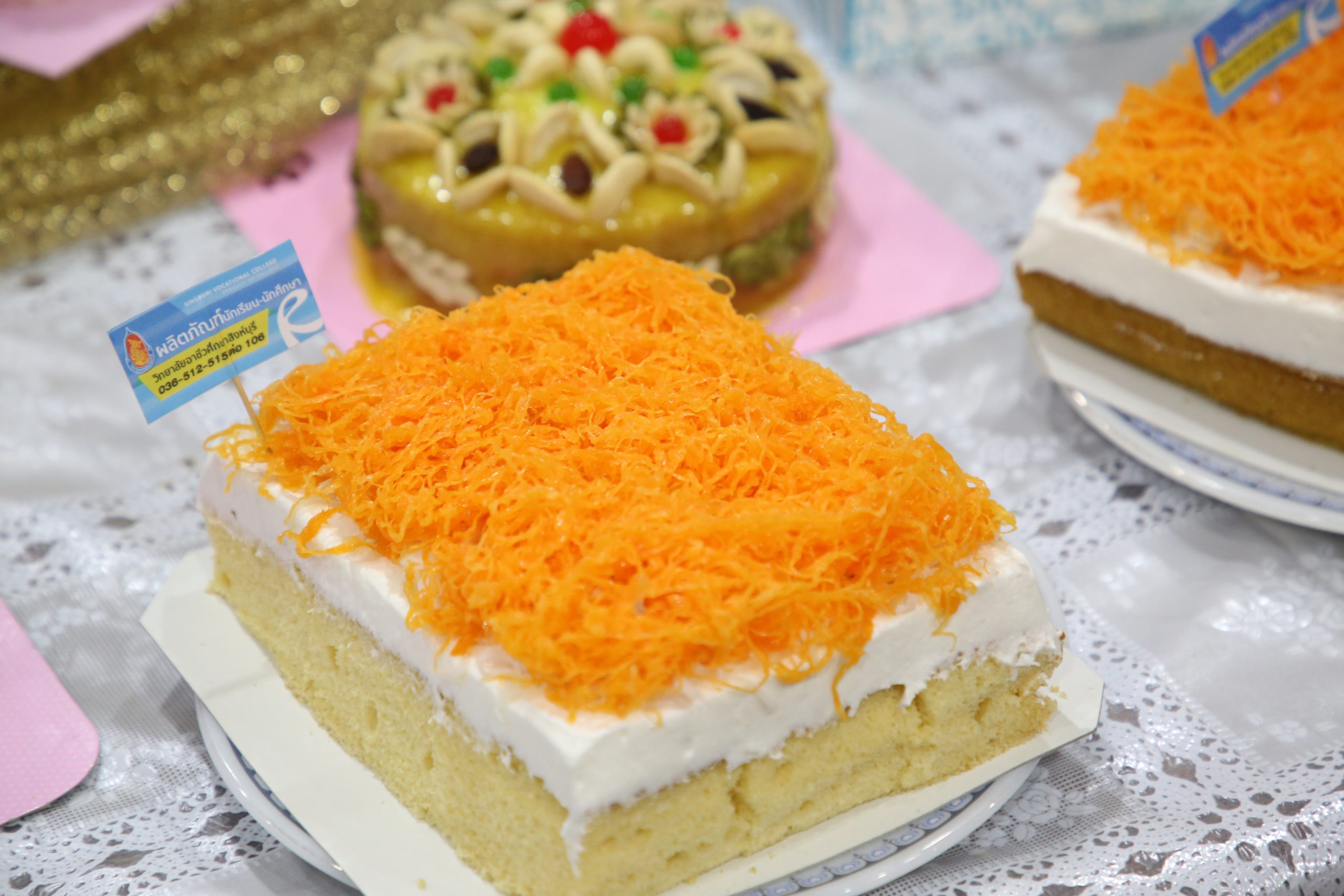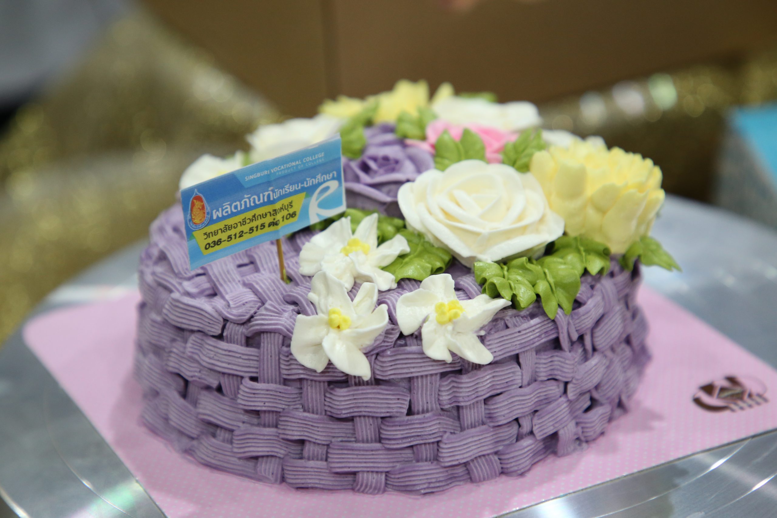 ก็จะเปิดขายและให้ผู้จองมารับเค้กที่สั่งจองไว้ บริเวณหน้าวิทยาลัยอาชีวศึกษาสิงห์บุรีในส่วนของเค้กนั้น ทางนักศึกษา จะเร่งผลิตขนมเค้กให้ทันตามยอดที่สั่งจอง ได้รับความสนใจจากชาวสิงห์บุรีจำนวนมาก เนื่องจากมีรสชาติที่อร่อยและราคาถูกกว่าท้องตลาด โดยจำหน่ายเพียงราคาปอนด์ละ 180 บาท ที่สำคัญ ยังมีรสชาติหอมอร่อยและสด สะอาด เพราะไม่ใส่สารกันบูด เค้กมีหลากหลายรสชาติให้เลือกซื้อ อาทิ ครีม-แยม-ช็อกโกแลต เค้กกาแฟ เค้กมะพร้าวฝอยทอง ครีมวานิลลา, แยมผลไม้ ,ครีมกาแฟ เป็นที่ชื่นชอบของนักศึกษาซื้อไปฝากญาติในช่วงเทศกาลปีใหม่เป็นอย่างมาก