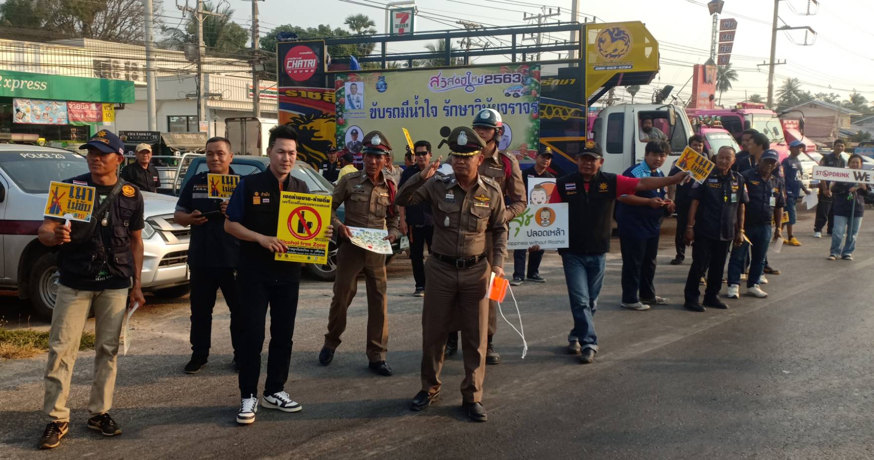 ทุกครั้ง เคารพกฎจราจร เดินทางถึงที่หมายปลอดภัย ประชารัฐร่วมใจดูแลความปลอดภัยบ้านประชาชน เทศกาลปีใหม่ ด้วความปารถนาดีจาก พลตำรวจโท ธนา ชูวงศ์ ผู้บัญชาการตำรวจภูธรภาค7
