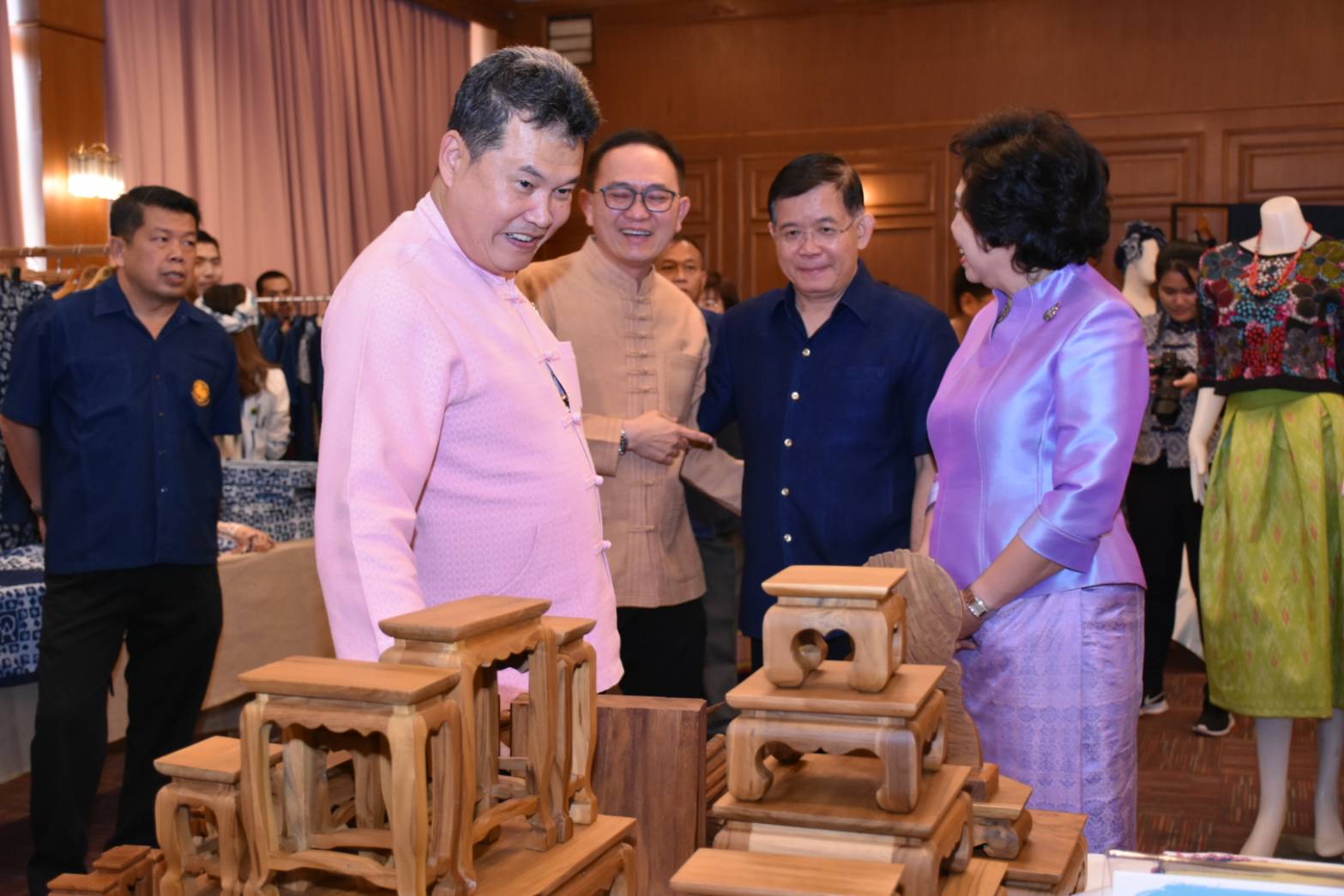 นายสุทธิพงษ์ จุลเจริญ อธิบดีกรมการพัฒนาชุมชน กล่าวต่อว่า ด้วยสภาสตรีแห่งชาติ ในพระบรมราชินูปถัมภ์ได้คำนึงถึงพระมหากรุณาธิคุณ ของสมเด็จพระนางเจ้าสิริกิติ์ พระบรมราชินีนาถ พระบรมราชนนีพันปีหลวงทรงรื้อฟื้นผ้าไทยมาตั้งแต่ พ.ศ.2514 ทรงให้ชาวบ้านทอผ้าเพื่อไปตัดชุดฉลองพระองค์และพระราชทานทรัพย์ส่วนพระองค์เป็นค่าผ้าและส่งเสริมพัฒนาฝีมือและจัดประกวดการทอผ้าทำให้พวกเราได้ทราบถึงพระมหากรุณาธิคุณของพระองค์ท่านให้ตระหนักถึงความเป็นตัวตนของคนไทยผ่านการทอผ้าดังเช่น การส่วนใส่ผ้าหม้อห้อมของคนแพร่ ที่เป็นเอกลักษณ์ที่ชัดเจนดังนั้นเราต้องร่วมมือกันในการเชิญชวนภาคีเครือข่ายในจังหวัดร่วมถึงส่วนราชการ รัฐวิสาหกิจ และภาคเอกชนในการร่วมกันสวมใส่ผ้าไทย หากคนไทย 35 ล้านคนใส่ผ้าไทยเพิ่มขึ้นคนละ 10 เมตร เมตรละ 300 บาท จะสร้างรายได้ 105,000 ล้านบาท ซึ่งรายได้ดังกล่าวนั้นจะกระจายถึงคนในชุมชนและอีกหลายชีวิต จะทำให้เศรษฐกิจของชาติเกิดการหมุนเวียนเกิดความมั่นคงด้านเครื่องนุ่งห่มรวมทั้งแสดงถึงการมีวัฒนธรรมที่ดีงาม จังหวัดแพร่มีศิลปินแห่งชาติคนสำคัญได้แก่ แม่ประนอม ทาแปง ท่านมีส่วนช่วยทำให้งบประมาณของกรมการพัฒนาชุมชน ได้รับงบประมาณในการพัฒนางบโอทอป ในปี 2563 อย่างเต็มเม็ดเต็มหน่วย จังหวัดแพร่มีผ้าหม้อห้อม อันเป็นสีเดียวกับกรมการพัฒนาชุมชน ผมคงต้องสั่งซื้อผ้าหม้อห้อมแล้วใส่ตรากรมการพัฒนาชุมชนให้เจ้าหน้าที่ใส่ทำงานสัก 1 วัน โดยจะคัดเลือกร้านที่มีกำลังการผลิตและจะคัดเลือกแบบอีกครั้งนึง