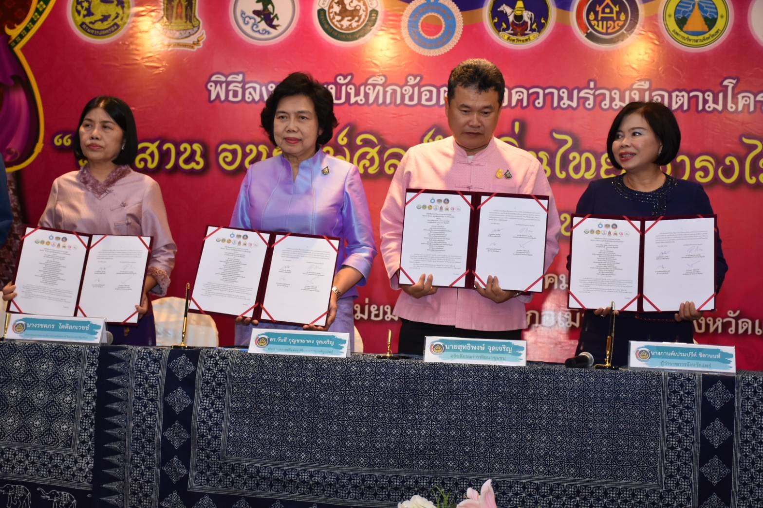 ดร.วันดี กุญชรยาคง จุลเจริญ ประธานสภาสตรีแห่งชาติ ในพระบรมราชินูปถัมภ์ พร้อมด้วยนายสุทธิพงษ์ จุลเจริญ อธิบดีกรมการพัฒนาชุมชน และ นางรชตภร โตดิลกเวชช์ ประธานคณะกรรมการบริหารสภาสตรีแห่งชาติฯ ร่วมลงนามบันทึกข้อตกลงความร่วมมือ (MOU) กับผู้ว่าราชการจังหวัดแพร่ ขับเคลื่อนโครงการสืบสาน อนุรักษ์ศิลป์ผ้าถิ่นไทย ดำรงไว้ในแผ่นดิน กับจังหวัดแพร่ นำโดย นางกานต์เปรมปรีด์ ชิตานนท์ ผู้ว่าราชการจังหวัด โดยก่อนลงนามได้มีการแสดงโชว์อัตลักษณ์ผ้าไทยของจังหวัดแพร่ ด้วยการเดินแฟชั่นโชว์ผ้าไทย ผ้าไทยประยุกต์ จากแบรนด์ที่มีชื่อเสียงระดับสากลที่ออกแบบและผลิตโดยคนแพร่ จำนวน 14 แบรนด์ อาทิ อัญชิ กฤษณะ เลอโซเลย์ เป็นต้น ทำให้เห็นถึงความสวยงาม น่าสวมใส่ และใส่ได้ทุกวัน ทุกโอกาสการลงนามบันทึกข้อตกลงความความร่วมมือ ตามโครงการ “สืบสาน อนุรักษ์ศิลป์ผ้าถิ่นไทย ดำรงไว้ในแผ่นดิน จังหวัดแพร่” ครั้งนี้มีวัตถุประสงค์ เพื่อสืบสานพระราชปณิธานสมเด็จพระนางเจ้าสิริกิติ์พระบรมราชินีนาถ พระบรมราชชนนีพันปีหลวง โดยการอนุรักษ์ ส่งเสริมและเผยแพร่ผ้าไทยอันมีอัตลักษณ์และทรงคุณค่า ศิลปะอันล้ำค่าของชาติให้ดำรงอยู่ปรากฏเป็นความภาคภูมิใจของคนไทย และให้ทั่วโลกได้ชื่นชม อีกทั้งช่วยเผยแพร่ประชาสัมพันธ์ให้เกิดกระแสความนิยมการแต่งกายด้วยผ้าไทย โดยเน้นในกลุ่มข้าราชการ พนักงานรัฐวิสาหกิจ ลูกจ้างหน่วยงานของรัฐให้ใช้ผ้าไทยอย่างต่อเนื่อง นำมาซึ่งทุกคนได้มีส่วนร่วมสืบสาน อนุรักษ์ผ้าท้องถิ่นไทยให้คงอยู่คู่แผ่นดิน และที่สำคัญเพื่อเป็นสนับสนุน ส่งเสริมการสร้างงาน สร้างอาชีพ และเสริมสร้างรายได้ให้กลุ่มสตรีในท้องถิ่น