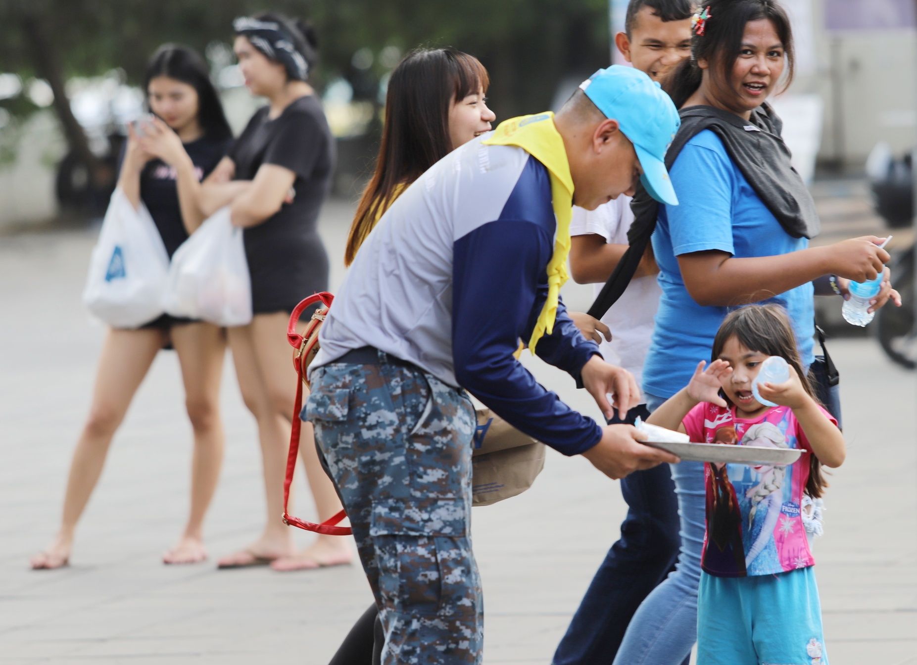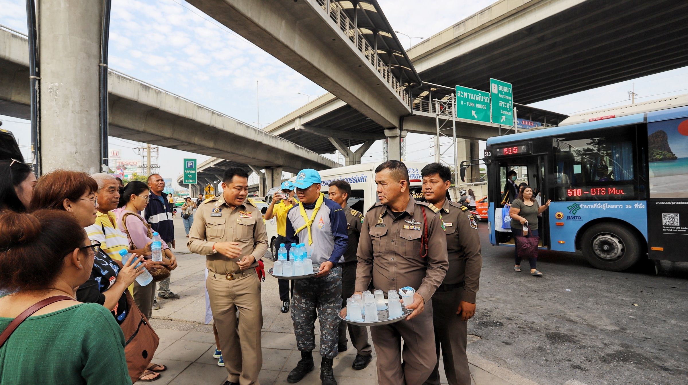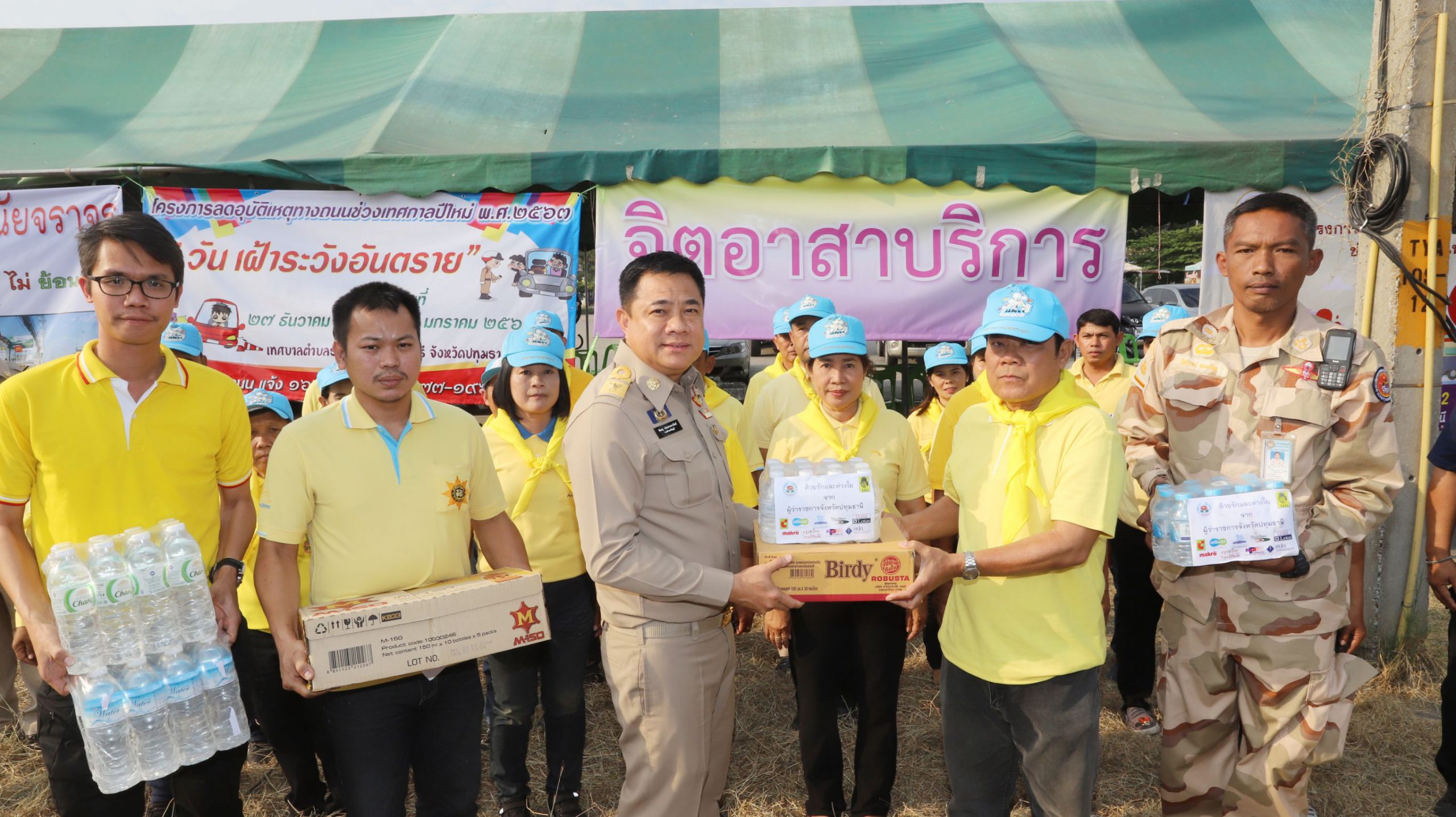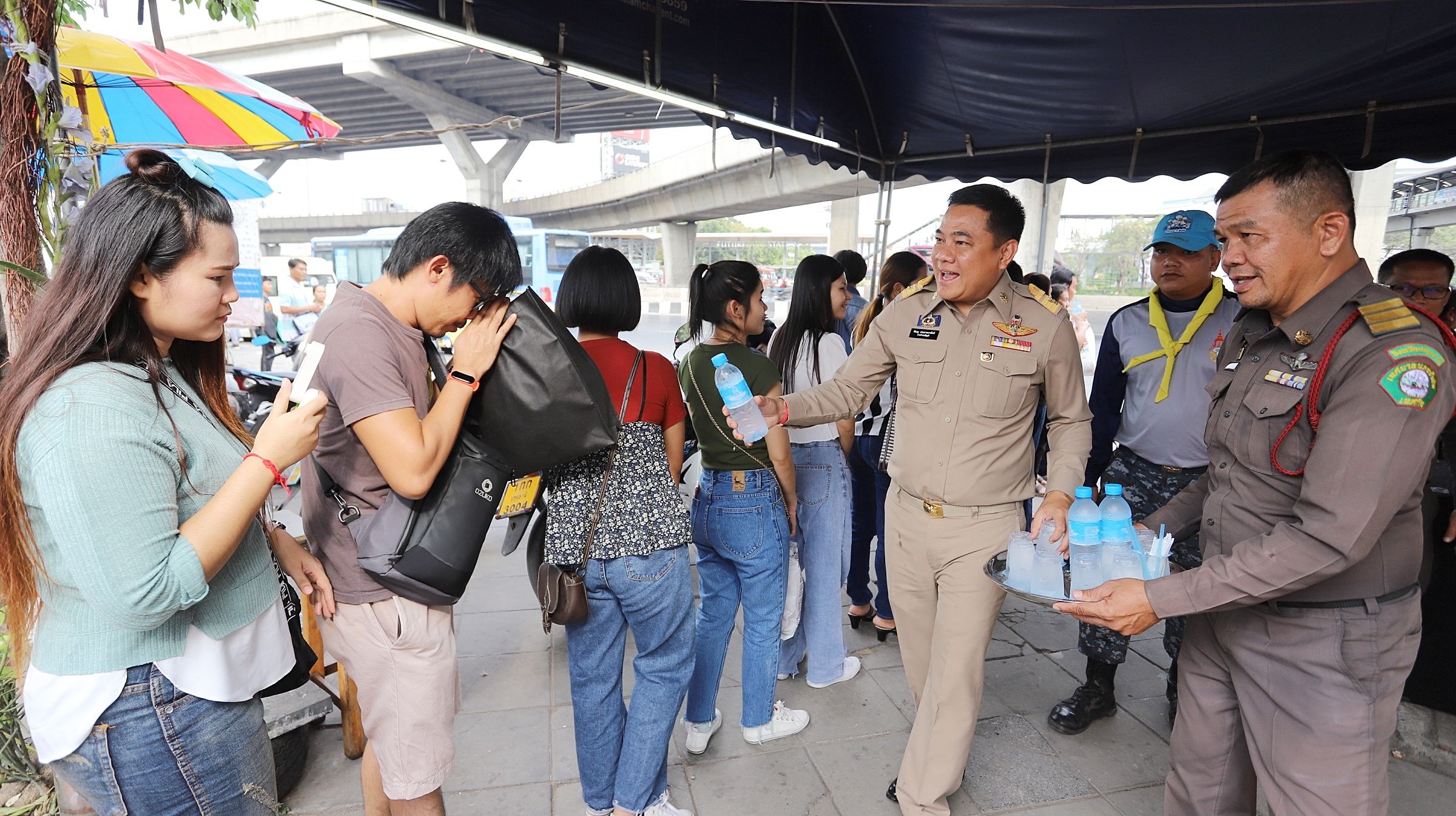 ปทุมธานี อำเภอธัญบุรีร่วมกับจิตอาสาบริการ บริการแจกเครื่องดื่มให้ปชช.เดินทางกลับบ้านเทศกาลปีใหม่