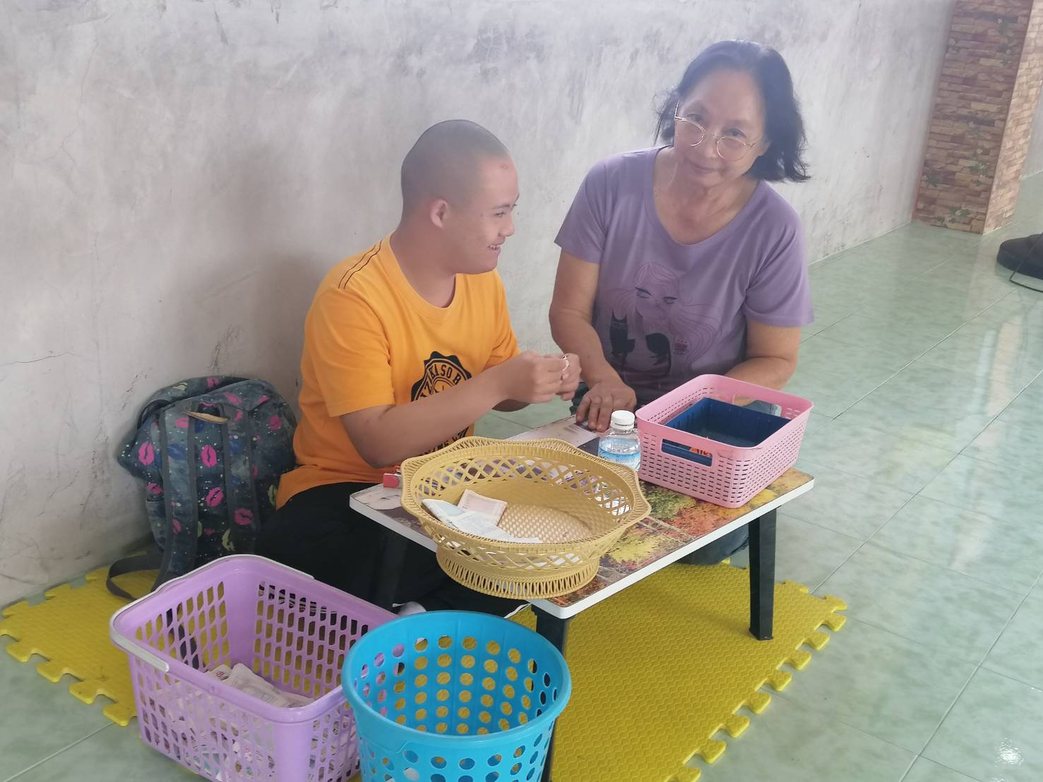 อีกทั้งยังเป็นการส่งเสริมให้เด็กพิเศษมีความเป็นอยู่ที่ดีมีทักษะในความคิดช่วยเหลือตัวเองได้หีือผลิกฟื้นสภาพจิตสภาพกายให้สามารถอยู่ต่อสู้กับสิ่งที่สูญเสียไปมาทดแทนใหก้าวไปข้างหน้าโดยไมเป็นภาระของสังคม แต่สิ่งหนึ่งที่จะมาเติมเต็มให้ศูนย์ฝึกวิชาชีพให้แก่เด็กพอเศษคือจิตอาสาที่เดินเข้ามาช่วยโดยไม่หวังผลตอบแทนผู้สื่อจ่าวได้เดินทางไปพบกับนางระเบียบ ปานศิลา อายุ 67 ปี อยู่บ้านเลขที่ 1/145 หมู่ที่ 14 ต.เจดีย์หัก อ.เมือง จ.ราชบุรี อดีตข้าราชการสังกัดกรมชลประทาน เดินทางมาที่ศูนย์ฝึกวิชาชีพแก่เด็กพิเศษแห่งนี้ กำลังฝึกหัดเด็ก ทำกิจกรรมทอผ้า วาดรูปเย็บปักถักร้อยและนำวัตสดุเหลือใช้มาให้เด็กผลิตออกจำหน่าย โดยไม่ได้หวัลผลและเงินเดือนตอบแทนแม้นแต่บาทเดียว โดยนางระเบียบ ปานศิลา กล่าวถึงแรงบันดานใจที่ให้เข้ามาอยู่ในศูนย์แห่งนี้เพราะตนรักและสงสารเด็กพิการอยู่เป็นต้นทุนแรกอยู่แล้วพ่อทราบว่าทางวัดต้องการหาคนมาดูแลฝึกอาขีพให้เด็กพิเศษจึงอาสาทำงานให้พร้อมทั้งกล่าวให้ผู้สื่อข่าวฟังว่า.. แรงบันดานใจ คือ.. บุญกุศลสมสร้างคือทางสวรรค์..