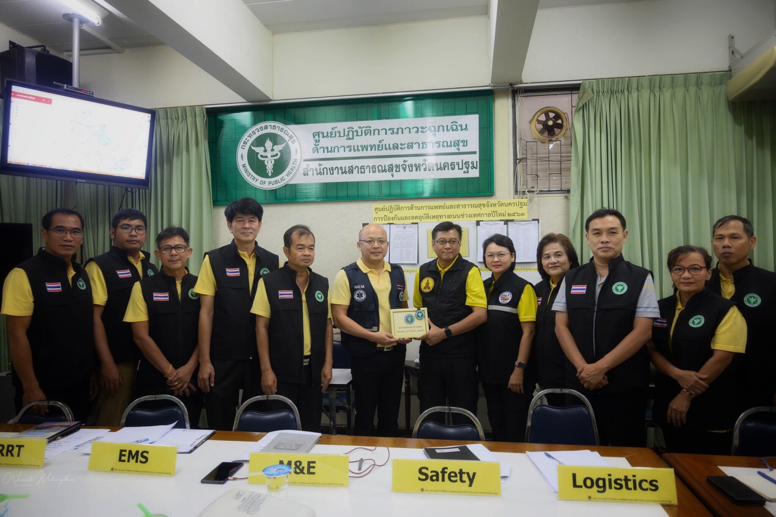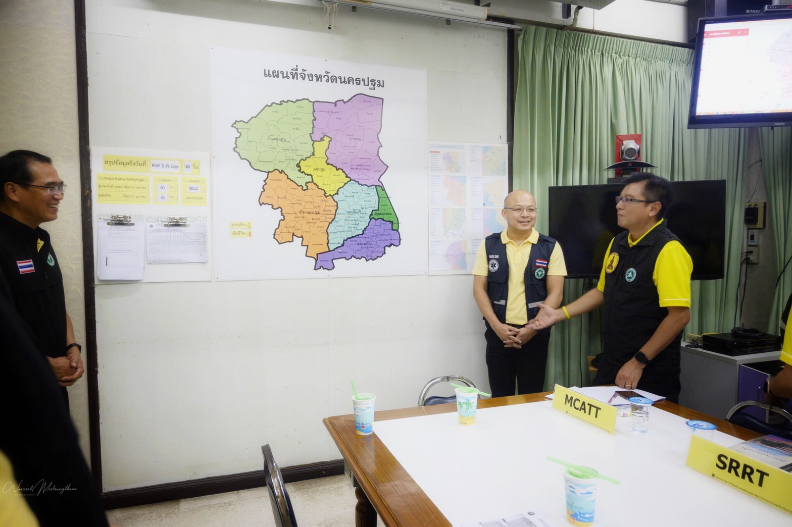 วันที่ 28 ธันวาคม 2562 ร้อยตรีพงศธร ศิริสาคร รองผู้ว่าราชการจังหวัดนครปฐม เดินทางมาตรวจเยี่ยม และให้กำลังใจผู้ปฏฺิบัติการศูนย์ EOC เพื่อเตรียมรับมือและป้องกันอุบัติเหตุทางท้องถนนในช่วงเทศกาลปีใหม่ 2563 โดย มีนายแพทย์สามารถ ถิระศักดิ์ นายแพทย์สาธารณสุขจังหวัดนครปฐม เป็นประธานบัญชาการศูนย์ พร้อมทั้ง line conference