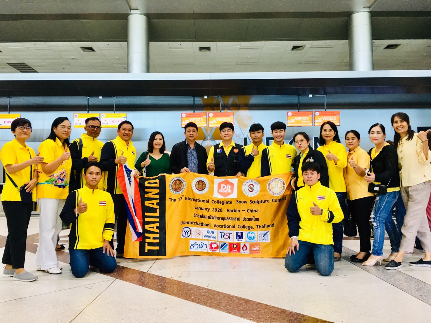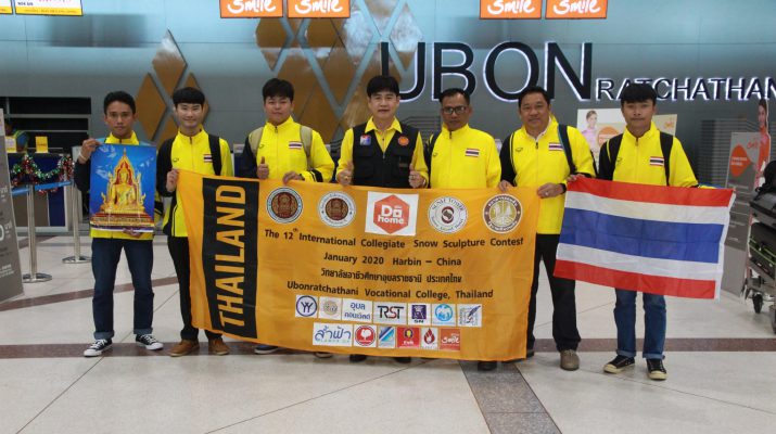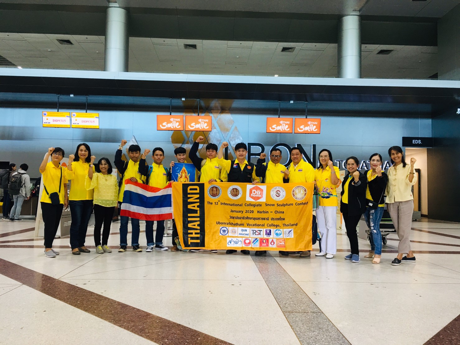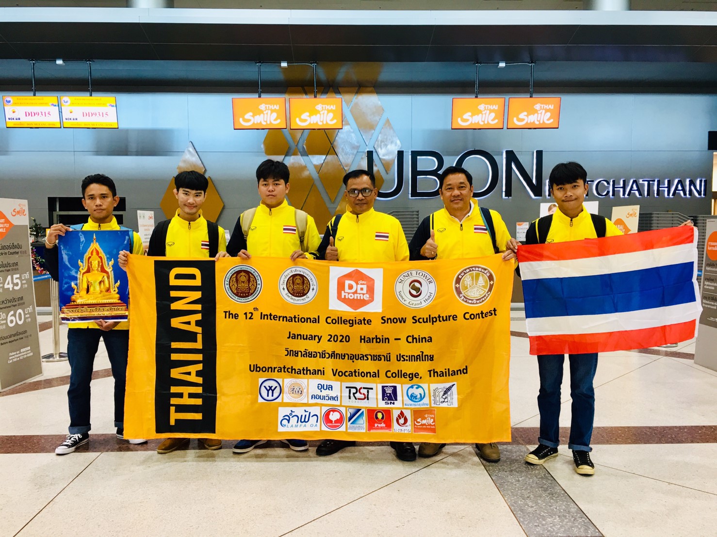 วานนี้ 31 ธันวาคม 2562 ที่สนามบินนานาชาติอุบลราชธานี วิทยาลัยอาชีวศึกษาอุบลราชธานี นำโดย ดร.พงษ์ศักดิพล ทาแก้ว ผู้อำนวยการวิทยาลัยอาชีวศึกษาอุบลราชธานี นำคณะผู้บริหาร ครู บุคลากร เดินทางส่งและให้กำลังใจทีมแกะสลักหิมะนานาชาติ ประกอบด้วย นายพิศิษฐ์ อู่ศิริกุลพาณิชย์ หัวหน้าคณะวิชาศิลปกรรม นายสุระชาติ พละศักดิ์ หัวหน้าแผนกวิชาวิจิตรศิลป์ ครูผู้ฝึกสอน นำนักเรียน นักศึกษา ประกอบด้วย นายอัฐกร แก้วหาวงศ์ นักศึกษา ปวส.2 นายพลรบ รูปคม นักศึกษา ปวส.1 นายอนันตชัย วอทอง นักเรียน ปวช.3 และนายอำพล ธรรมทอง นักเรียน ปวช.1 ทั้งหมดเป็นนักเรียน นักศึกษาในสาขาวิชาวิจิตรศิลป์ คณะวิชาศิลปกรรม เดินทางออกจากจังหวัดอุบลราชธานี วันนี้ เวลา 13.45 น. ด้วยสายการบินไทยสมายล์ เที่ยวบิน WE025 โดยได้รับการสนับสนุนเที่ยวบินเดินทางไป -กลับ ภายในประเทศ จากสายการบินไทยสมายล์ เหมือนเช่นทุกปี จากนั้นมีกำหนดเดินทางออกจากประเทศไทย ไปยังเมืองซีอาน ประเทศสาธารณรัฐประชาชนจีนในเวลา 09.00 น.ในวันที่ 1 มกราคม 2563 ต้อนรับศักราชใหม่ เพื่อปรับสภาพอุณหภูมิในร่างกาย ซึ่งในการเดินทางไปแข่งขันแกะสลักหิมะนานาชาติในปี 2563 ณ มหาวิทยาลัยวิศวกรรมฮาร์บิน มณฑลเฮย์หลงเจียง สาธารณรัฐประชาชนจีน ในปีนี้ มีตัวแทนของสถานศึกษา สังกัดสำนักงานคณะกรรมการการอาชีวศึกษา กระทรวงศึกษาธิการ จำนวน 3 แห่ง ดังนี้ วิทยาลัยสารพัดช่างตราด แชมป์ปี 2562
