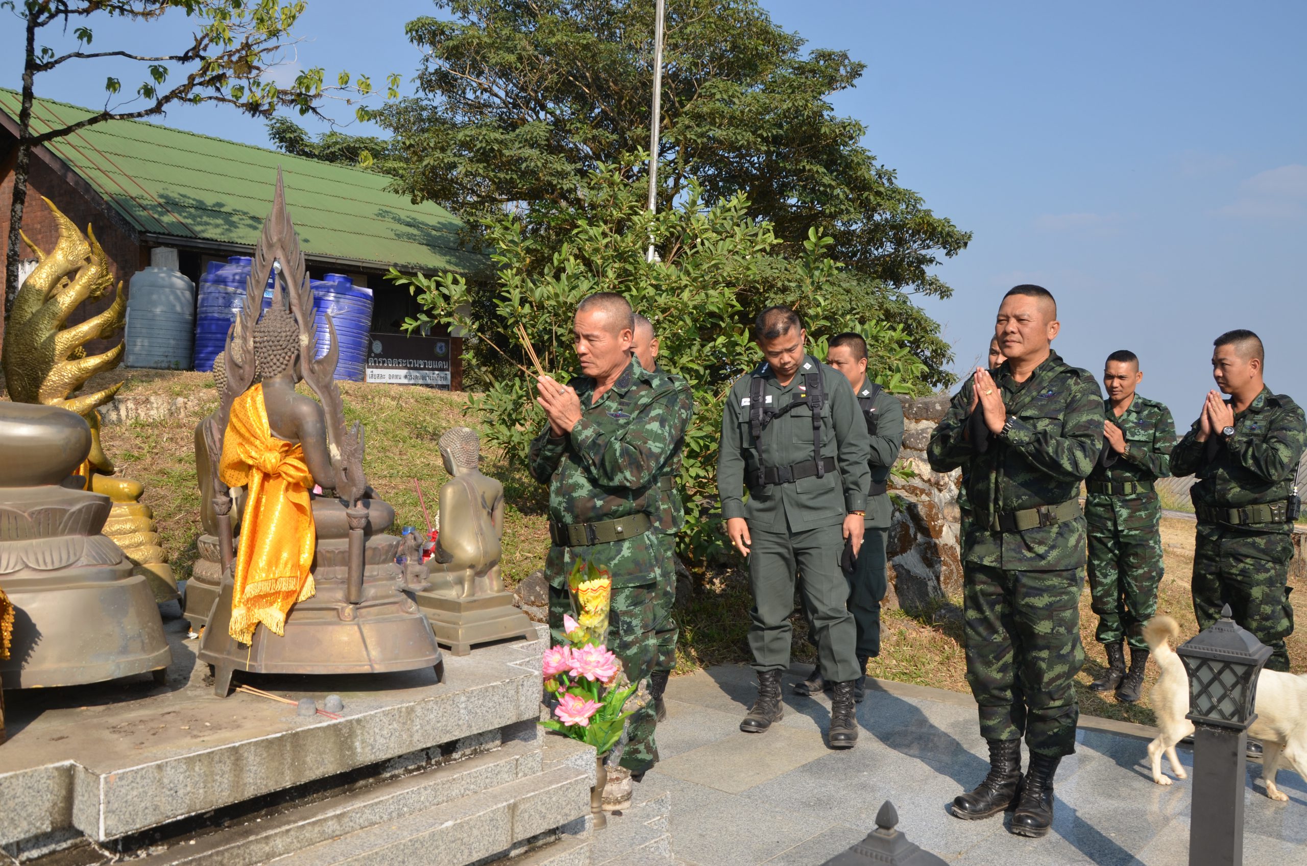 พล.ต.ฐกัด หลอดศิริ ผู้บัญชาการกองพลทหารราบที่ 9 ในฐานะ ผู้บัญชาการกองกำลังสุรสีห์ กล่าวว่า รู้สึกยินดีที่ได้เดินทางมาตรวจเยี่ยมพบปะกำลังพลที่ปฏิบัติหน้าที่ในพื้นที่ตามแนวชายแดน เพื่อเป็นการสร้างขวัญกำลังใจ ซึ่งในการปฏิบัติหน้าที่ป้องกันชายแดน มีพันธกิจ 3 ประการที่สำคัญ คือ การเฝ้าตรวจและป้องกันชายแดน การจัดระเบียบพื้นที่การแก้ไขปัญหาความมั่นคงตามแนวชายแดน และการประสานความร่วมมือกับประเทศเพื่อนบ้าน โดยให้มีการปฏิบัติตามแผนเผชิญเหตุและแผนป้องกันประเทศ หากเราสามารถขจัดปัญหาเงื่อนไขที่กระทบต่อความมั่นคง รวมถึงมีการจัดเตรียมสนามรบได้อย่างมีประสิทธิภาพ ก็จะสามารถกำหนดทิศทางหรือควบคุมสถานการณ์ ไม่ให้เกิดความรุนแรงในพื้นที่ได้ ขอให้กำลังพลที่ได้รับการอบรมความรู้ ประสบการณ์ นำศาสตร์และศิลป์มาใช้ในการทำงานในพื้นที่ชายแดนให้เกิดประโยชน์มากที่สุด พร้อมทั้งได้นำความห่วงใยและความปราถนาดีจาก ผู้บัญชาการทหารบก และ แม่ทัพภาคที่ 1 มามอบให้กับกำลังพลที่ปฏิบัติภารกิจป้องกันตามแนวชายแดนทุกนาย ทั้งนี้ขอให้กำลังพลทุกนายได้ตระหนักถึงภาระหน้าที่อันสำคัญยิ่ง ที่จะต้องทุ่มเท ร่วมแรงร่วมใจ อุทิศตนและเสียสละที่จะปฏิบัติหน้าปกป้องรักษาอธิปไตยในผืนแผ่นดินประเทศไทย บูรณาการร่วมกันป้องกันปราบปรามสกัดกั้นยาเสพติด อาวุธสงครามตามแนวชายแดน เพื่อให้เกิดความสงบเรียบร้อยในพื้นที่ตามแนวชายแดน นอกจากนั้นมีการเสริมงานด้านการดูแลประชาชนในภัยพิบัติต่างๆ อาทิ ภัยหนาว ภัยแล้ง ไฟป่า ให้มีการเข้าช่วยเหลือประชาชนโดยทันที รวมทั้งยังได้เน้นย้ำกำลังพลทุกนายห้ามเข้าไปเกี่ยวข้องกับสิ่งผิดกฎหมายทุกชนิด โดยเฉพาะยาเสพติดที่เป็นสิ่งทำลายชาติ ตลอดจนขอให้มีการรักษามาตราฐานการปฏิบัติงาน และปฏิบัติหน้าที่ให้มีเกียรติ มีศักดิ์ศรี อย่ามีการเรียกรับผลประโยชน์ในพื้นที่โดยเด็ดขาด ที่จะนำมาซึ่งความเสื่อมเสียของหน่วยและภาพลักษณ์ที่ดีต่อกองทัพบก