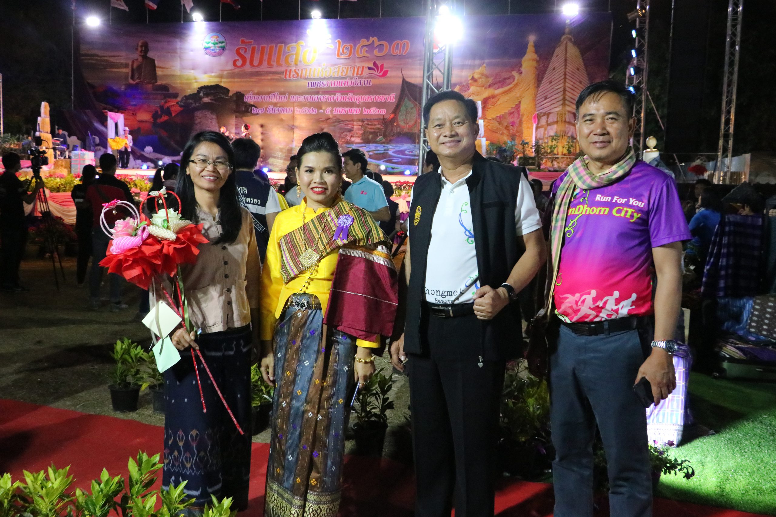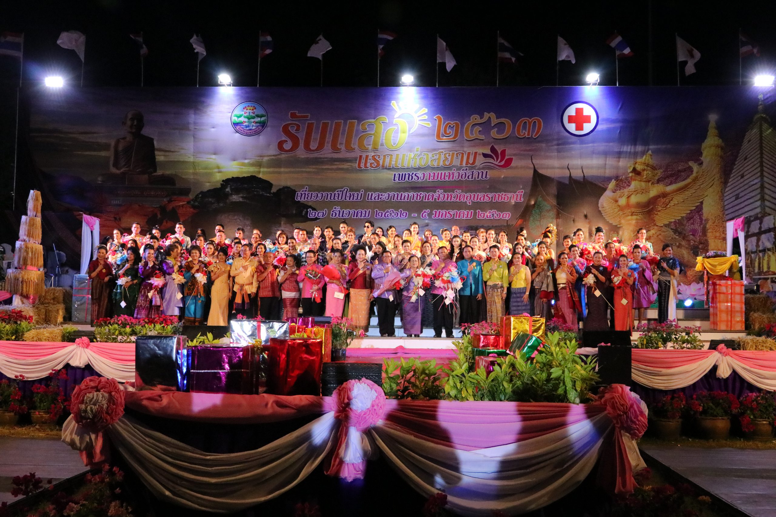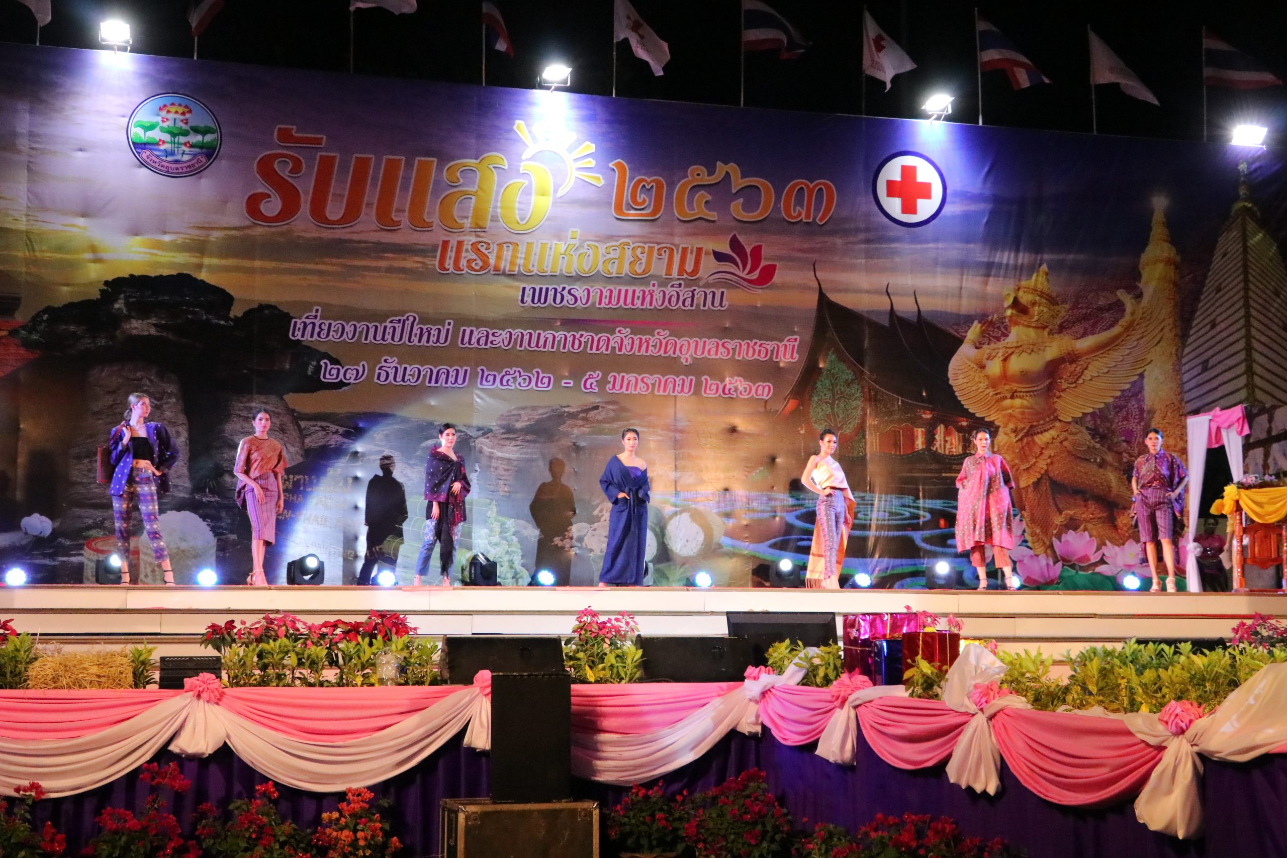 ที่ เวทีกลาง ลานขวัญเมือง อ.เมือง จ.อุบลราชธานี ในงานประจำปีและงานกาชาดจังหวัดอุบลราชธานี ประจำปี 2563 สำนักงานพัฒนาชุมชนจังหวัดอุบลราชธานี ได้จัดกิจกรรมการเดินแบบผ้ากาบบัว ผ้าไหม ผ้าฝ้าย และผ้าขาวม้า จังหวัดอุบลราชธานี ในงาน “รับแสงแรกแห่งสยาม เพชรงามแห่งอีสาน เที่ยวงานปีใหม่และงานกาชาดจังหวัดอุบลราชธานี ประจำปี 2563” ขึ้น โดยมี นายสฤษดิ์ วิฑูรย์ ผู้ว่าราชการจังหวัดอุบลราชธานี พร้อมด้วย นางยุพาภร วิฑูรย์ นายกเหล่ากาชาดจังหวัดอุบลราชธานี ,รองผู้ว่าราชการจังหวัดอุบลราชธานี ประกอบไปด้วย นายวิรุจ วิชัยบุญ ,นายศุภศิษย์ ก่อเจริญยศ และ นายอุทัย ทองเดช ,นายเกริกชัย ผ่องแผ้ว ปลัดจังหวัดอุบลราชธานี ,นางทรงลักษณ์ วรภัย พัฒนาการจังหวัดอุบลราชธานี ,หัวหน้าส่วนราชการ ,นายอำเภอ ,สมาชิกเหล่ากาชาดจังหวัดอุบลราชธานี ,ข้าราชการ คณะกรรมการพัฒนาสตรีจังหวัด และอำเภอ ร่วมกันเดินแบบผ้าอันเป็นเอกลักษณ์ของจังหวัดอุบลราชธานี ในครั้งนี้