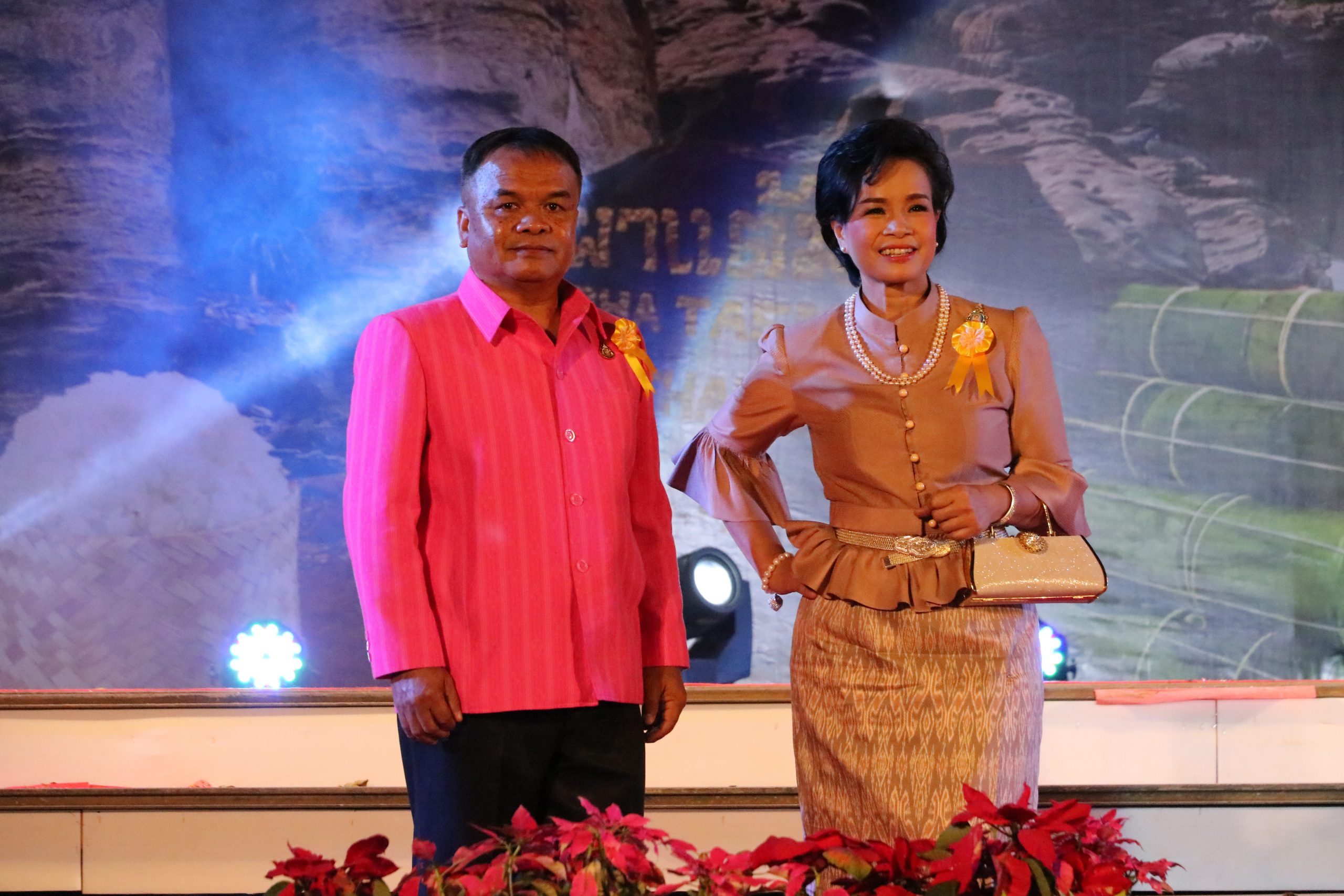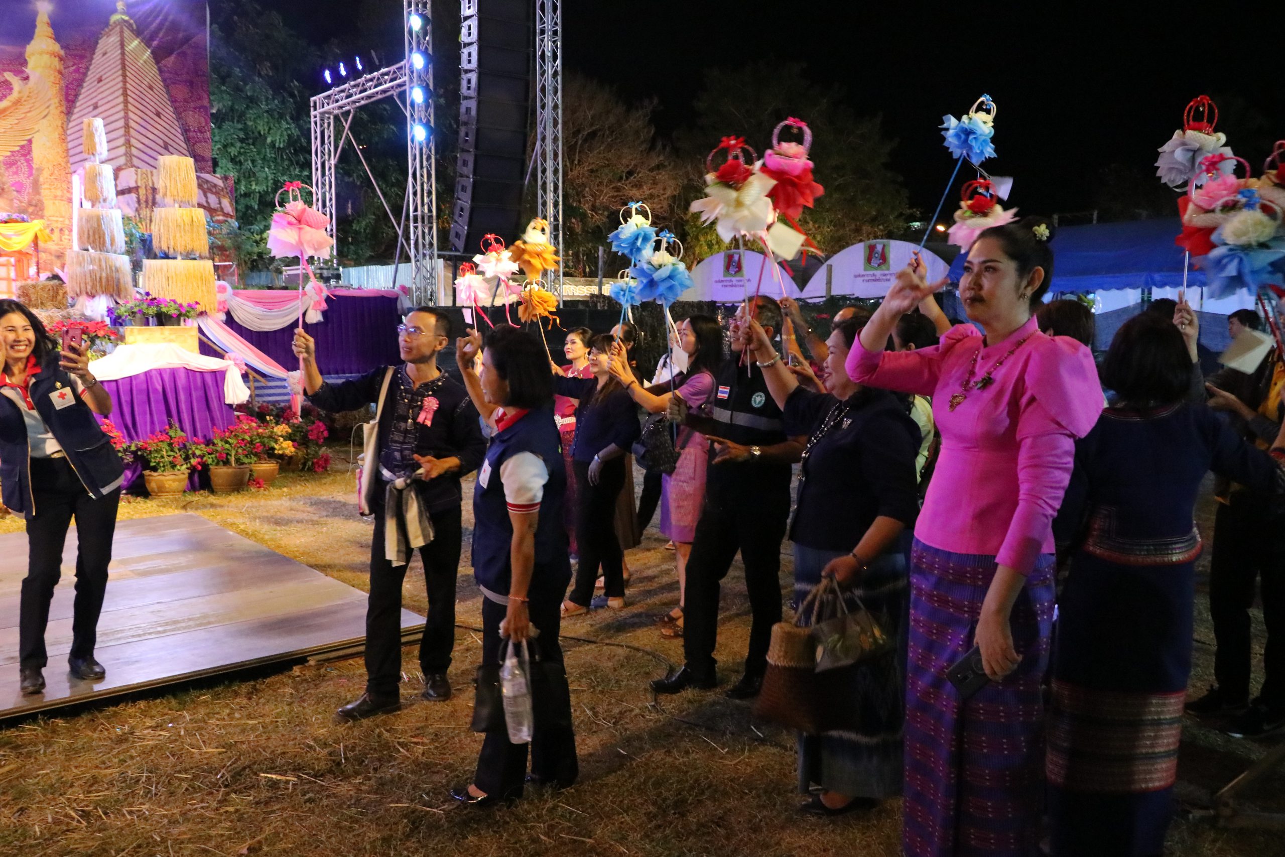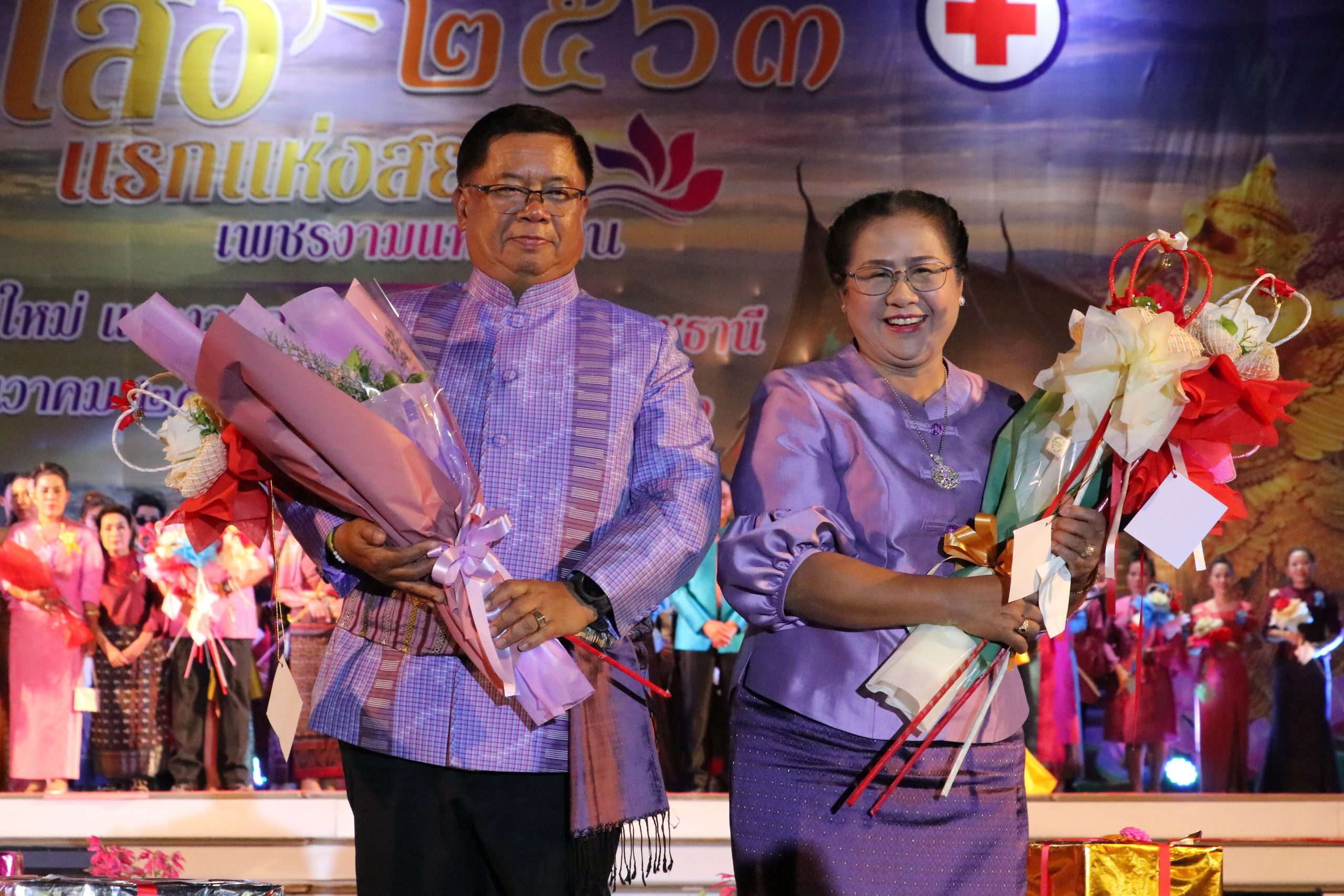 ที่ เวทีกลาง ลานขวัญเมือง อ.เมือง จ.อุบลราชธานี ในงานประจำปีและงานกาชาดจังหวัดอุบลราชธานี ประจำปี 2563 สำนักงานพัฒนาชุมชนจังหวัดอุบลราชธานี ได้จัดกิจกรรมการเดินแบบผ้ากาบบัว ผ้าไหม ผ้าฝ้าย และผ้าขาวม้า จังหวัดอุบลราชธานี ในงาน “รับแสงแรกแห่งสยาม เพชรงามแห่งอีสาน เที่ยวงานปีใหม่และงานกาชาดจังหวัดอุบลราชธานี ประจำปี 2563” ขึ้น โดยมี นายสฤษดิ์ วิฑูรย์ ผู้ว่าราชการจังหวัดอุบลราชธานี พร้อมด้วย นางยุพาภร วิฑูรย์ นายกเหล่ากาชาดจังหวัดอุบลราชธานี ,รองผู้ว่าราชการจังหวัดอุบลราชธานี ประกอบไปด้วย นายวิรุจ วิชัยบุญ ,นายศุภศิษย์ ก่อเจริญยศ และ นายอุทัย ทองเดช ,นายเกริกชัย ผ่องแผ้ว ปลัดจังหวัดอุบลราชธานี ,นางทรงลักษณ์ วรภัย พัฒนาการจังหวัดอุบลราชธานี ,หัวหน้าส่วนราชการ ,นายอำเภอ ,สมาชิกเหล่ากาชาดจังหวัดอุบลราชธานี ,ข้าราชการ คณะกรรมการพัฒนาสตรีจังหวัด และอำเภอ ร่วมกันเดินแบบผ้าอันเป็นเอกลักษณ์ของจังหวัดอุบลราชธานี ในครั้งนี้