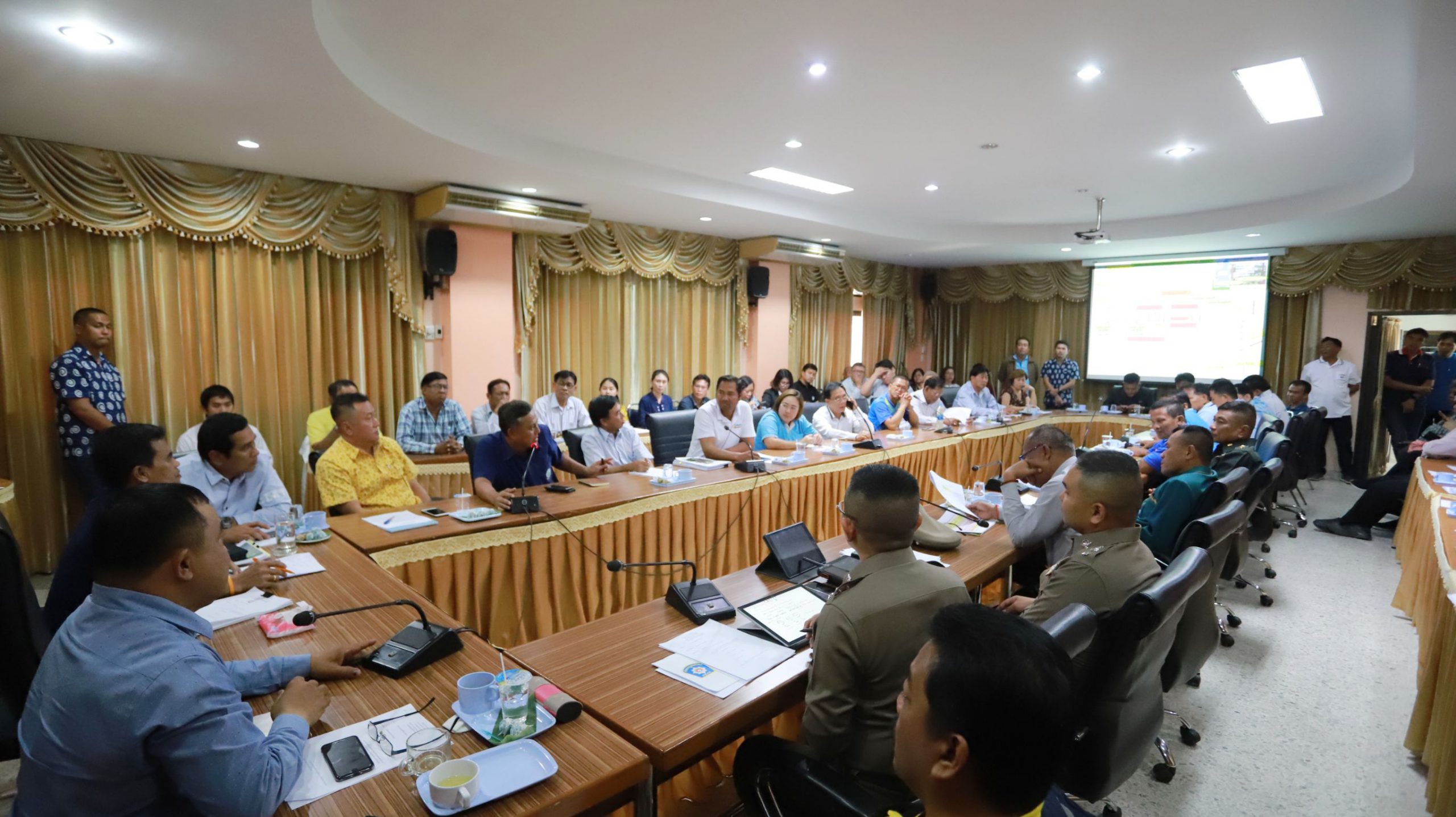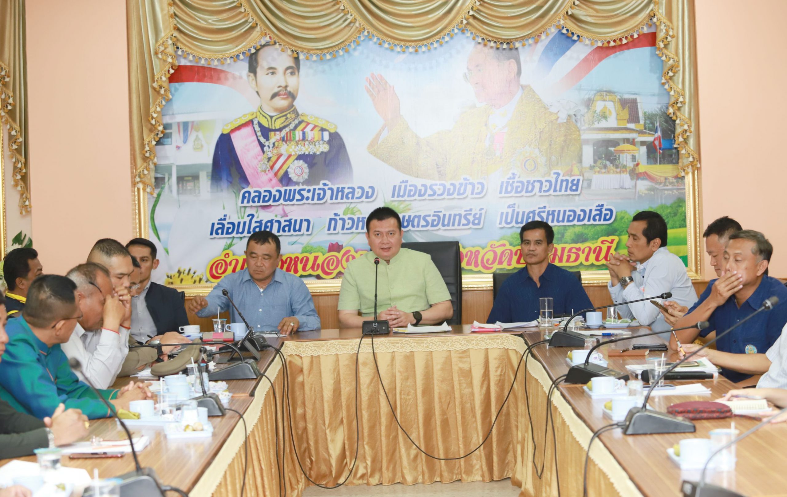 โดยที่ห้องประชุมอำเภอหนองเสือ จังหวัดปทุมธานี นายชาธิป รุจนเสรี รองผู้ว่าราชการจังหวัดปทุมธานี นายสมชาย ตรีณาวงษ์ นายอำเภอหนองเสือ นายชาญ พวงเพ็ชร์ นายกองค์การบริหารส่วนจังหวัดปทุมธานี นายพิษณุ พลธี สมาชิกสภาผู้แทนราษฎร เขตที่ 6 จังหวัดปทุมธานี นายสันต์ สร้อยแสง หัวหน้าสำนักงานป้องกันและบรรเทาสาธารณภัยจังหวัดปทุมธานี หัวหน้าส่วนราชการ นายกองค์กรปกครองท้องถิ่นในพื้นที่ เกษตรกรที่ได้รับผลกระทบจากภัยแล้ง หน่วยงานที่เกี่ยวข้องเข้าร่วมประชุม โดยที่ประชุมรายงานสถานการณ์น้ำ และการบริหารจัดการน้ำในปัจจุบันของจังหวัดปทุมธานี เพื่อแก้ไขปัญหาภัยแล้งให้กับประชาชนในพื้นที่
