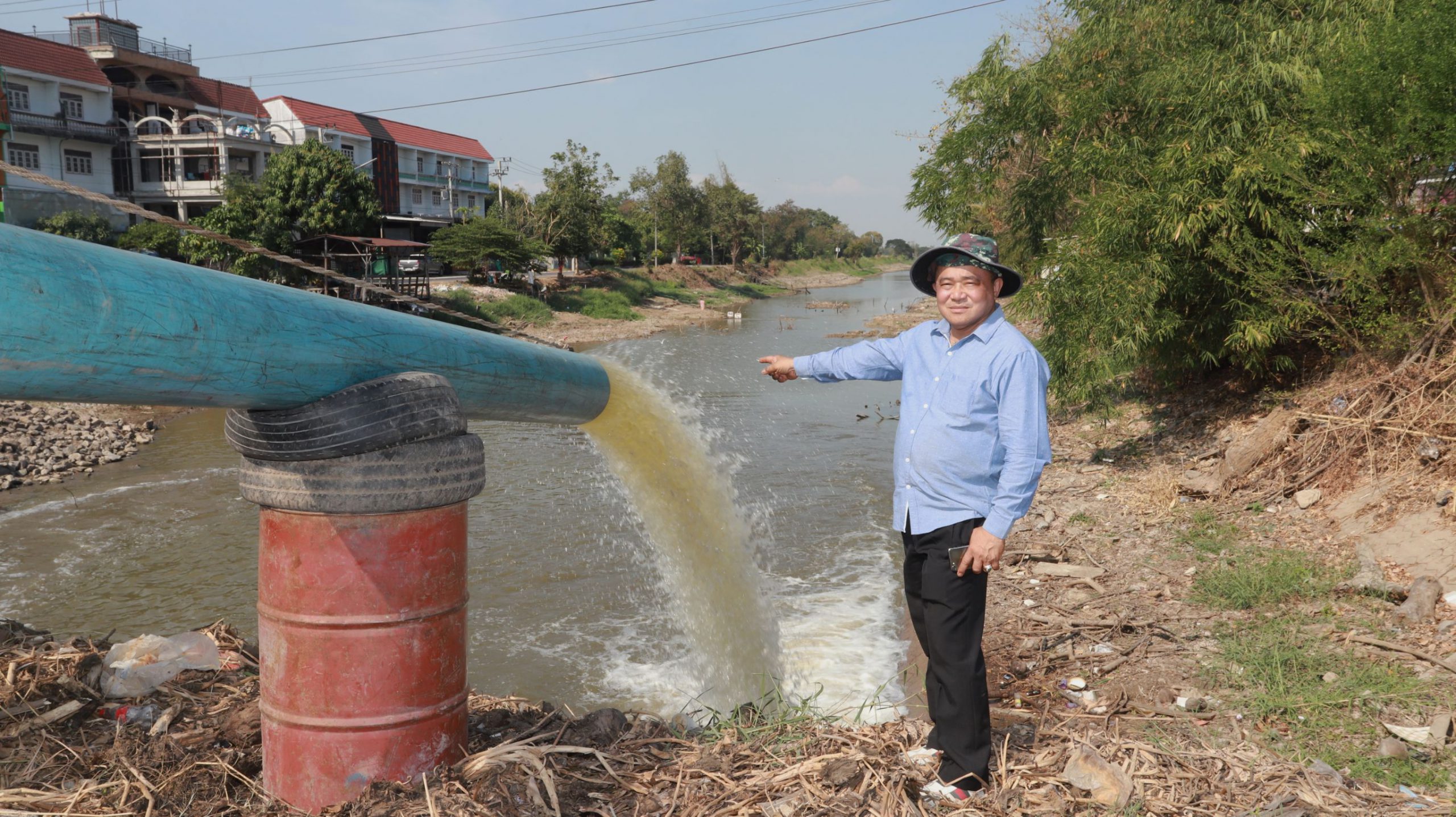 ผู้สื่อข่าวได้ออกสำรวจภัยแล้งที่อำเภอธัญบุรี อำเภอคลองหลวงและอำเภอหนองเสือ พบว่าบริเวณคลอง7-คลอง13 ตลอดทั้งคลองมีน้ำแห้งขอด ชาวบ้านเดือดร้อนจากวิกฤตภัยแล้งคุกคามอย่างหนัก บางจุดเดินข้ามฝั่งได้ ส่งผลให้เกษตรกรในพื้นที่เริ่มเกิดปัญหาขาดแคลนน้ำที่จะใช้หล่อเลี้ยงพืชผลทางการเกษตร นายสมชาย ตรีณาวงษ์ นายอำเภอหนองเสือ นายชาญ พวงเพ็ชร์ นายกองค์การบริหารส่วนจังหวัดปทุมธานี พร้อมด้วยคณะผู้บริหารองค์การบริหารส่วนจังหวัด และผู้นำท้องถิ่นลงพื้นที่ช่วยเหลือพี่น้องประชาชนที่ประสบปัญหาความเดือดร้อนเรื่องภัยแล้งเนื่องจากเกษตรกรในพื้นที่ตามคลองซอยต่าง ๆ ในพื้นที่อำเภอธัญบุรี อำเภอคลองหลวงและอำเภอหนองเสือ ต้องการน้ำเพื่อใช้เลี้ยงพืชผลทางการเกษตร แต่สภาพระดับน้ำภายในคลองกลับแห้งขอด จึงต้องสูบน้ำจากคลองรังสิตประยูรศักดิ์เข้ามายังคลองซอยเพื่อให้เกษตรใช้น้ำเลี้ยงพืชผล ส่วนสภาพน้ำบริเวณสะพานคลอง 7 อำเภอธัญบุรี จังหวัดปทุมธานีปริมาณน้ำลดลงมาก ชาวบ้านต้องร่วมกันนำทรายใส่กระทรอบช่วยเพื่อสร้างฝายตั้งเครื่องสูบน้ำตรงบริเวณนี้เพื่อสูบน้ำเข้าไปในคลองพื่อใช้เลี้ยงพืชผลทางการเกษตร
