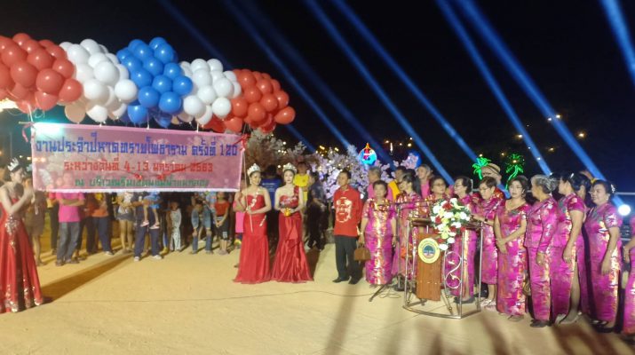 หลังจากนั้น นายชัยทิพย์ กมลพันธ์ทิพย์ ที่ปึกษารัฐมนตรีกระทรวงเกษตรและกระทรวงสหกรณ์ ได้กล่าวเปิดงานหาดทรายประจำปี 2563 ตรั้งที่120 เป็นทางการ ภายในงานวันนี้ไดมีการแสดงสิ่งโต และมังกร ของคณะศิษย์หลวงพ่อเขาแก่นจัานทร์ ส่วนในคืนวันที่6 ถึง 9 มกราคม2563 จัดให้มีงิ้วใหหลำภาคไทย 3คืนและในวันที่ 10-12 มีงิ้วสองโรงประชันกัน ในงานยังมีสวนสนุกอีกมากมายพร้อม สินค้าทั่วทิศมีจำหน่าย ภายในงาน ยังจัดไฟประดับต่างๆที่สวยงามให้ประชาชนที่มาเที่ยวในงานได้ถ่าย บันทึกภาพเป็นทีระลึก โดยได้รับการสนับสนุน จาก สจ.สายัณห์ จังพานิช อีดนายก อบจ. จังหวัด ราชบุรี เจ้าของโรงงานผลิต จำหน่าย ติดตั้ง รั้วสำเร็จรูปไทยยูโรเฟนซ์ อำเภอโพธาราม จ.ราชบุรี ที่ได้สร้างสีสันของงานให้เป็นที่รูจักของชาวต่างจังหวัดและประชาชนยังได้มีโอกาสมาร่วมบูชาขอพรจากองค์เทพเจ้าทั้ง 9 โดยมีเทพพระเจ้า ปุ่นเทศาลของอำเภอโพธาราม
