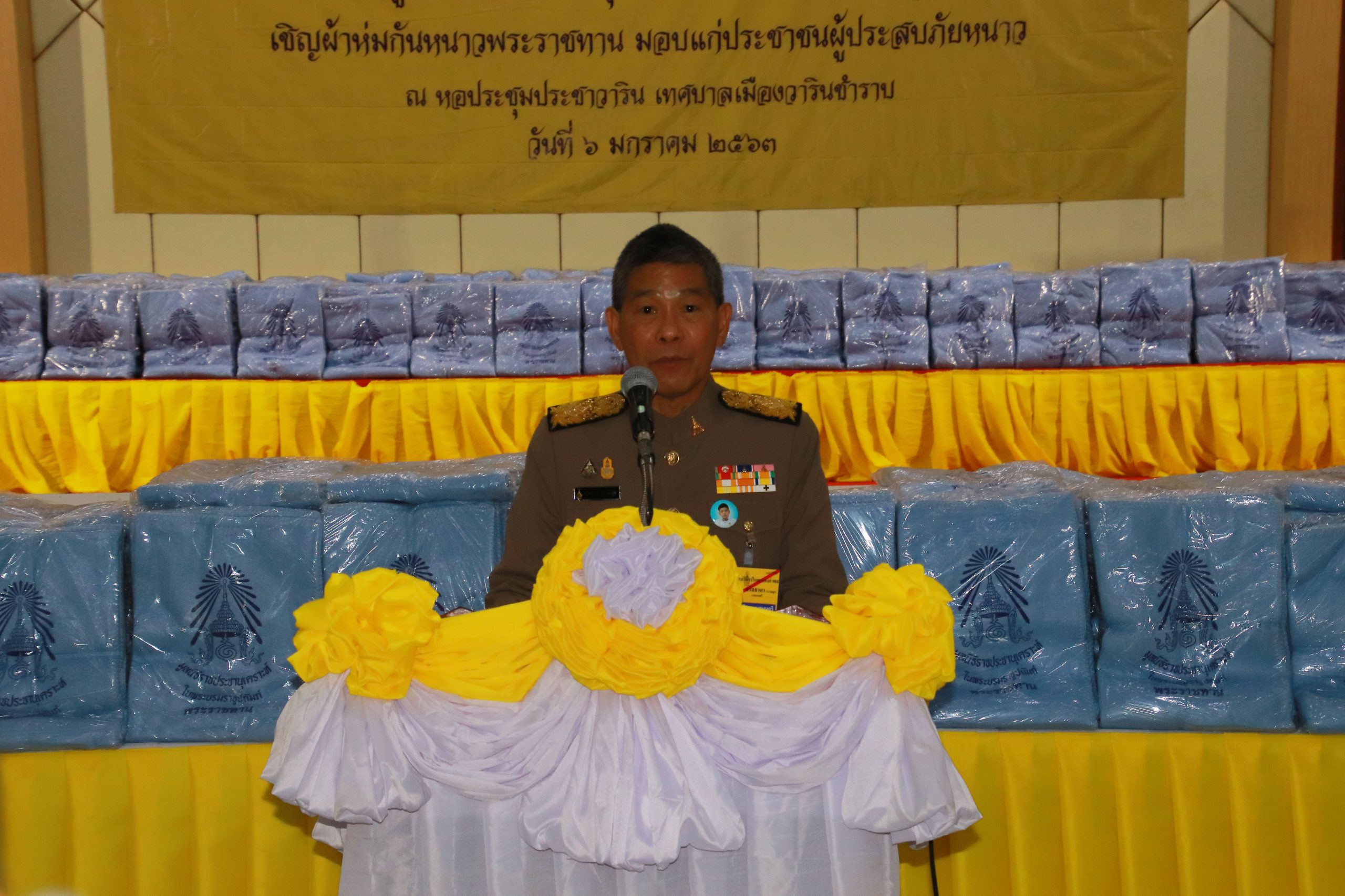 อุบลฯ พระบาทสมเด็จพระเจ้าอยู่หัว ทรงพระกรุณาโปรดเกล้โปรดกระหม่อม ให้องคมนตรีเชิญผ้าห่มกันหนาวพระราชทาน ไปมอบแก่ราษฎรที่ประสบภัยหนาวในพื้นที่จังหวัดอุบลราชธานี