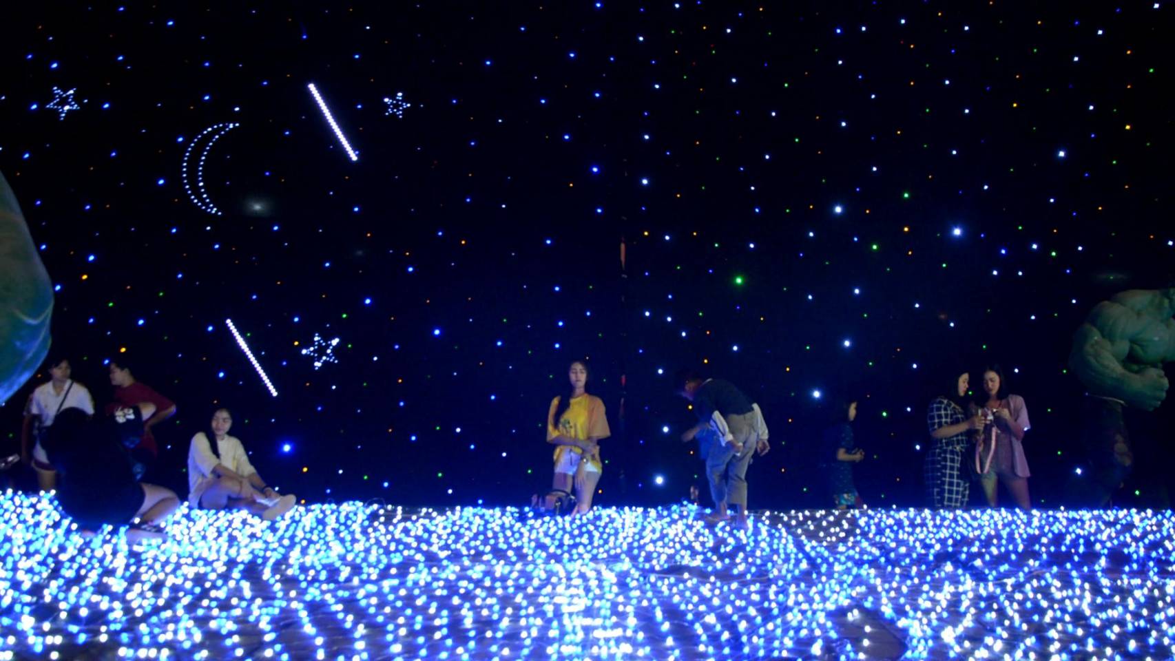 ส่วนบรรยากาศภายในงานมีการประดับตกแต่งจุดสำหรับถ่ายภาพนักท่องเที่ยวและผู้ที่ชื่นชอบการเซลฟี่ ด้วยไฟ LED ล้านด้วง ด้วยการจัดแบ่งออกเป็นโซนต่างๆ อาทิ โซนอวกาศทีมีการจำลองดาวเสา และคาวเคาะน้อยต่างๆ พร้อมทั้งยังมีดาวตก รวมไปถึงหุ่นมนุษย์ยักษ์จากภาพยนตร์ชื่อดัง ให้นักท่องเที่ยวได้สนุกกับการถ่ายภาพ โดยเฉพาะเด็กๆ ต่างชื่นชอบจำนวนมาก