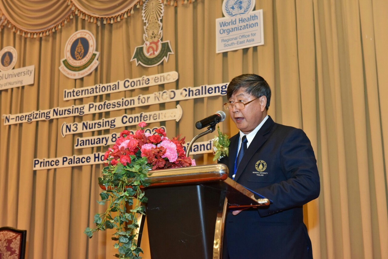 รองศาสตราจารย์ ดร.ยาใจ สิทธิมงคล คณบดีคณะพยาบาลศาสตร์ กล่าวถึงสถานการณ์ของโรคไม่ติดต่อเรื้อรัง หรือ Non communicable diseases (NCDs) เช่น โรคเบาหวาน โรคความดันโลหิตสูง โรคอ้วนลงพุง โรคหัวใจและหลอดเลือด โรคมะเร็ง โรคหลอดเลือดสมอง กำลังเป็นปัญหาสำคัญที่ทวีความรุนแรงขึ้นอย่างต่อเนื่องทั่วโลก ด้วยสถานการณ์เช่นนี้ จึงเป็นความท้าทายของวิชาชีพพยาบาล เนื่องจากวิชาชีพพยาบาลถือว่าเป็นแกนหลักสำคัญในระบบสุขภาพ มีหน้าที่หลักในการดูแลและสนับสนุน ให้ความรู้และแนะนำแนวทางในการดูแลสุขภาพของผู้ป่วยให้ดีขึ้น คณะพยาบาลศาสตร์ มหาวิทยาลัยมหิดล ในฐานะสถาบันการศึกษาพยาบาลชั้นนำของประเทศไทย ได้ตระหนักถึงปัญหาสำคัญดังกล่าว จึงได้ร่วมกับฝ่ายการพยาบาล โรงพยาบาลศิริราช สมาคมศิษย์เก่าพยาบาลศิริราชในพระราชูปถัมภ์สมเด็จพระศรีนครินทราบรมราชชนนี จัดการประชุมวิชาการนานาชาติในหัวข้อ “N-nergizing Nursing Profession for NCD Challenges (N3 Nursing Conference)” ที่โรงแรมปรินซ์ พาเลซ กรุงเทพมหานคร ระหว่างวันที่ 8- 10 มกราคม 2563
