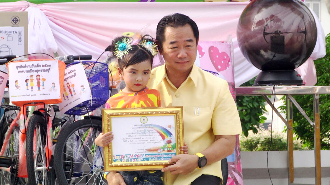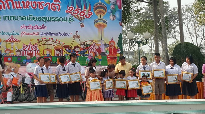 สุพรรณบุรี พ่อเมืองขุนแผนและรพ.ศูนย์เจ้าพระยายมราชมอบของขวัญวันเด็ก