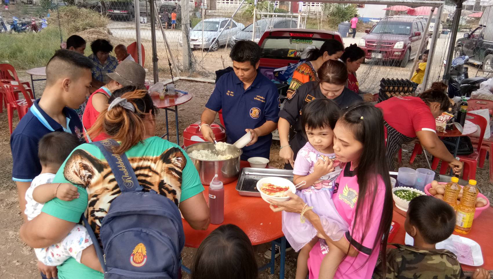 นายวิญู กล่าวอีกว่าเมนูประจำทุกปีจะเป็นเมนูข้าวไข่-เจียว ที่ได้รับการตอบรับจากเด็กๆและผู้ปกครองอย่างดีมาโดยตลอด ปีนี้พิเศษตรงที่ ช่วงค่ำ มีเมนูข้าวต้ม-ไข่เจียว ทำให้เป็นที่ฮือฮาทั้งเด็กและผู้ปกครองต่าง รีบมาต่อแถวนำไปรับประทานกันอย่างเอร็ดอร่อย ซึ่งค่าใช้จ่ายได้รับการสมทบทุนจากผู้ใจบุญ ร่วมซื้อไข่ไก่ น้ำมันพืช ผักสด แก๊สหุงต้ม และภาชนะ มาร่วมปรุงอาหารเลี้ยงเด็กๆ และผู้ปกครองได้อย่างเต็มที่หลังจากที่มีการจัดงานติดต่อกันเป็นประจำทุกปี ได้มีผู้ปกครองจากที่ต่างๆทั้งในพื้นที่ จ.สุพรรณบุรี และพื้นที่ใกล้เคียงทราบข่าวต่างเดินทางพาบุตรหลานมาร่วมงานเป็นจำนวนมากบรรยากาศเป็นไปอย่างคึกคัก