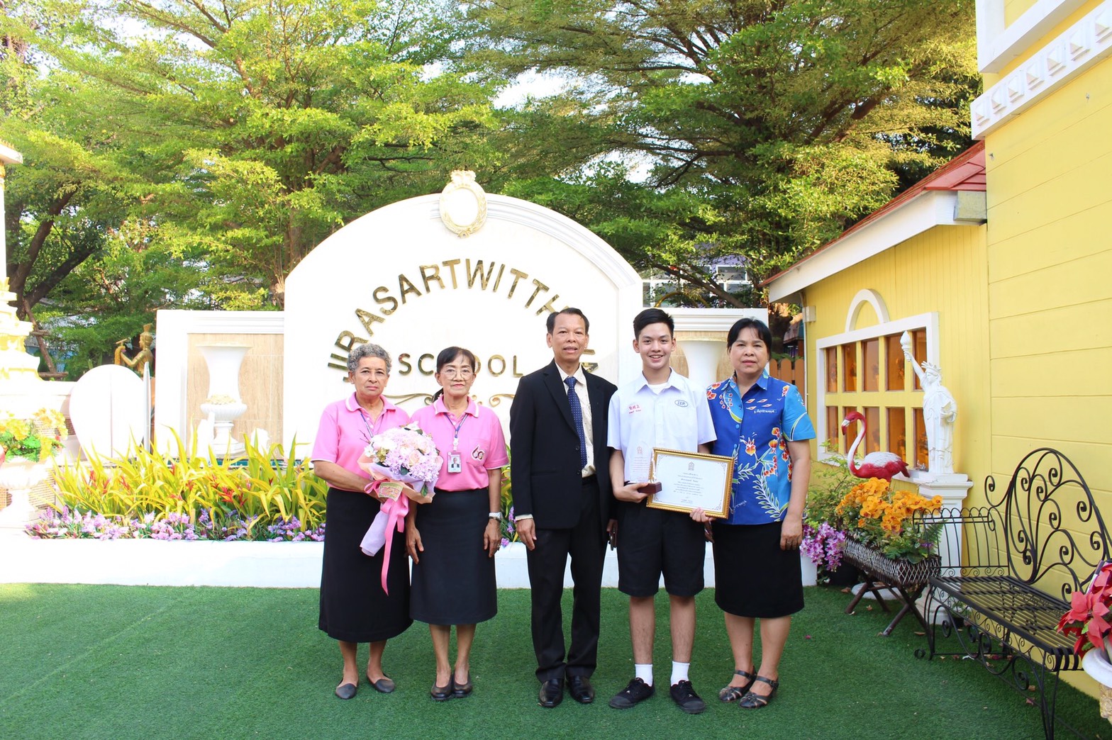 ดร. สุทธาทิพ ไชยรัตนะ ผู้อำนวยการ ร.ร. จิระศาสตร์วิทยา อำเภอพระนครศรีอยุธา จ.พระนครศรีอยุธยา พร้อมด้วยดร.ปฐมพงศ์ ศุภเลิศ และคณะผู้บริหารโรงเรียนจิระศาสตร์วิทยา ทำพิธีมอบใบประกาศนียบัตร และโล่รางวัล