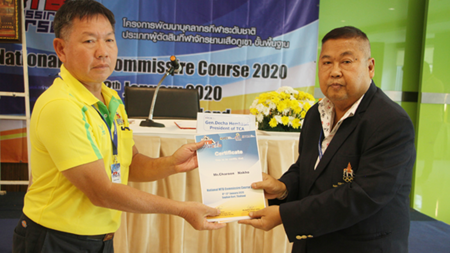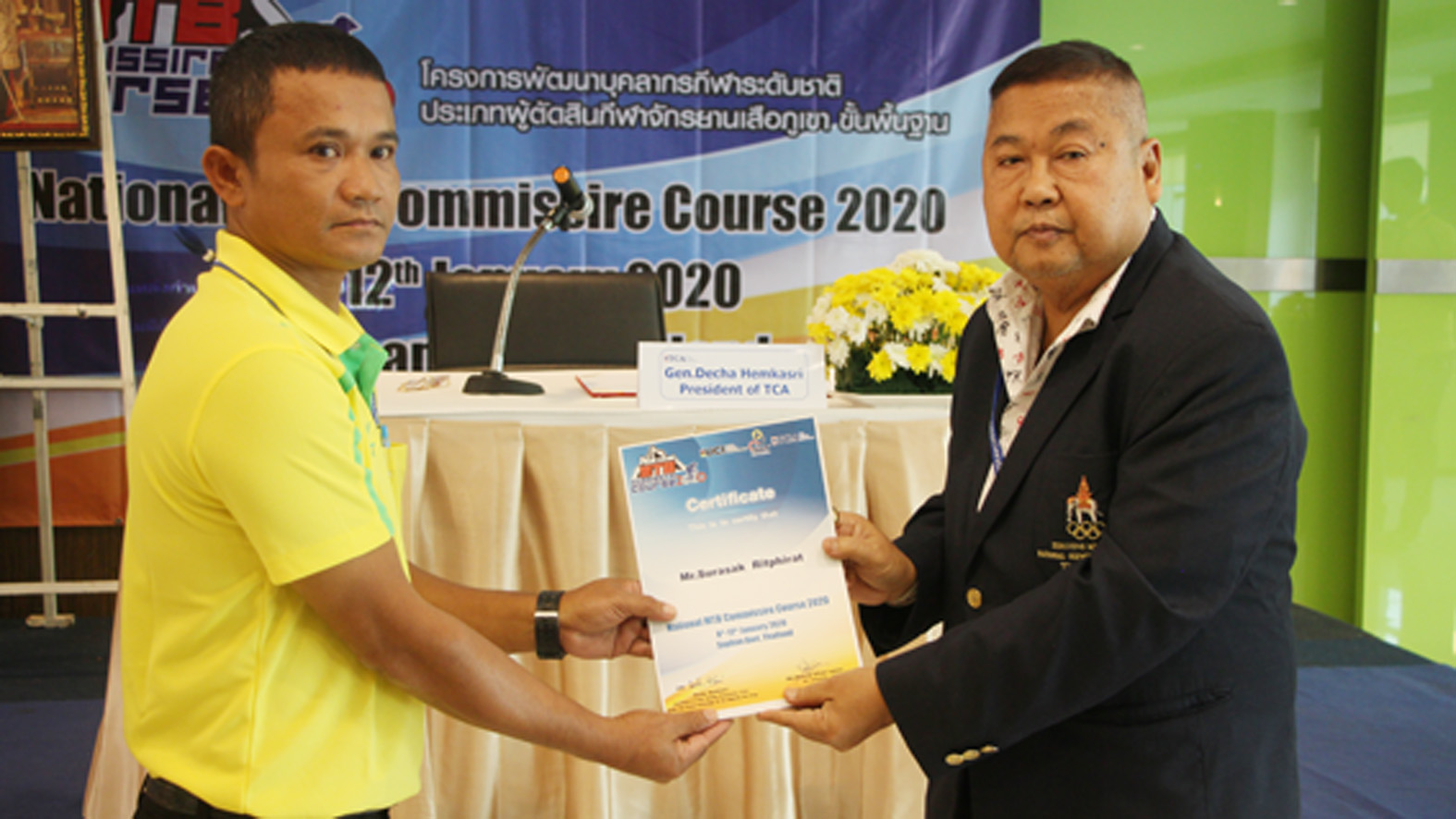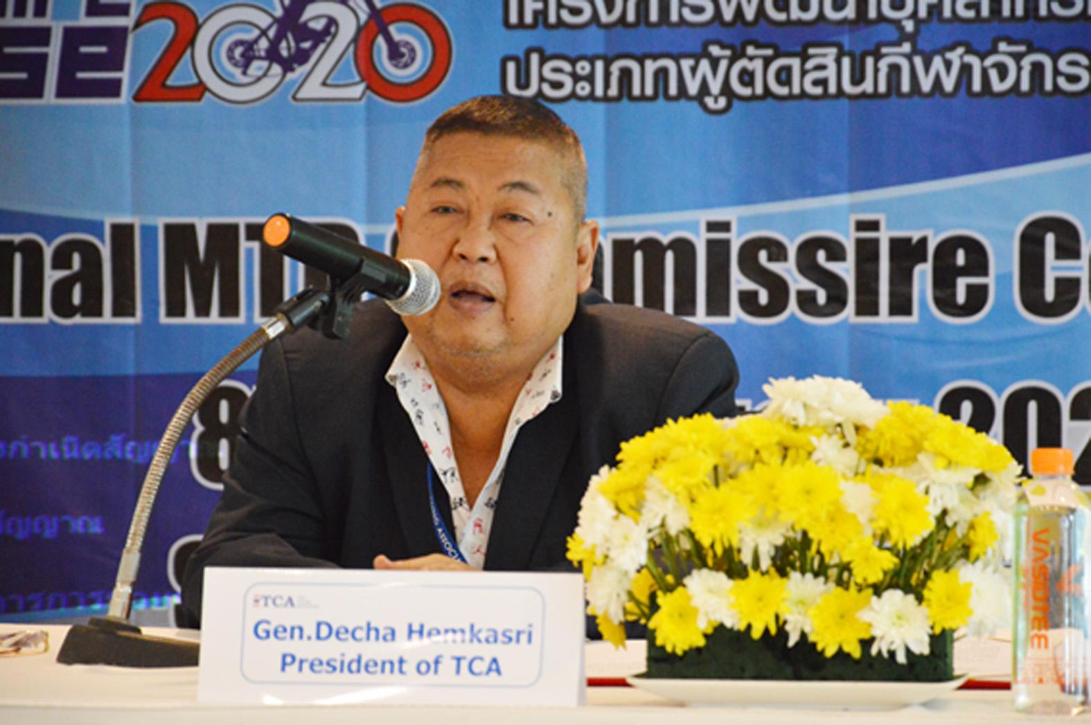 ทางด้านพลเอก เดชา เหมกระศรี นายกสมาคมกีฬาจักรยานแห่งประเทศไทยฯกล่าวว่าการอบรมครั้งเป็นการอบรมผู้ตัดสินระดับขั้นพื้นฐาน เป็นการเริ่มต้นของการเป็นผู้ตัดสินตนคิดว่าน่าจะเป็นประโยชน์ต่อตัวของผู้เข้ารับการอบรมอยากให้นำความรู้ที่ได้จากการอบรมในครั้งไปพัฒนากีฬาจักรยานประเภทเสือภูเขาในเรื่องกฎ กติกาที่ถูกต้องและทราบถึงความเปลี่ยนแปลง ของกีฬาจักรยานนำไปปฏิบัติและถ่ายทอดความรู้ กฎ กติกาที่ถูกต้อง อย่านำความรู้ที่ได้ไปใช้ในทางที่ผิดไม่อยากให้เป็นอย่างนั้นอยากให้ช่วยกันพัฒนากีฬาจักรยานให้มีศักยภาพและมีมาตรฐาน