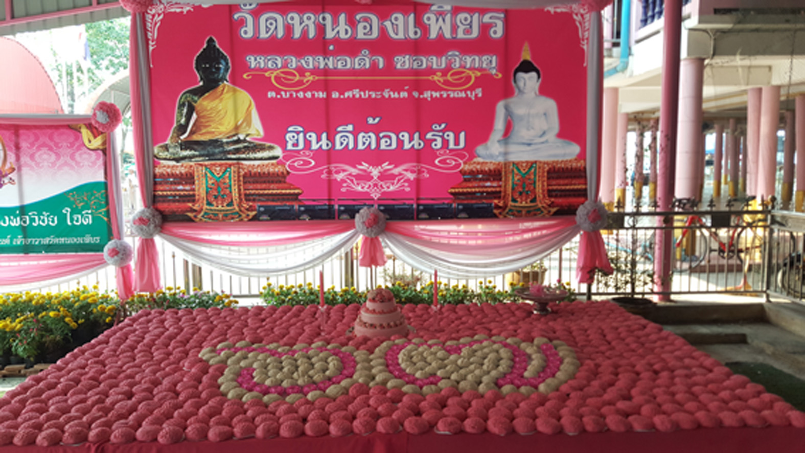 ชาวบ้านกว่า 2,000 คนแห่รับแจกเซาลาเปามงคลสีชมพู 2020 ลูก ในงานฉลองอายุวัฒนมงคล หลวงพ่อวิชัย ใจดี เจ้าอาวาสวัดหนองเพียร 67 ปี ได้รับประทานฟรี บางรายเก็บนำไปบูชา เชื่อทำให้มีความสุข ความเจริญ ทำมาค้าขึ้น มีโชคมีลาภ เพื่อความเป็นสิริมงคลแก่ตนเองและครอบครัว ส่วนหนุ่มชาว อ.อู่ทอง โชคดีได้รับแจกซาลาเปามงคลสีชมพูลูกพิเศษ พบว่าที่กระดาษรองซาลาเปามีข้อความว่าเป็นผู้โชคดี ได้รับรางวัลวัตถุมงคลพระเครื่องหลวงพ่อดำ 1 องค์ด้วย