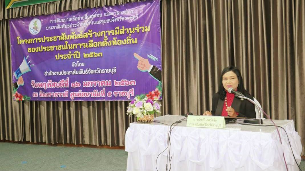 วันที่ 16 ม.ค. 63 สำนักงานประชาสัมพันธ์จังหวัดราชบุรีจัดสัมมนาเครือข่ายเครือข่ายสื่อมวลชน และอาสาสมัครประชาสัมพันธ์ประจำหมู่บ้านและชุมชนจังหวัดราชบุรี” ตามโครงการประชาสัมพันธ์สร้างการมีส่วนร่วมของประชาชนในการเลือกตั้งท้องถิ่น ประจำปีงบประมาณ 2563 โดยมีนางณิชารี ภควัตชัย ประชาสัมพันธ์จังหวัดราชบุรี เป็นประธานกล่าวเปิด ที่ห้องประชุมราชาวดี ศูนย์อนามัยที่ 5 ราชบุรี อ.เมืองราชบุรี ทั้งนี้การจัดโครงการดังกล่าวสำนักงานประชาสัมพันธ์จังหวัดราชบุรี มุ่งหวังให้กลุ่มเป้าหมายที่เป็นสื่อมวลชนและเครือข่ายสำนักงานประชาสัมพันธ์จังหวัดราชบุรี ที่ได้ร่วมกิจกรรมแล้ว สามารถขยายผลสร้างการรับรู้ให้แก่ประชาชนและมีความเข้าใจในการเตรียมความพร้อมก่อนการเลือกตั้งท้องถิ่นที่จะมีขึ้น ในปี 2563 อีกทั้งทำให้ภาคประชาชนได้มีส่วนร่วมและให้ความร่วมมือในการทำให้การเลือกตั้งท้องถิ่น มีความสุจริตและเที่ยงธรรม