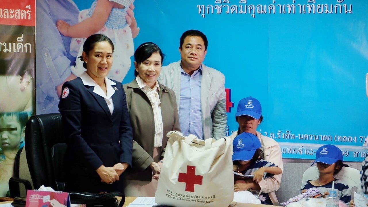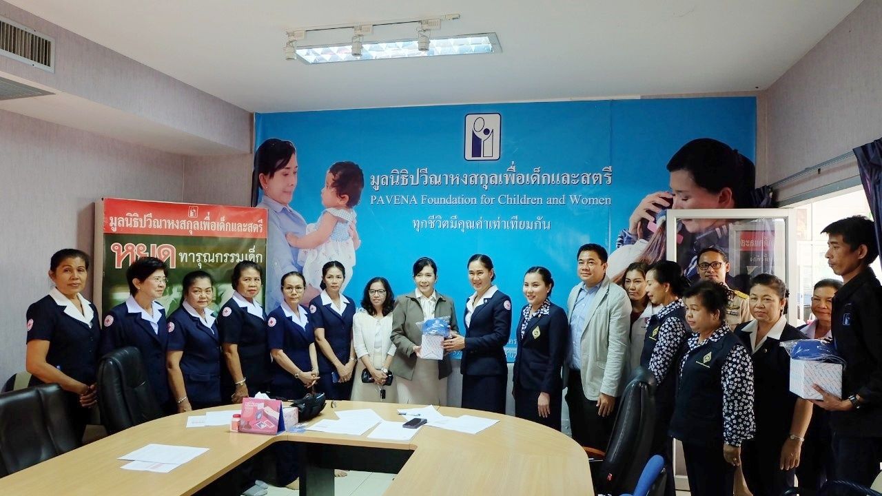 นายกเหล่ากาชาดปทุมธานีพร้อมคณะ รุดเยี่ยมเด็กหญิงทั้ง 3 คนที่ถูกตาเลี้ยงล่วงละเมิดทางเพศที่มูลนิธิปวีณาฯ