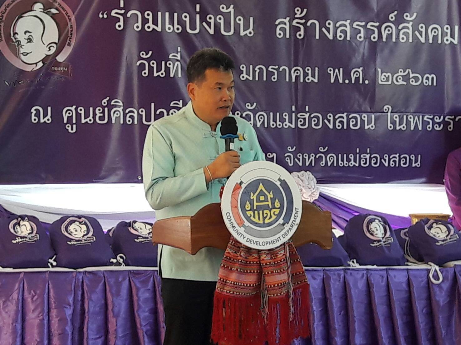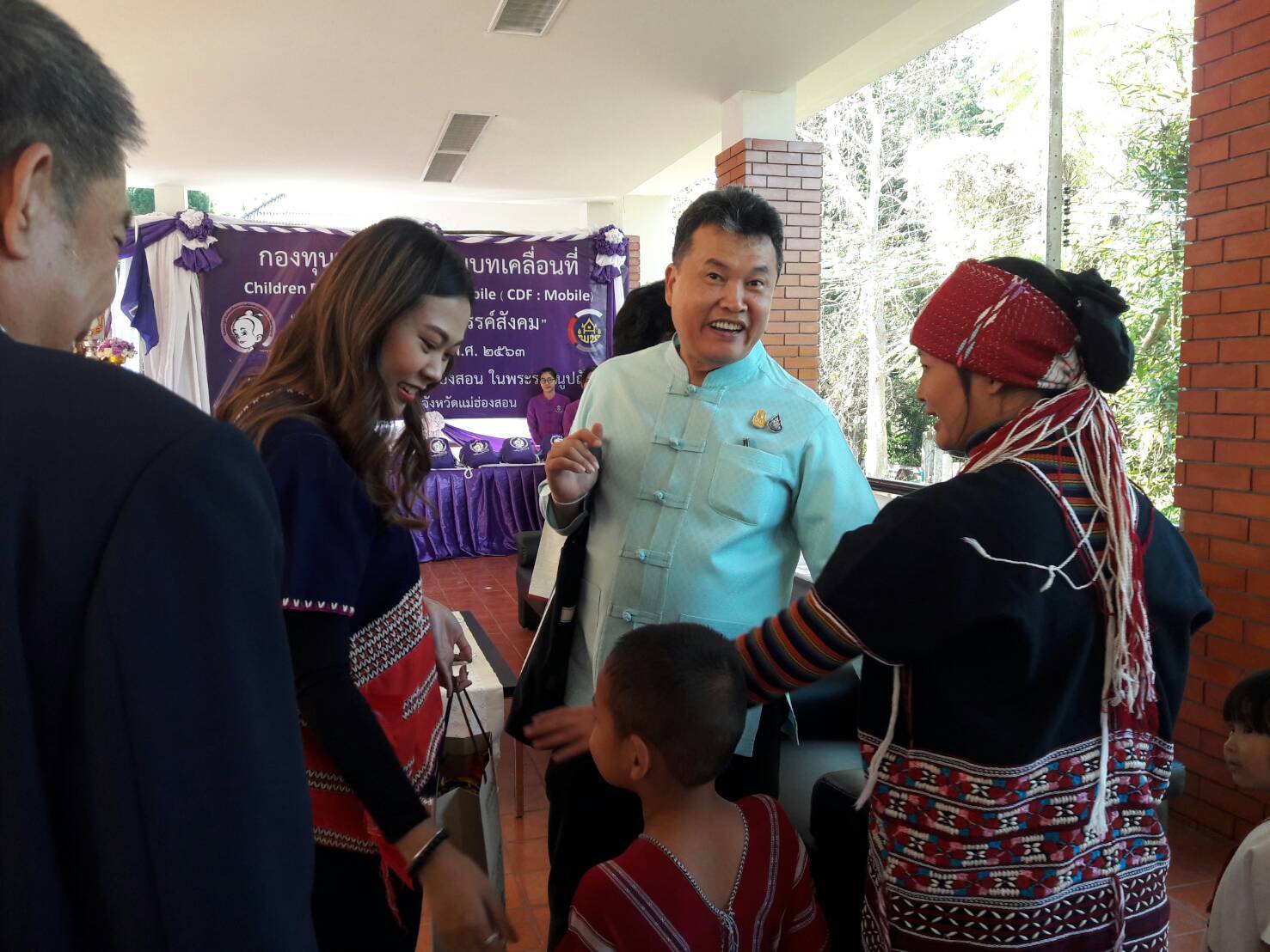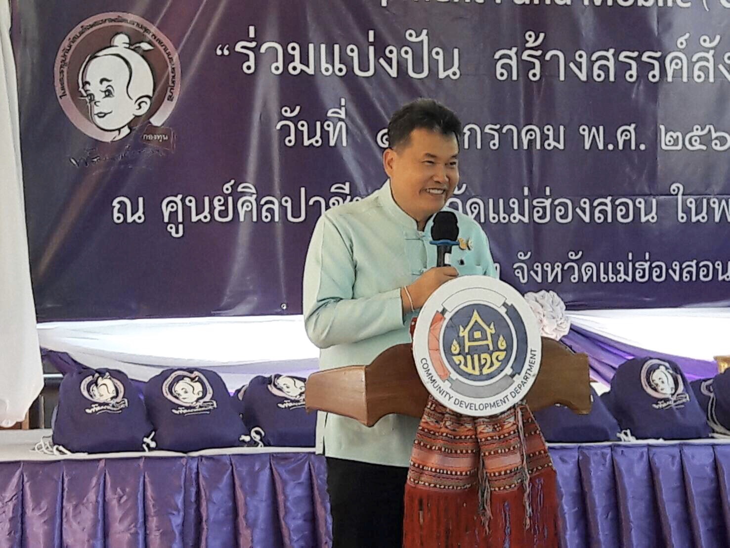 โดยมีนายสุวพงศ์ กิติภัทย์พิบูลย์ ผู้ว่าราชการจังหวัดแม่ฮ่องสอน กล่าวต้อนรับ ในการนี้นายปฐมพงษ์ จันทร์สว่าง พัฒนาการจังหวัดแม่ฮ่องสอน ในฐานะฝ่ายเลขานุการ กองทุนพัฒนาเด็กชนบท ในพระราชูปถัมภ์สมเด็จพระเทพรัตนราชสุดาฯ สยามบรมราชกุมารี กล่าวรายงานความเป็นมาของกิจกรรมกองทุนพัฒนาเด็กชนบทเคลื่อนที่ฯ จังหวัดแม่ฮ่องสอน ณ ศูนย์ศิลปาชีพจังหวัดแม่ฮ่องสอน อำเภอเมือง จังหวัดแม่ฮ่องสอน
