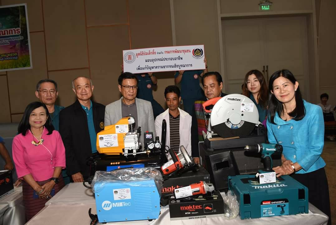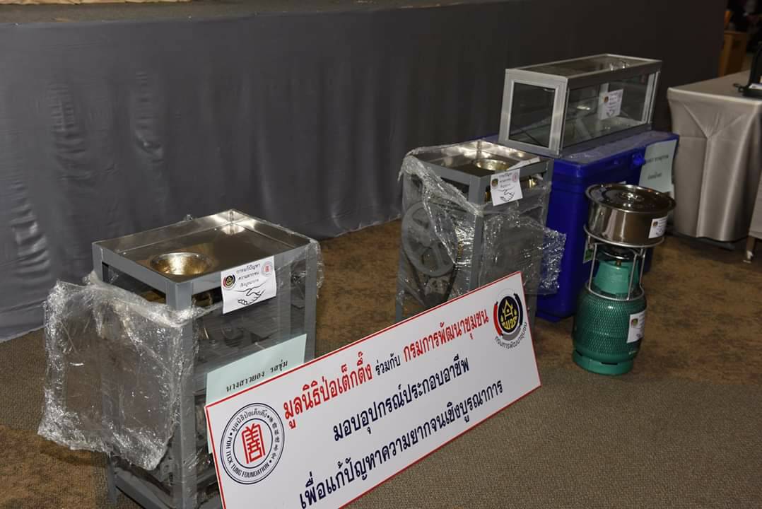 โดยมูลนิธิป่อเต็กตึ๊งได้จัดหาอุปกรณ์การประกอบอาชีพให้กับครัวเรือนยากจนในพื้นที่จังหวัดราชบุรีครั้งนี้ รวม 7 ครัวเรือน สำหรับวัสดุที่มอบให้ในครั้งนี้ อาทิ อุปกรณ์ด้านช่างก่อสร้าง ช่างเชื่อม จักรอุตสาหกรรมแบบเย็บผ้า เป็นต้น พร้อมกันนี้ครัวเรือนที่ได้รับมอบได้ลงนามบันทึกข้อตกลงว่าจะนำไปประกอบอาชีพอย่างซื่อสัตย์ และจะน้อมนำหลักปรัชญาเศรษฐกิจพอเพียงไปปรับใช้ในการดำเนินชีวิตต่อไป