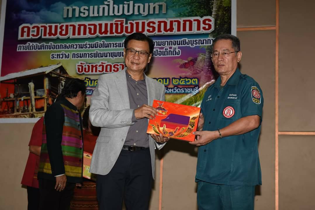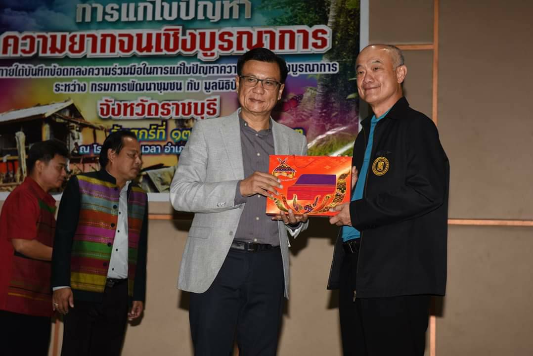วันที่ 17 ม.ค. 63 นายชยาวุธ จันทร ผู้ว่าราชการจังหวัดราชบุรี พร้อมผู้แทนกรมพัฒนาชุมชน และมูลนิธิป่อเต็กตึ้ง ร่วมมอบอุปกรณ์การประกอบอาชีพให้กับครัวเรือนยากจนในพื้นที่จังหวัดราชบุรี จำนวน 7 ครัวเรือน ให้สามารถประกอบอาชีพเลี้ยงตนเองและครอบครัว ดำเนินชีวิตตามหลักปรัชญาเศรษฐกิจพอเพียง โดยการรับมอบวัสดุอุปกรณ์การประกอบอาชีพนี้เป็นการประสานความร่วมมือแก้ไขปัญหาความยากจนเชิงบูรณาการ ระหว่างมูลนิธิป่อเต็กตึ๊ง กับกรมการพัฒนาชุมชน กระทรวงมหาดไทย ได้จัดทีมลงพื้นที่ ร่วมกับสำนักงานพัฒนาชุมชนจังหวัดราชบุรี พร้อมให้ความรู้ ทักษะ และมีวัสดุอุปกรณ์ไปประกอบอาชีพเลี้ยงตนเองและครอบครัว