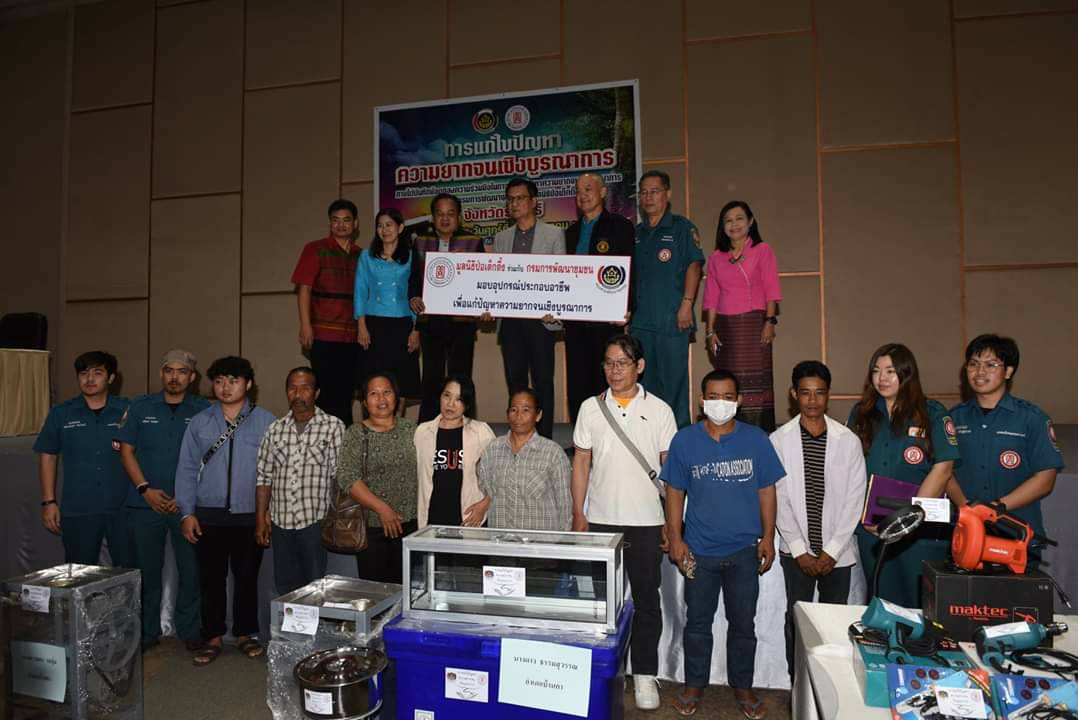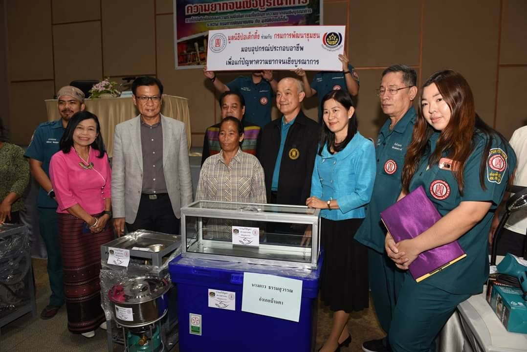 ราชบุรี มูลนิธิป่อเต็กตึ้งร่วมผู้ว่าฯมอบวัสดุอุปกรณ์ประกอบอาชีพแก่ครัวเรือนยากจนเป้าหมาย