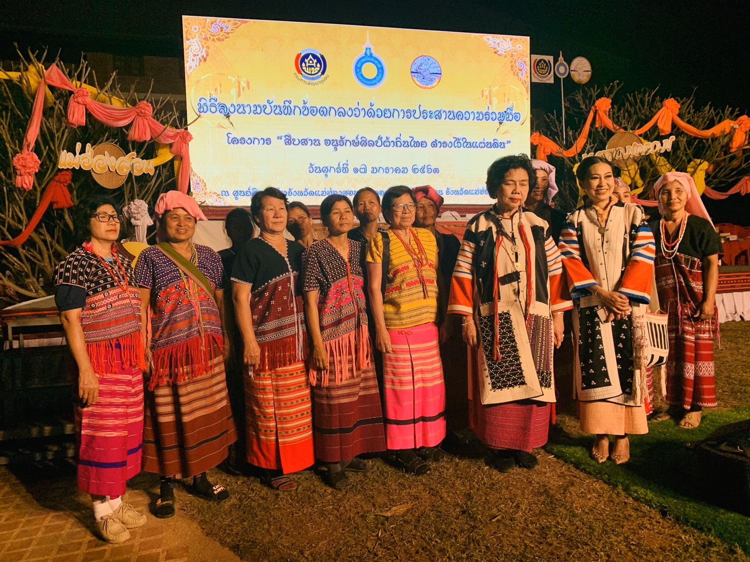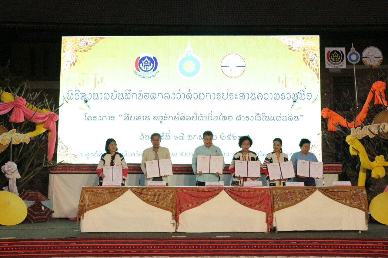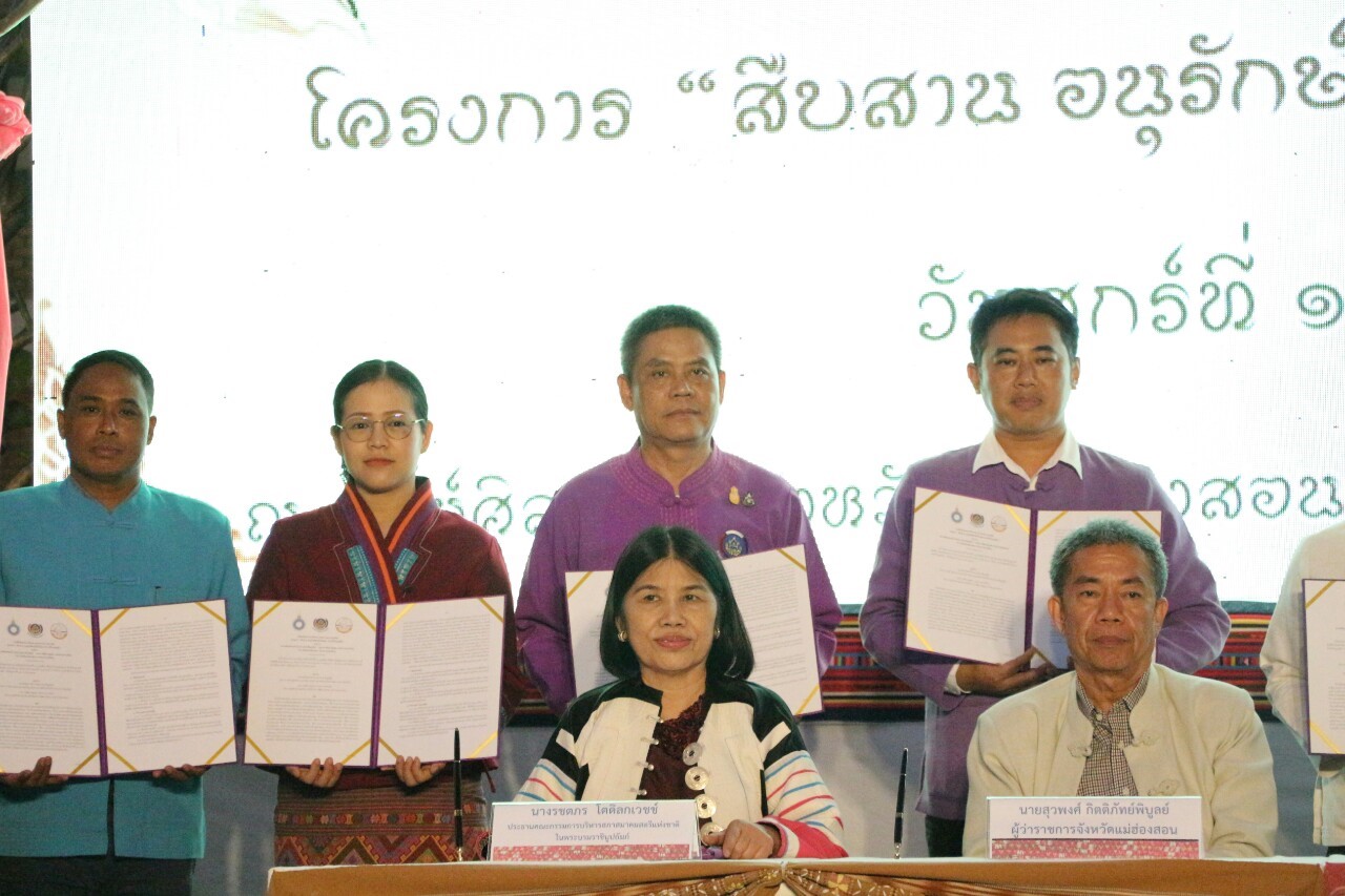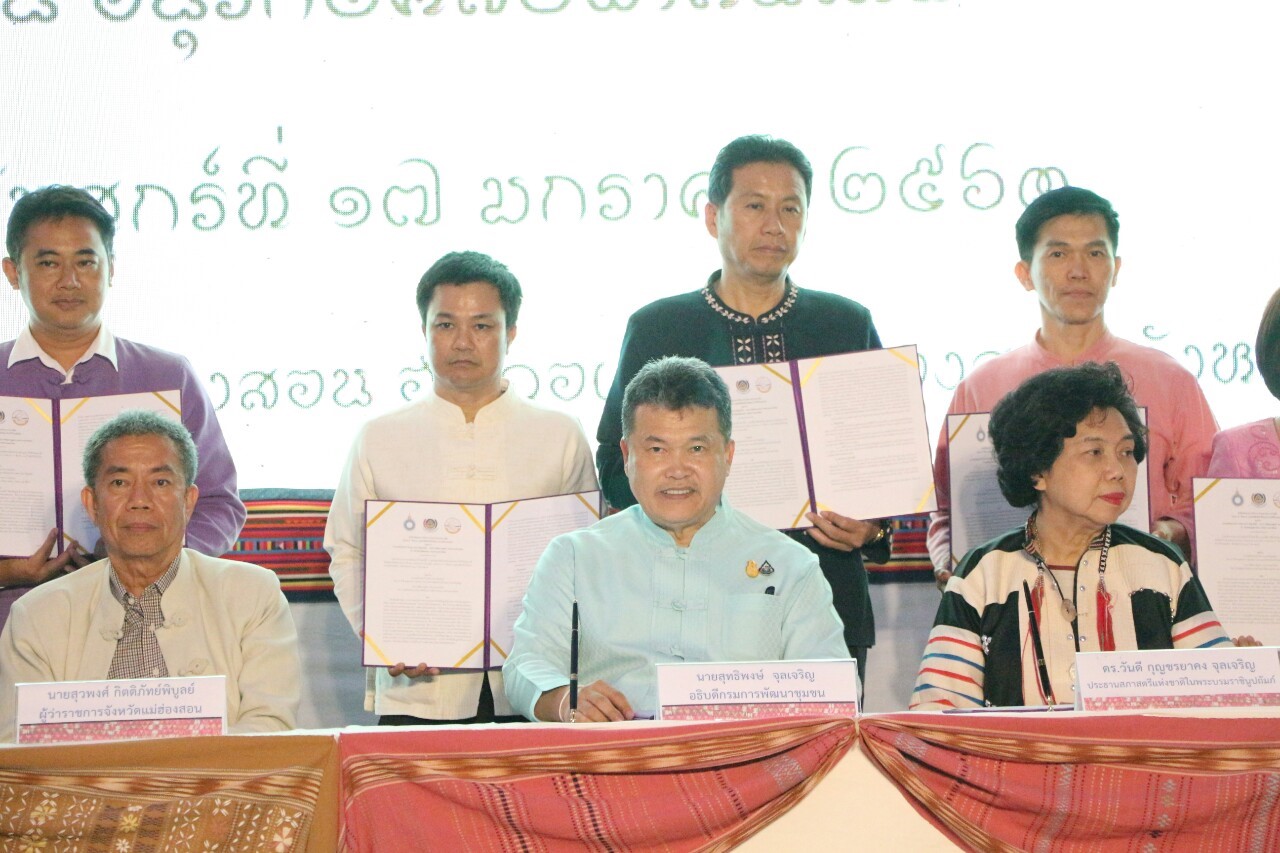 นายสุทธิพงษ์ จุลเจริญ อธิบดีกรมการพัฒนาชุมชน และ ดร.วันดี กุญชรยาคง จุลเจริญ ประธานสภาสตรีแห่งชาติในพระบรมราชินูปถัมภ์ พร้อมด้วย นางรชตภร โตดิลกเวชช์ ประธานกรรมการบริหาร สภาสตรีฯ คณะกรรมการสภาสตรี ร่วมพิธีลงานมบันทึกข้อตกลงว่าด้วยการประสานความร่วมมือ ตามโครงการ “สืบสาน อนุรักษ์ศิลป์ผ้าถิ่นไทย ดำรงไว้ในแผ่นดิน”กับนายสุวพงศ์ กิตติภัทรพิบูลย์ ผู้ว่าราชการจังหวัดแม่ฮ่องสอน พร้อมด้วยหัวหน้าส่วนราชการ เพื่อรณรงค์ให้พี่น้องประชาชนชาวแม่ฮ่องสอน ร่วมกันสวมใส่ผ้าไทยชนเช่า ประกอบด้วย ผ้าไทยใหญ่ ผ้าไทยกะเหรี่ยง/ปาปะเกอยอ ผ้าไทยลีซู นิยมใช้สีสันผ้าสดใส ผ้าไทยมูเซอหรือลาหุแดง ผ้าไทยมูเซอดำหรือลาหุดำ ผ้าไทยม้ง ศึ่งได้้รับการยกย่องว่ามีฝีมือในการปัก และมีทักษะในการทำกระโปรงจีบ ผ้าไทยละเวื้อ มีการแต่งกายด้วยเครื่องประดับ ผ้าไทยกระเหรี่ยงโป นิยมการปักด้วยลูกเดีอย ซึ่งผ้าไทยชนเผ่า ด้วยลักษณะภูมิประเทศของแม่ฮ่องสอน ส่วนใหญ่เป็นภูเขา มีพี่น้องชนเผ่าชาติพันธุ์ หลากหลายอาศัยอยู่ร่วมกันอย่างมีความสุขมาเป็นเวลาช้านาน มีการสืบสานศิลปวัฒนธรรมผ่านผ้าไทยชนเผ่า ที่มีความงดงามและเอกลักษณ์เฉพาะของแต่ละชนเผ่า