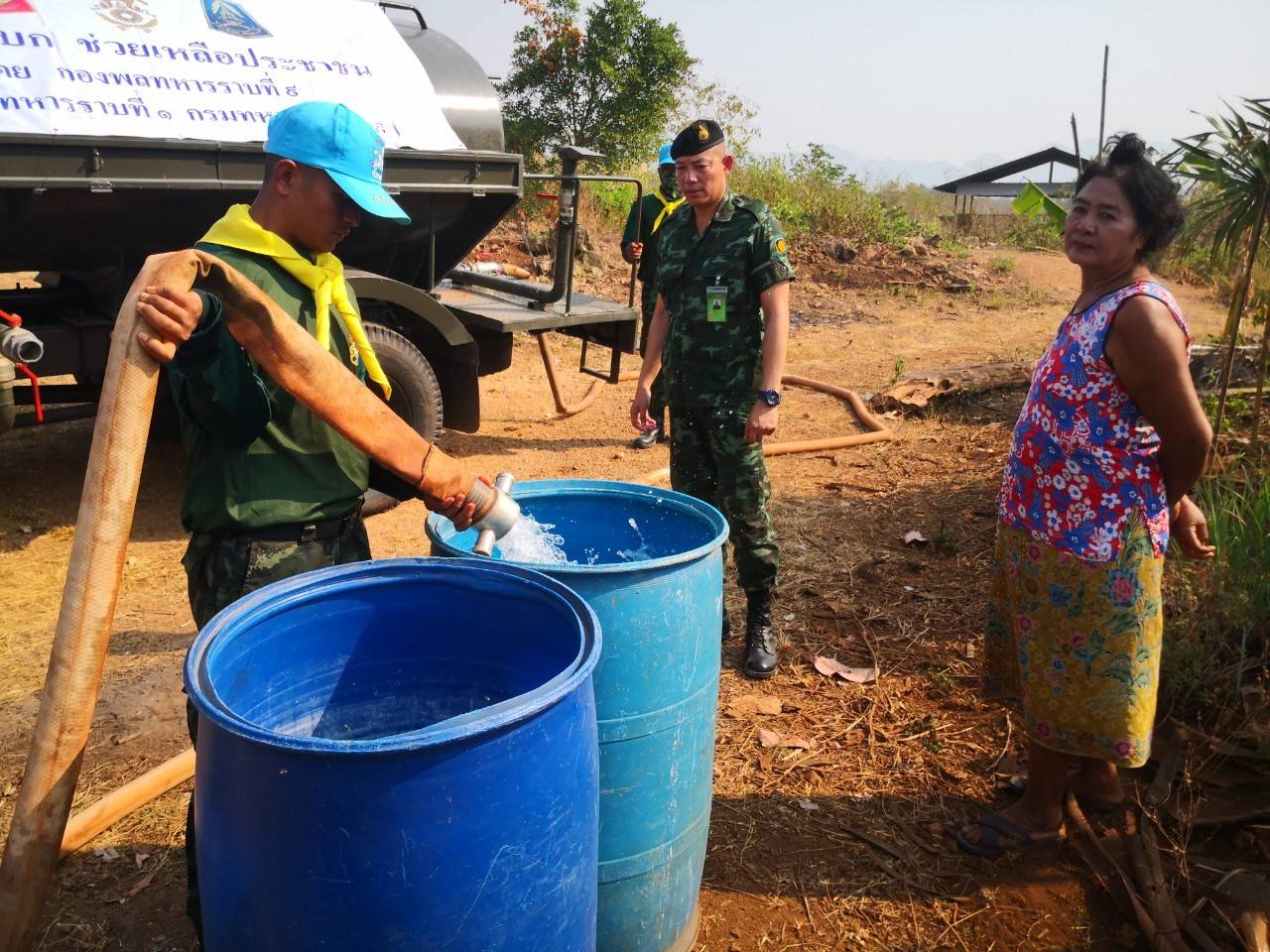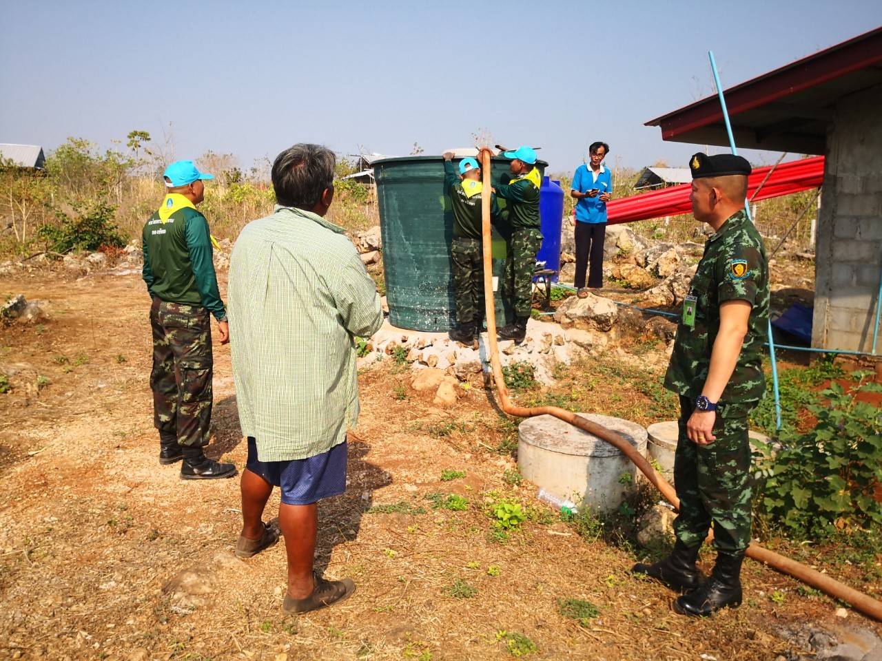 จากการที่เกิดภัยแล้งขึ้นในจังหวัดกาญจนบุรี ซึ่งทางจังหวัดได้ประกาศพื้นที่ ประสพภัยแล้ง จำนวน 6 อำเภอ ซึ่งบางพื้นที่ ขาดแคลนน้ำอุปโภค บริโภค พันเอกวินิจ สว่างเนตร ผู้บังคับการกรมทหารราบที่ 29 กองพลทหารราบที่ 9 ค่ายสุรสีห์ ผู้อำนวยการศูนย์บรรเทาสาธารณภัย กรมทหารราบที่ 29 ได้สั่งการให้ พ.ท.นพโรจน์ ชัยอัมราพัฒน์ ผู้อำนวยการศูนย์บรรเทาสาธารณภัย กรมทหารราบที่ 29 พัน.1 จัดกำลังพลจิตอาสา พร้อมด้วยรถบรรทุกน้ำ ขนาด 5,000 ลิตร ดำเนินการแจกจ่ายน้ำอุปโภคให้กับประชาชน จำนวน 20 ครัวเรือน ในพื้นที่หมู่ 2 บ้านเขาสามชั้น ตำบลลุ่มสุ่ม และ หมู่ 5 บ้านพุไม้แดง ตำบลสิงห์ อำเภอไทรโยค จังหวัดกาญจนบุรี