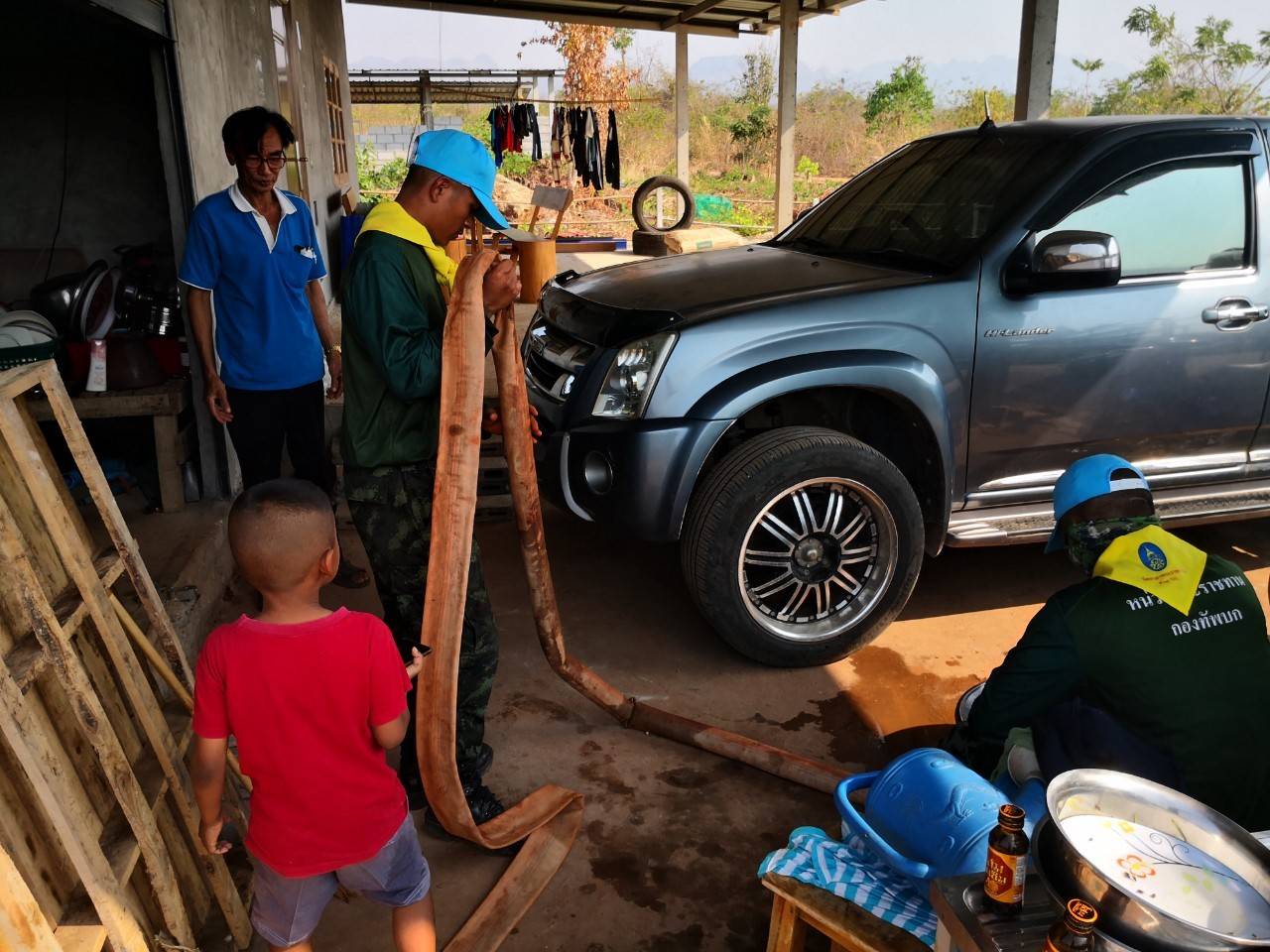 โดยได้รับการประสานจาก นายโยธิน จันทร์ที ผู้ใหญ่บ้านเขาสามชั้น และ นายสุภาพ กอฟัก กำนัน ตำบลสิงห์ ตามโครงการ “ราษฎร์ รัฐ ร่วมใจ ต้านภัยแล้ง” เพื่อบรรเทาความเดือดร้อนจากภัยแล้งให้แก่ประชาชนในพื้นที่ อำเภอไทรโยค โดยใช้น้ำในการแจกจ่ายให้กับประชาชน จำนวน 4 เที่ยว รวมทั้งสิ้น 20,000 ลิตร