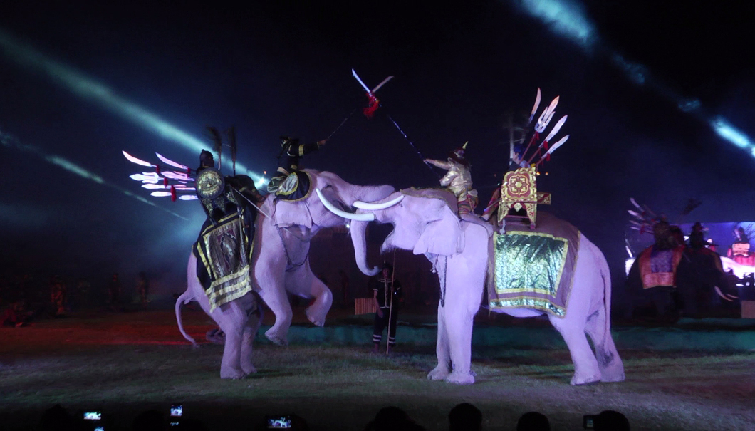 นักท่องเที่ยวจะได้ชมการแสดงยุทธหัตถี ประกอบ แสง สี เสียง สื่อผสม สงครามยุทธหัตถี การต่อสู้บนหลังช้างสุดยิ่งใหญ่สมจริง ช้างชนช้าง ใช้ช้างจริง ม้าจริง ยิ่งใหญ่ตระการตา วีรกรรมยุทธหัตถีกู้ชาติเกียรติยศไว้ในแผ่นดิน มีนักแสดงหลายร้อยชีวิต ที่ร่วมการแสดงมหาวีรกรรมยุทธหัตถี จำนวน 11 รอบ ณ สถานที่จริงแห่งประวัติศาสตร์ เมื่อกว่า 400 ปี ที่ผ่านมา เพื่อเป็นการเทิดพระเกียรติ สมเด็จพระนเรศวรมหาราช “พระองค์ดำ” และน้อมรำลึกถึงพระมหากรุณาธิคุณที่ทรงปกป้องรักษาผืนแผ่นดินไทยให้ลูกหลานได้อยู่อย่างร่มเย็นเป็นสุข และเป็นการรำลึกถึงพระมหาวีรกรรมของ “องค์สมเด็จพระนเรศวรมหาราช” ที่ทรงกระทำสงครามยุทธหัตถี และมีชัยชนะเหนือพระมหาอุปราชาแห่งกรุงหงสาวดี เหตุการณ์สำคัญที่เกิดขึ้นบนแผ่นดินบ้านหนองสาหร่าย อ.ดอนเจดีย์ จ.สุพรรณบุรี
