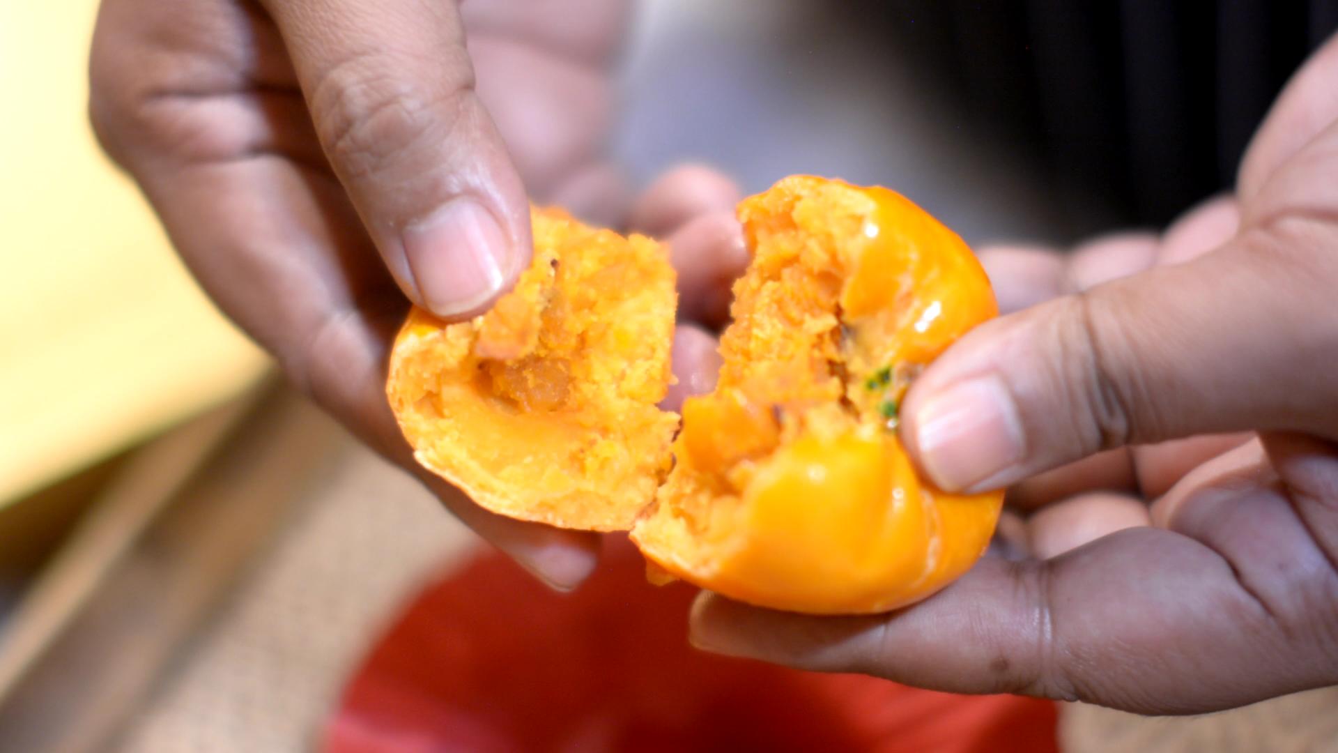 ไอเดียเก๋!! เปี๊ยะมงคลส้มสีทอง ของไหว้ตรุษจีนที่กำลังได้รับความนิยม ด้วยรสที่มีกลิ่นส้มสด หวานหอมจากไส้ถั่วทองคู่กับไข่เค็ม สูตรเด็ดจากร้านบ้านภูมิจิตเบเกอรี่ ที่ราชบุรี มียอดสั่งพุ่งผลิตวันละกว่า 500 ลูก