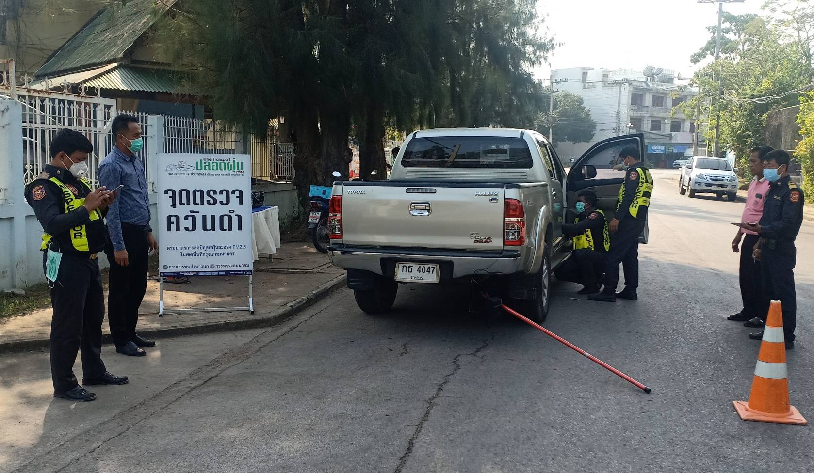 ด้วยอำเภอโพธาราม ได้รับแจ้งจากจังหวัดราชบุรีว่าสถานการณ์ ในพื้นที่จังหวัดราชบุรี มีปริมาณฝุ่นละอองขนาดเล็ก PM 2.5 ในอากาศเกินมาตรฐาน (50 ไมโครกรัม /ลบ.ม.) อยู่ในระดับเริ่มมีผลกระทบ ต่อสุขภาพโดยส่วนหนึ่งมาจากเครื่องยนต์ที่มีความบกพร่องในการทำงาน ทำให้เกิดควันดำเกินมาตรฐานซึ่งสำนักงานขนส่งจังหวัดราชบุรีได้รับมอบหมายจากผู้ว่าราชการจังหวัดราชบุรีให้ดำเนินการตรวจสอบควันดำรถยนต์ทุกประเภทของหน่วยงานราชการเพื่อการป้องกันและลดมลพิษฝุ่น ละอองขนาดเล็ก PM2.5 เป็นไปด้วยความเรียบร้อยใน เวลา 14.00 น. โดยการอำนวยการของนายนพรัตน์ รัตนพานิช นายอำเภอโพธาราม มอบหมายให้ นายเตชสิทธิ์ สมประดี ปลัดอำเภอหัวหน้าฝ่ายความมั่นคง บูรณาการร่วมกับ นายสมพงษ์ เทียนชัยเกิดศิลป์เจ้าหน้าที่ หัวหน้ากลุ่มวิชาการขนส่งจังหวัดราชบุรี ตรวจสอบค่าควันดำรถยนต์ของส่วนราชการ ด้วยเครื่องมือตรวจควันดำ