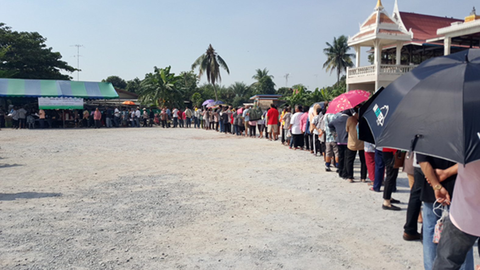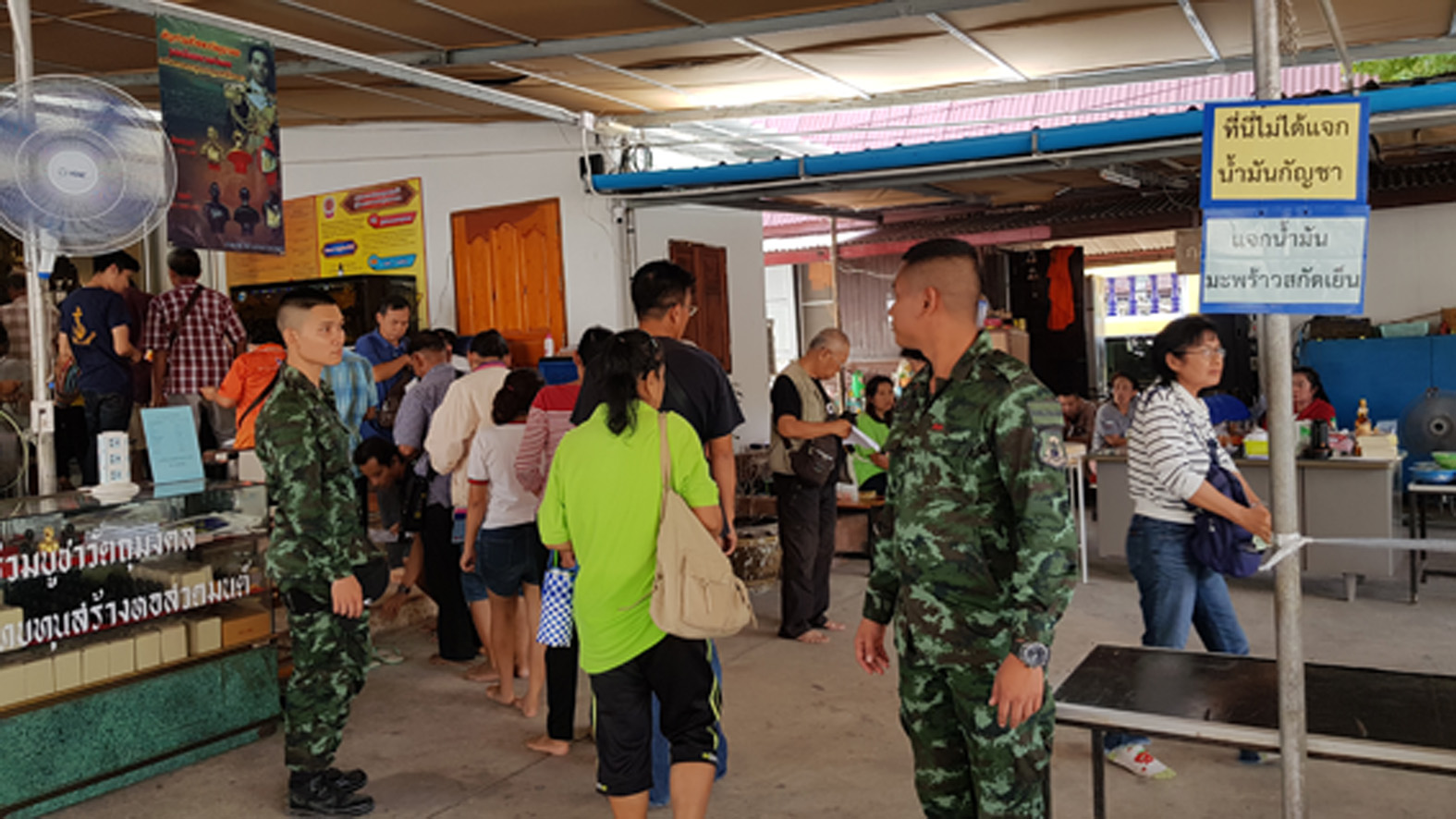 สุพรรณบุรี ผู้ป่วยแห่รับแจกน้ำมันมะพร้าวสกัดเย็นแน่นวัดบางปลาหมอ