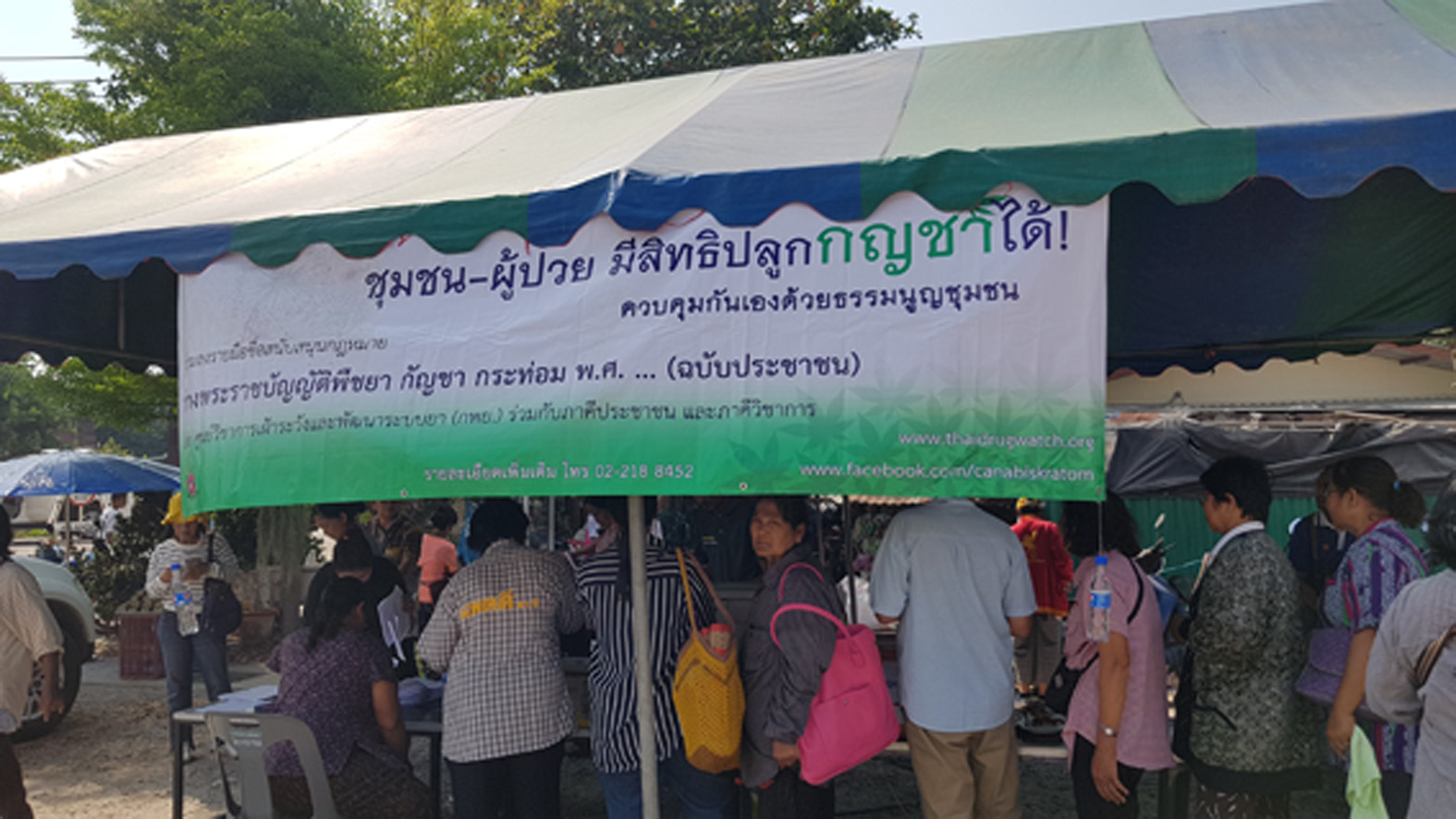 ด้านนางลาวัลย์ สาโรสาท เจ้าหน้าที่มูลนิธิศูนย์คุ้มครองสิทธิด้านเอดส์ เปิดเผยว่าศูนย์วิชาการเฝ้าระวังและพัฒนาระบบยา (กพย.) ได้มาตั้งโต๊ะรับลงทะเบียน ร่วมลงรายชื่อสนับสนุนกฎหมาย ร่างพระราชบัญญัติพืชยา กัญชา กระท่อม (ฉบับประชาชน) โดยร่วมกับภาคีประชาชนและภาคีวิชาการ 12 องค์กร เครือข่ายวิชาการ และภาคประชาสังคม ผู้ริเริ่มและมาร่วมยื่นเสนอร่าง พ.ร.บ.พืชยา กัญชา กระท่อม ฉบับประชาชน ขอให้ชุมชนผู้ป่วยมีสิทธิปลูกกัญชาได้ ควบคุมกันเองด้วยธรรมนูญชุมชน