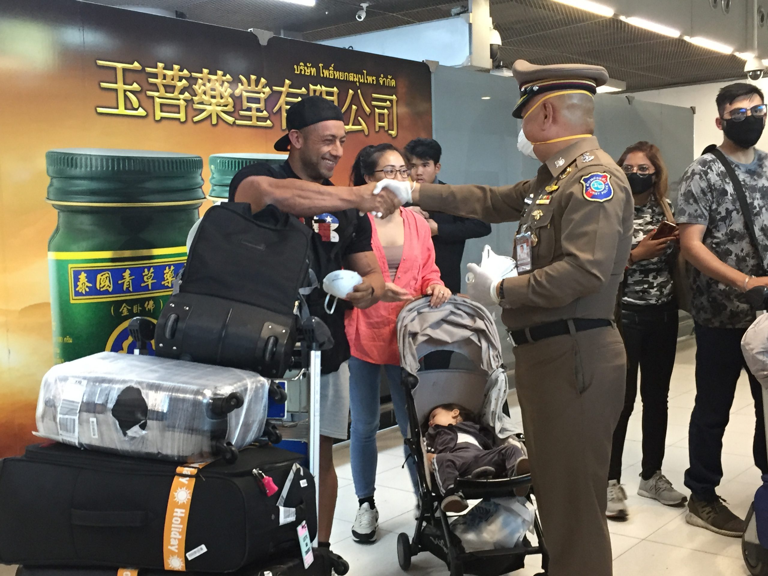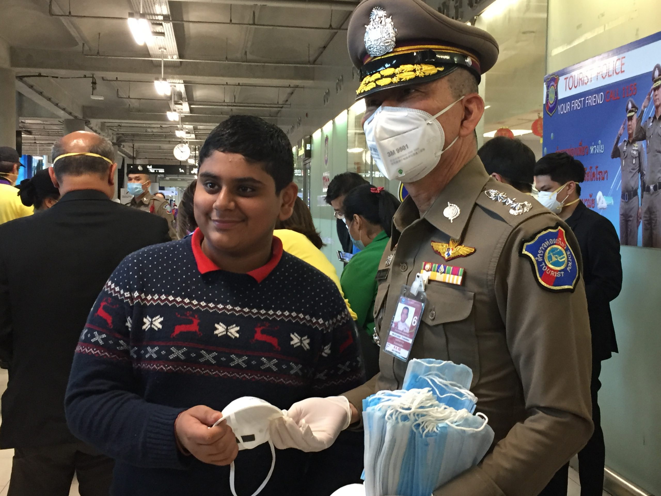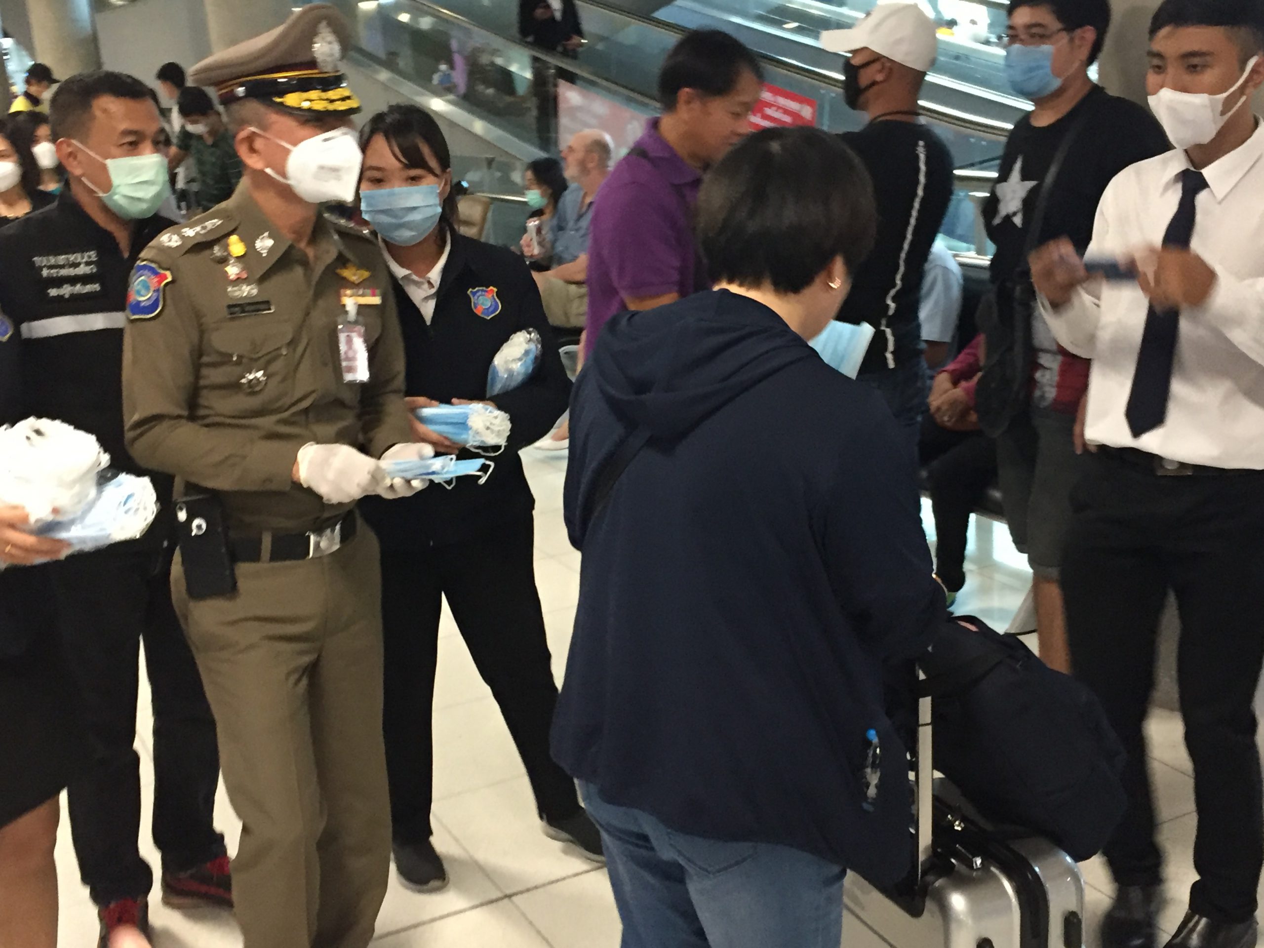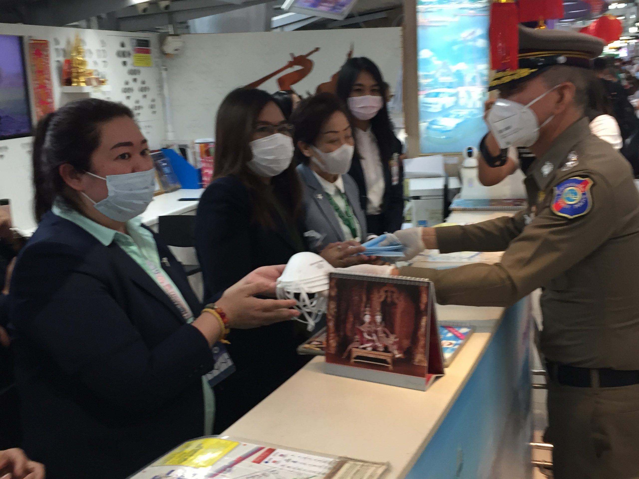 สมุทรปราการ ตร.ท่องเที่ยวแจกหน้ากากอนามัยสกัดไวรัสโคโรน่า