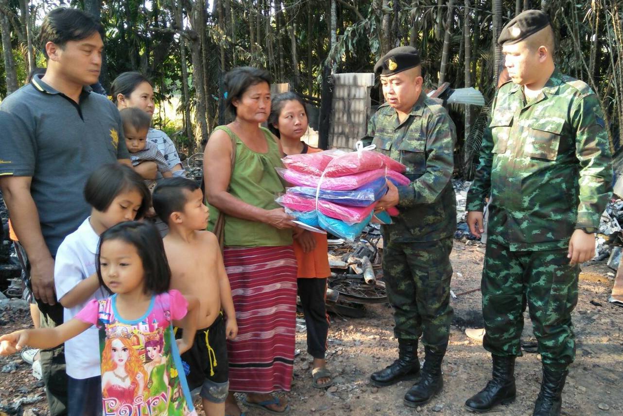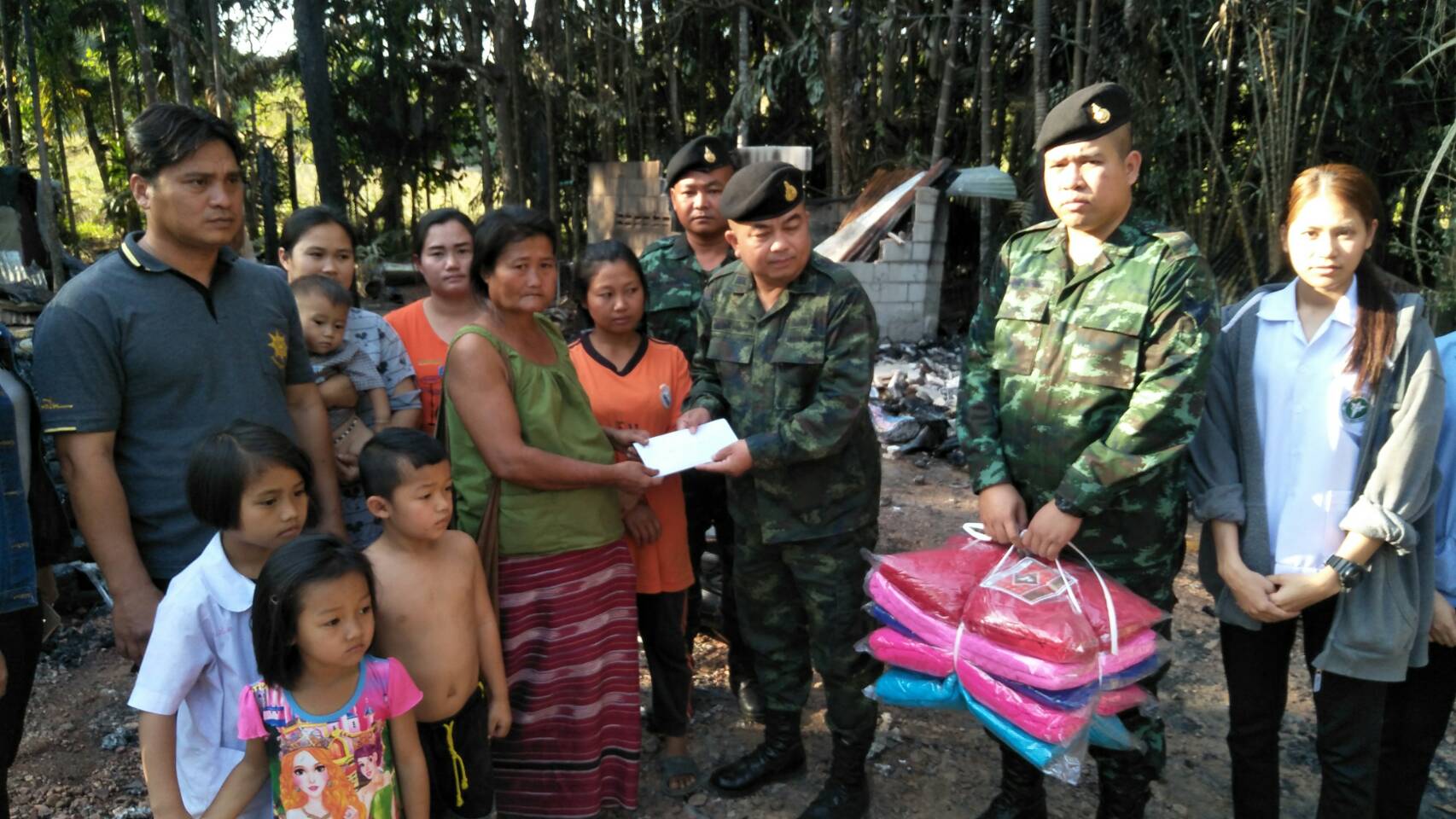 พร้อมเครื่องอุปโภคบริโภคที่หน่วยบริการได้รวบรวมมอบให้กับ น.ส.พ้อโบมึ เวนะ ราษฏร ในพื้นที่ ที่ประสบเหตุอัคคีภัย ณ บ้านเลขที่ 14/1 หมู่ที่ 6 บ้าน ป่าเด็งใต้ ตำบลป่าเด็ง อำเภอแก่งกระจาน จังหวัดเพชรบุรี ผลการปฏิบัติ ในการช่วยเหลือเป็นไปด้วยความเรียบร้อย.