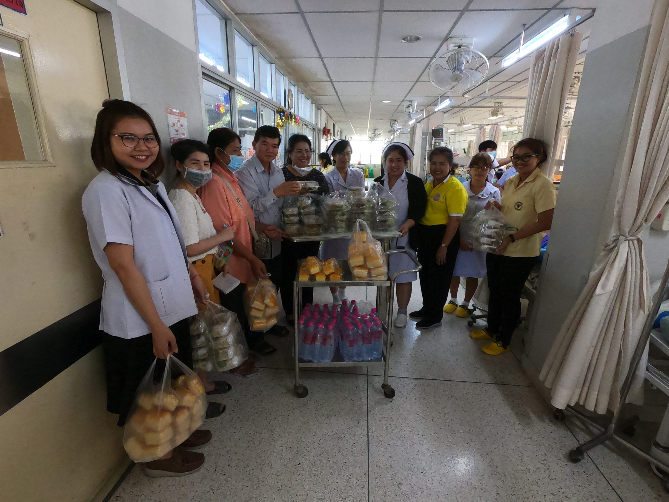 คุณนิภาพันธ์ ธนาพิริยะฉัตร์ และคุณธัญรักษ์ นาควิทยานนท์และครอบครัว บริษัท อภิมงคลพลาสโปรดักชั่น จำกัด ได้นำข้าวมันไก่จำนวน 200 กล่อง ขนมเค้ก 200 ชิ้นและน้ำดื่ม 200 ขวดนำมอบให้โรงพยาบาลสามพราน(วัดไร่ขิง) เพื่อแจกให้ผู้ป่วยและญาติที่รักษาตัวอยู่ที่อาคารผู้ป่วยใน 6ชั้น โรงพยาบาลสามพราน(วัดไร่ขิง)
