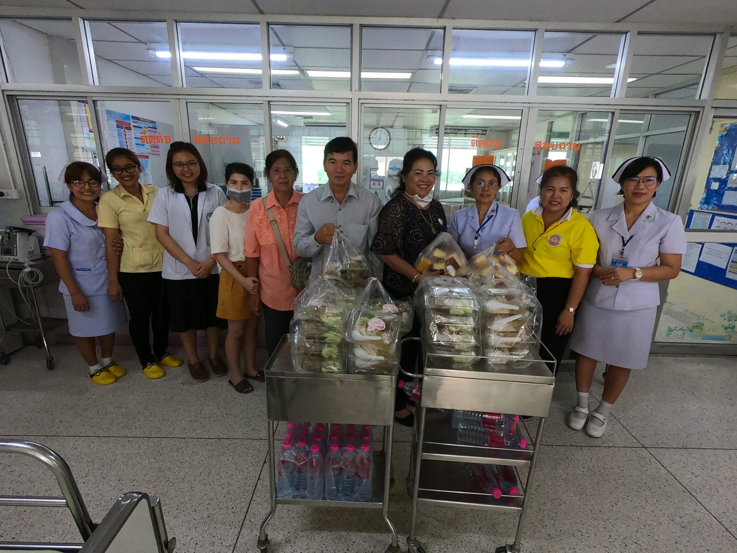 ผู้ใจบุญมอบข้าวมันไก่ ขนมและน้ำดื่มจำนวน 200 ชุดให้ผู้ป่วยที่รักษาตัวในโรงพยาบาลสามพราน