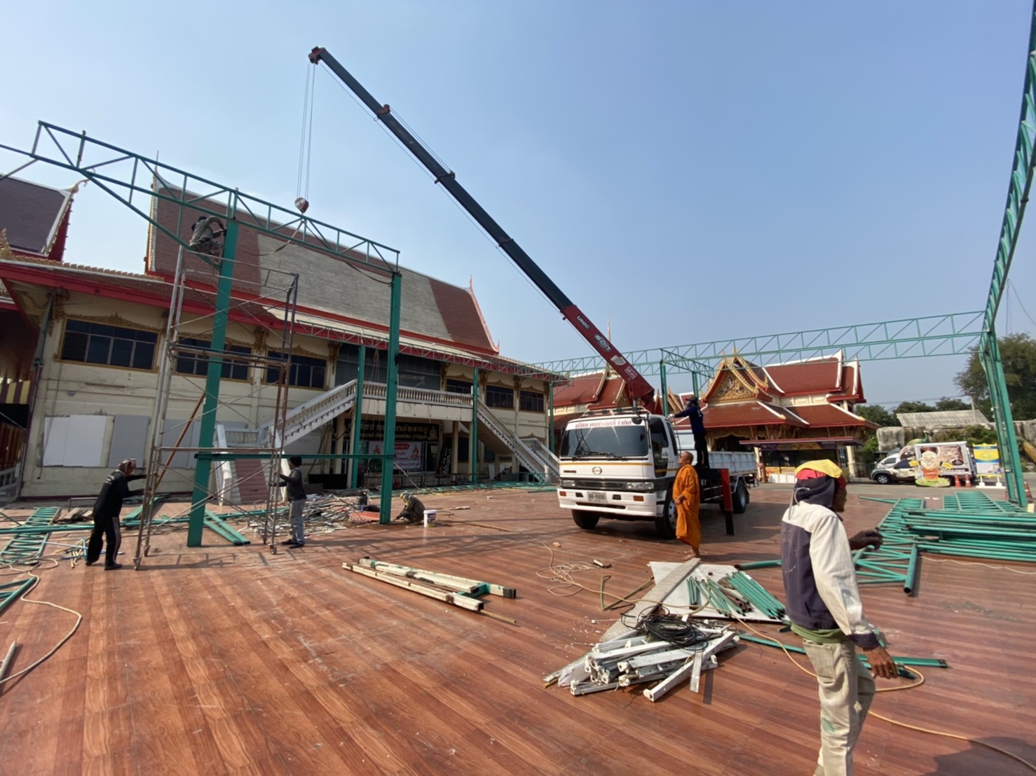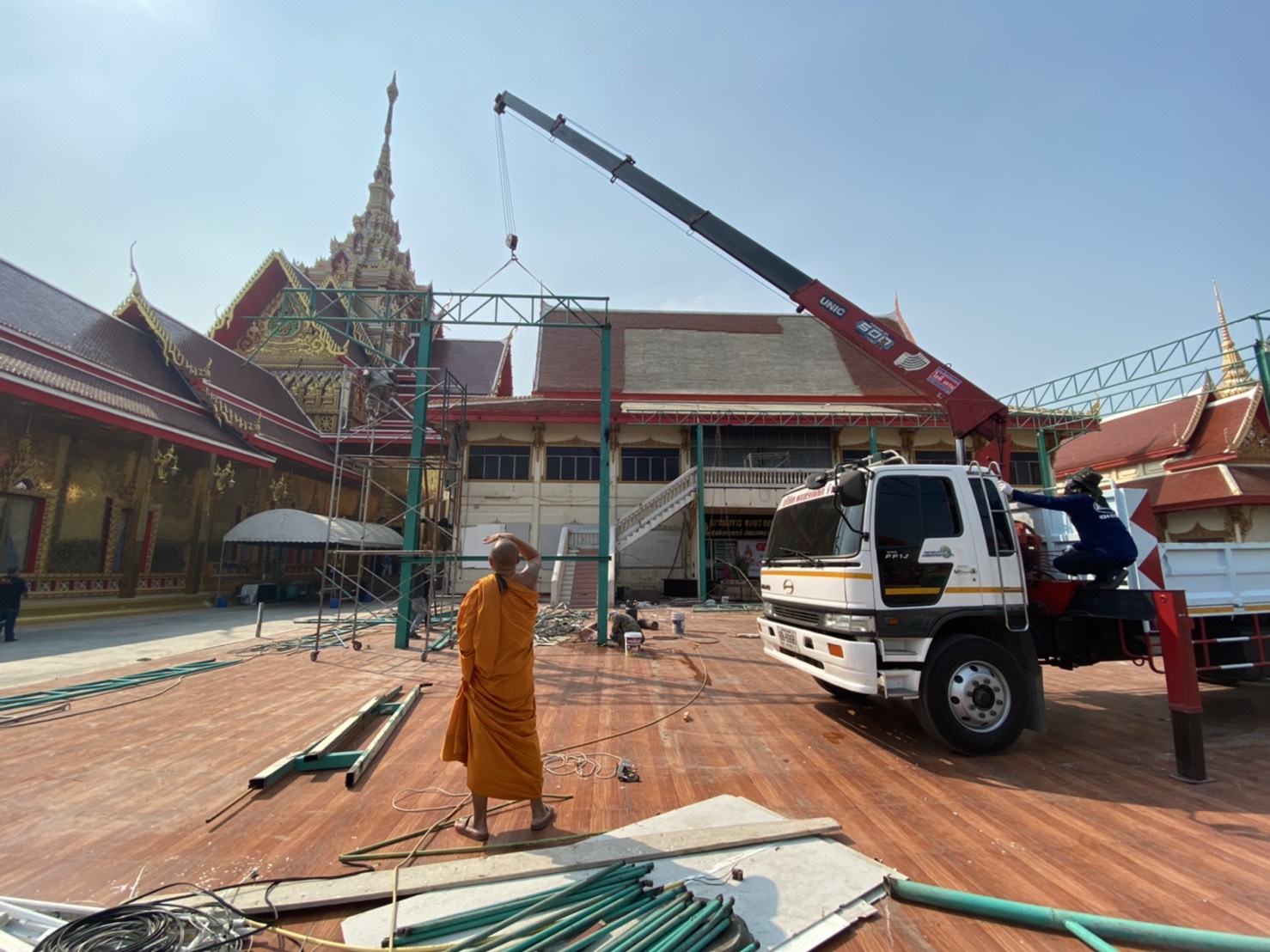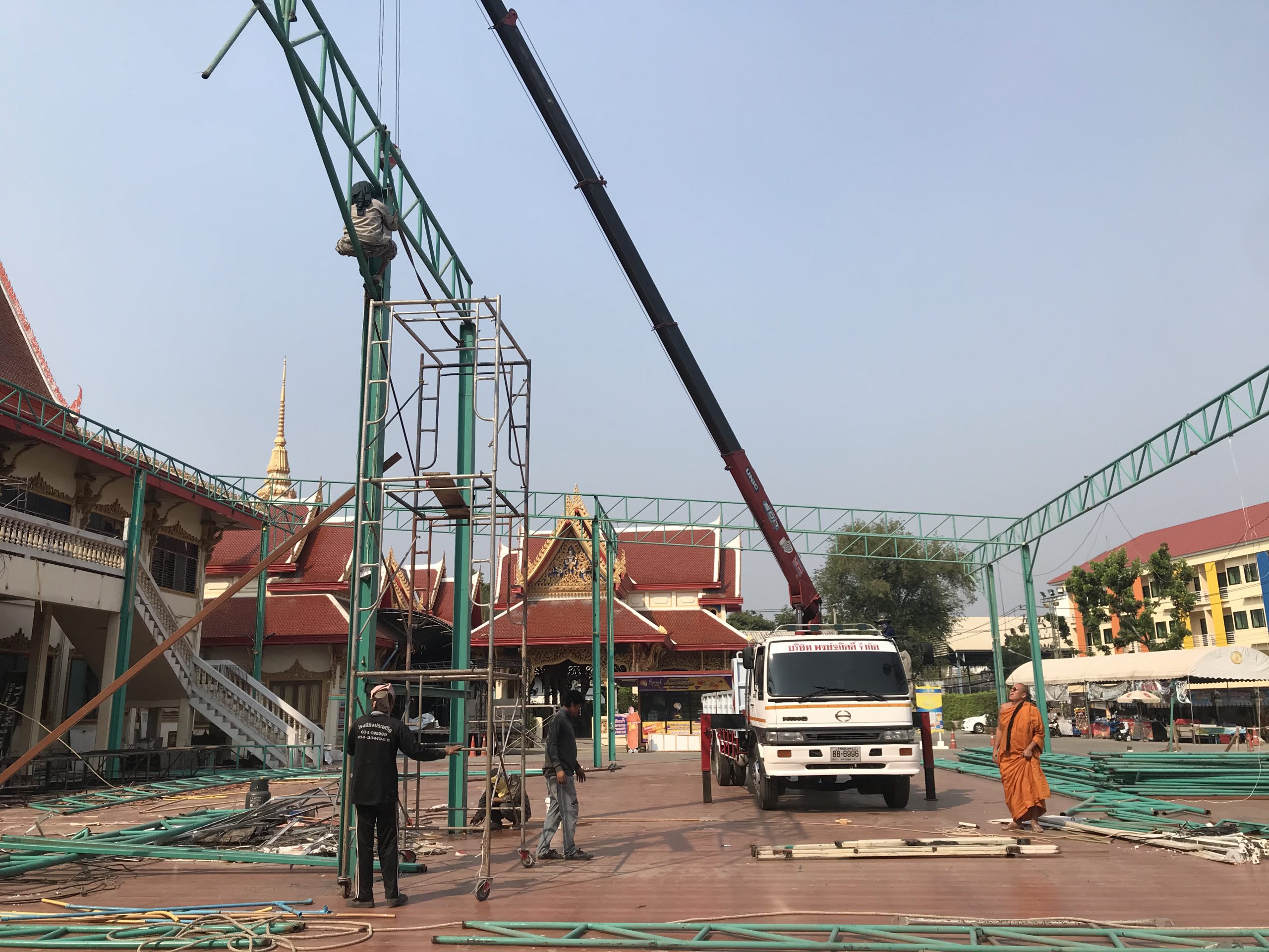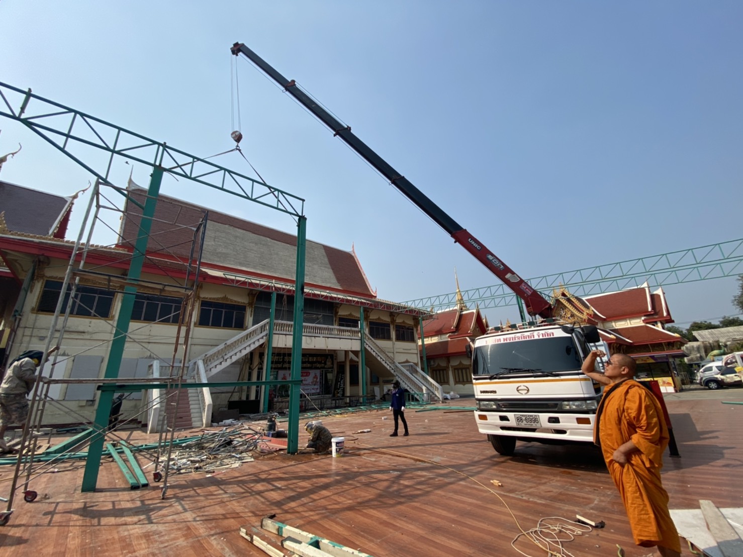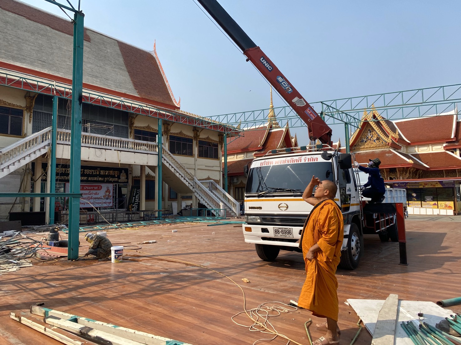 นครปฐม หลวงพี่น้ำฝน เจ้าอาวาสวัดไผ่ล้อม ใส่ใจทุกรายละเอียดถึงแม้แดดจะร้อนเพียงไหนคุมงานการบูรณศาลาหลวงพ่อพูล