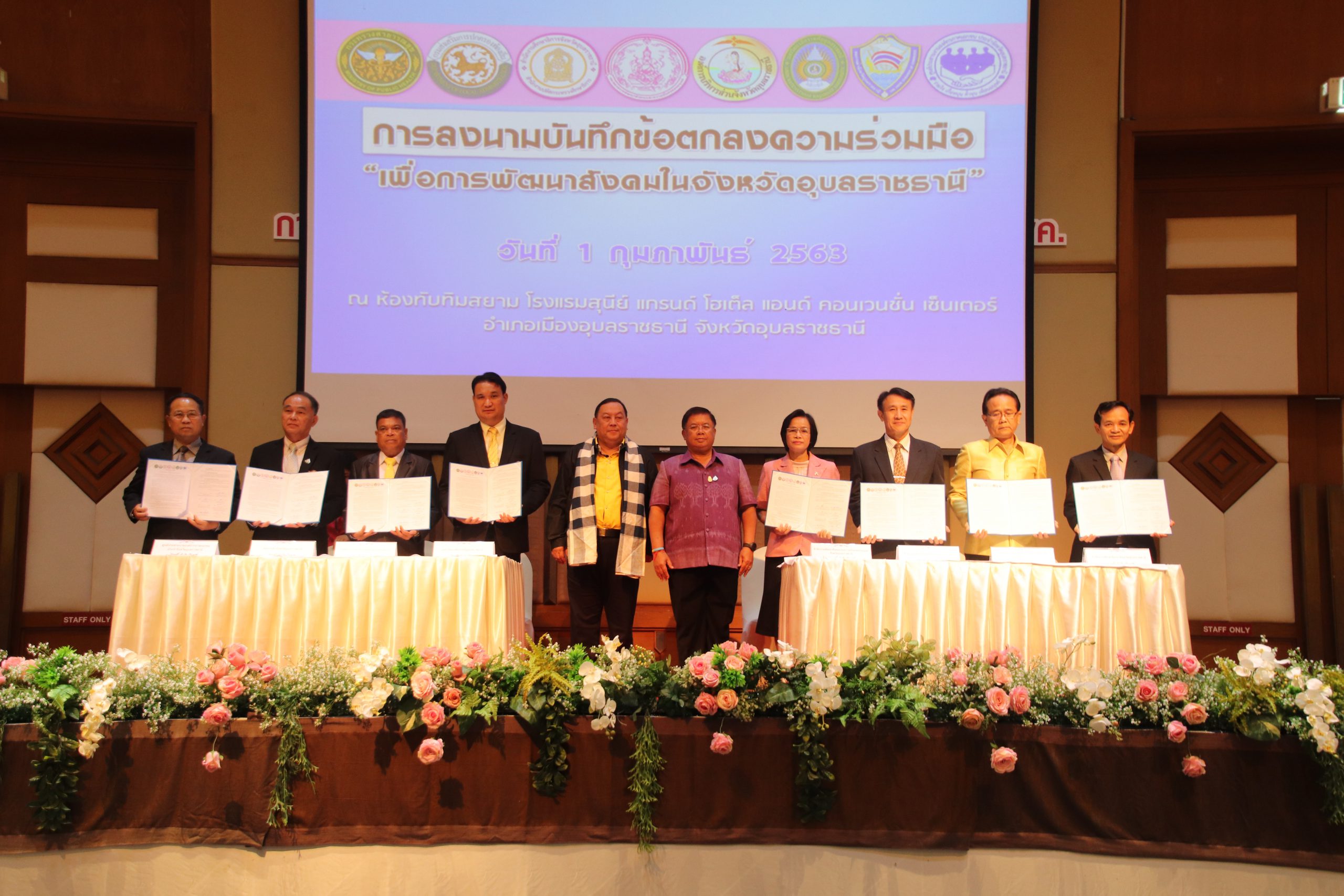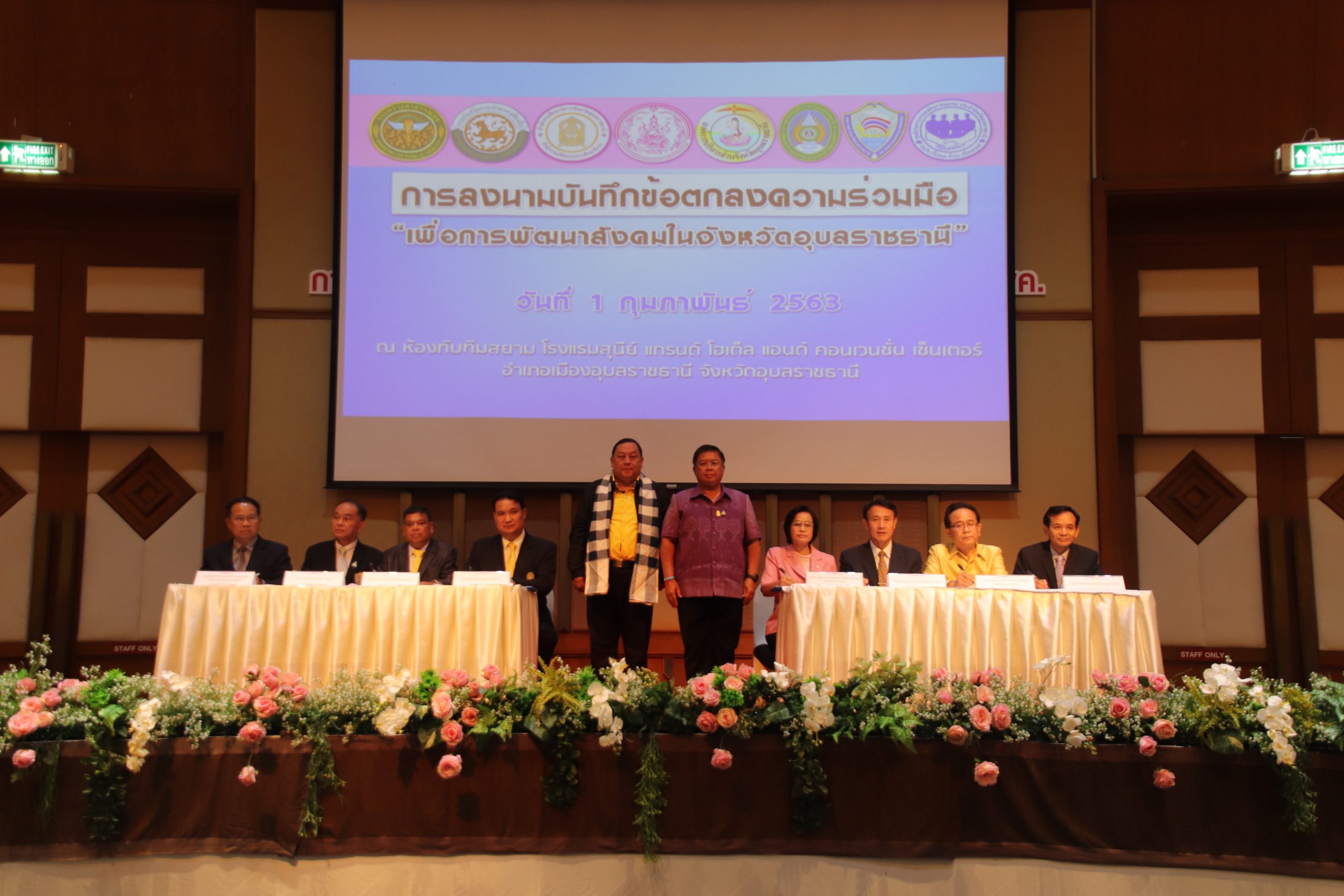 วันนี้ 1 ก.พ. 63 ที่โรงสุนีย์แกรนด์ อำเภอเมือง จังหวัดอุบลราชธานี นายจุติ ไกรฤกษ์ รัฐมนตรีว่าการกระทรวงการพัฒนาสังคมและความมั่นคงของมนุษย์ รมว.พม. มอบนโยบายและแนวทางการขับเคลื่อนงานในระดับพื้นที่เชิงบูรณาการกลุ่มเป้าหมายและทรัพยากรร่วมกัน ในการประชุมเชิงปฏิบัติการเสริมสร้างและพัฒนาศักยภาพของศูนย์พัฒนาครอบครัวในชุมชน (ศพค.) เป็นสักขีพยานลงนามบันทึกความร่วมมือ จาก 8 หน่วยงาน สถาบันศึกษา ท้องถิ่น องค์กรภาคเอกชน ของจังหวัดอุบลราชธานี ในการพัฒนาศักยภาพ ศพค. ซึ่งกระทรวง พม.โดยกรมกิจการสตรีและสถาบันครอบครัว (สค.) จัดขึ้นระหว่างวันที่ 31 มกราคม ถึง วันที่ 1 กุมภาพันธ์ 2563